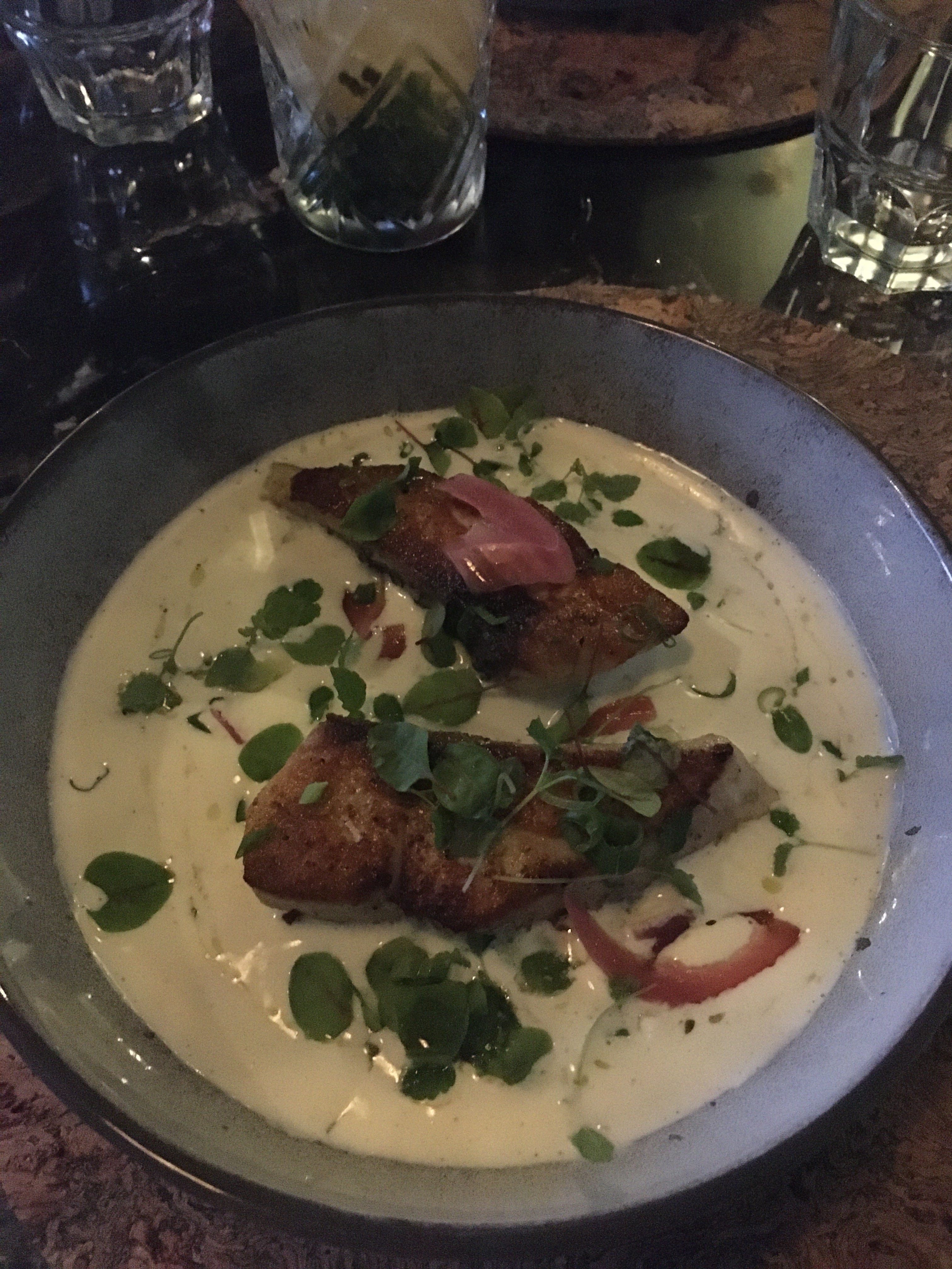 Parfait ! Cela faisait très longtemps que je n’étais pas allée dans un restaurant qui vaut le déplacement. Le service : incroyable, les plats : des saveurs dans tous les sens qui éveillent les papilles, l’ambiance : très sympathique avec possibilité de vue sur le château de côté lorsque l’on est en terrasse et une playlist d’enfer, le chef : un passionné de cuisine d’une gentillesse sans borne. Malheureusement, mon téléphone ne rend pas grâce aux plats, néanmoins en entrée le maigre grillé a remporté la victoire. En plat principal, tous frais et délicieux. En dessert, au choix entre le riz au lait fleur d’oranger, le tout chocolat et le Pao de lo à la cannelle. Tous étaient incroyables! Nous reviendront en fermant les yeux et attendons avec impatience de pouvoir les reprendre ou gouter à de nouvelles saveurs.