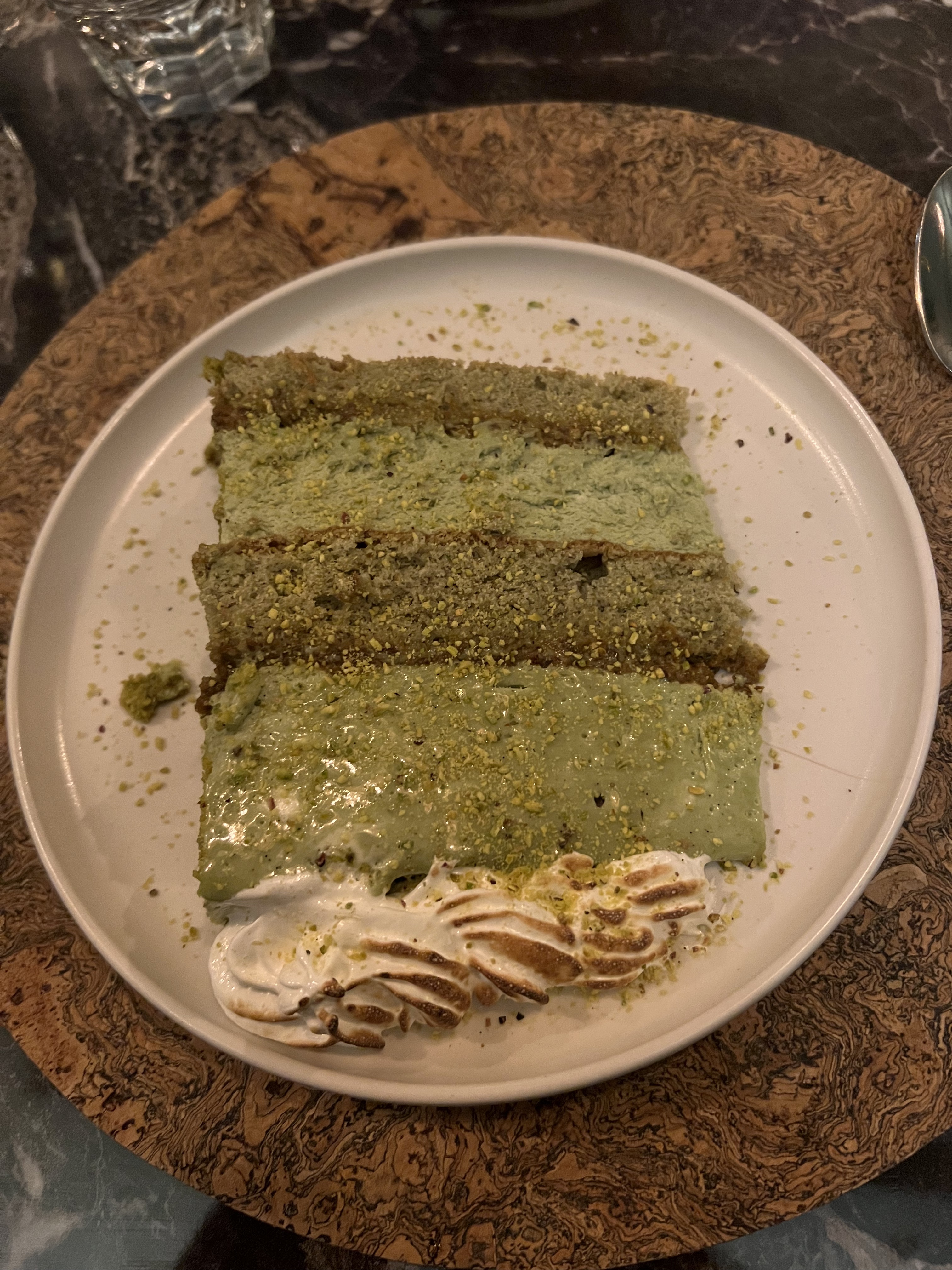 Très bon accueil Cuisine délicieuse et originale, sans trop l'être, juste comme il faut ! Et prix correct Photos ajoutées : le mille feuille à la pistache (un régal !!) Et le riz au lait (très bon aussi !)