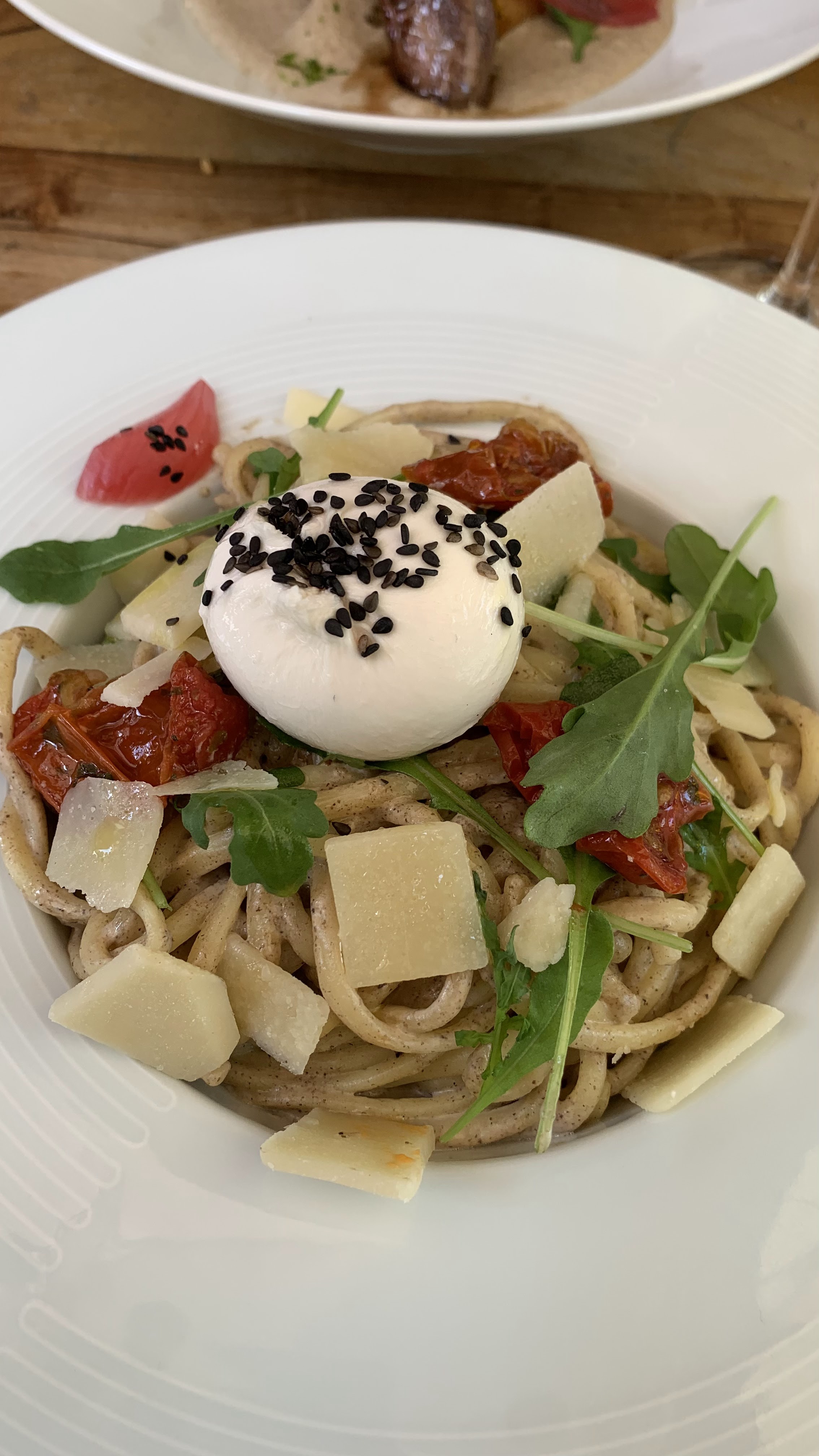très bonne salade tomates colorés et sa bourrata qui remplit bien le bidou :)