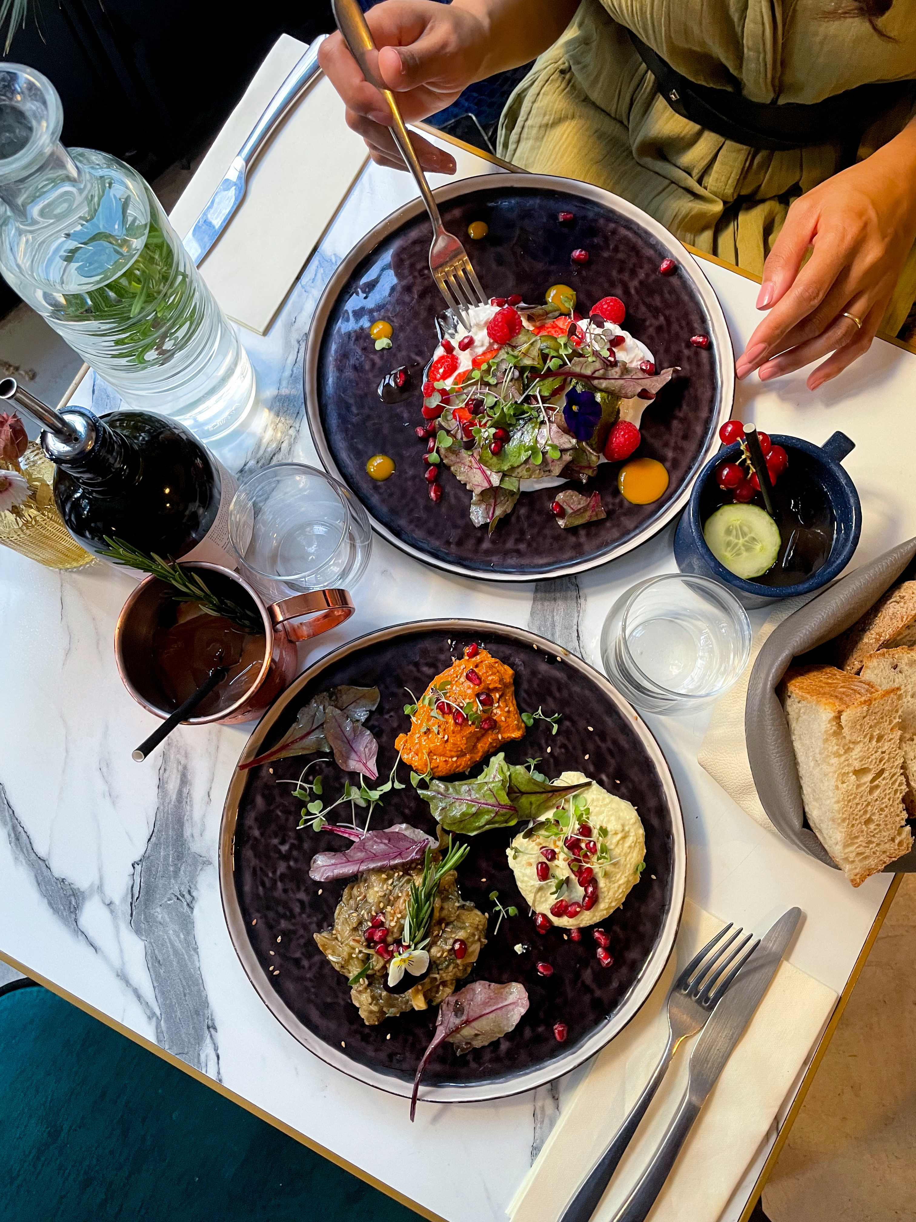 Tout donnait envie sur le papier, la réalité a été décevante. Tous les codes de la déco à la mode mais le lieu est froid, carte tendance également mais franchement mal réalisée : 3 plats sur 4 moyens voire franchement pas bons, 1 bien. Le tout servi avec une baguette sans intérêt (même pas une petite tradi !), dommage notamment pour déguster le houmous maison de pois chiches en boite). Du coup, on n'a pas pris de dessert. Service gentil