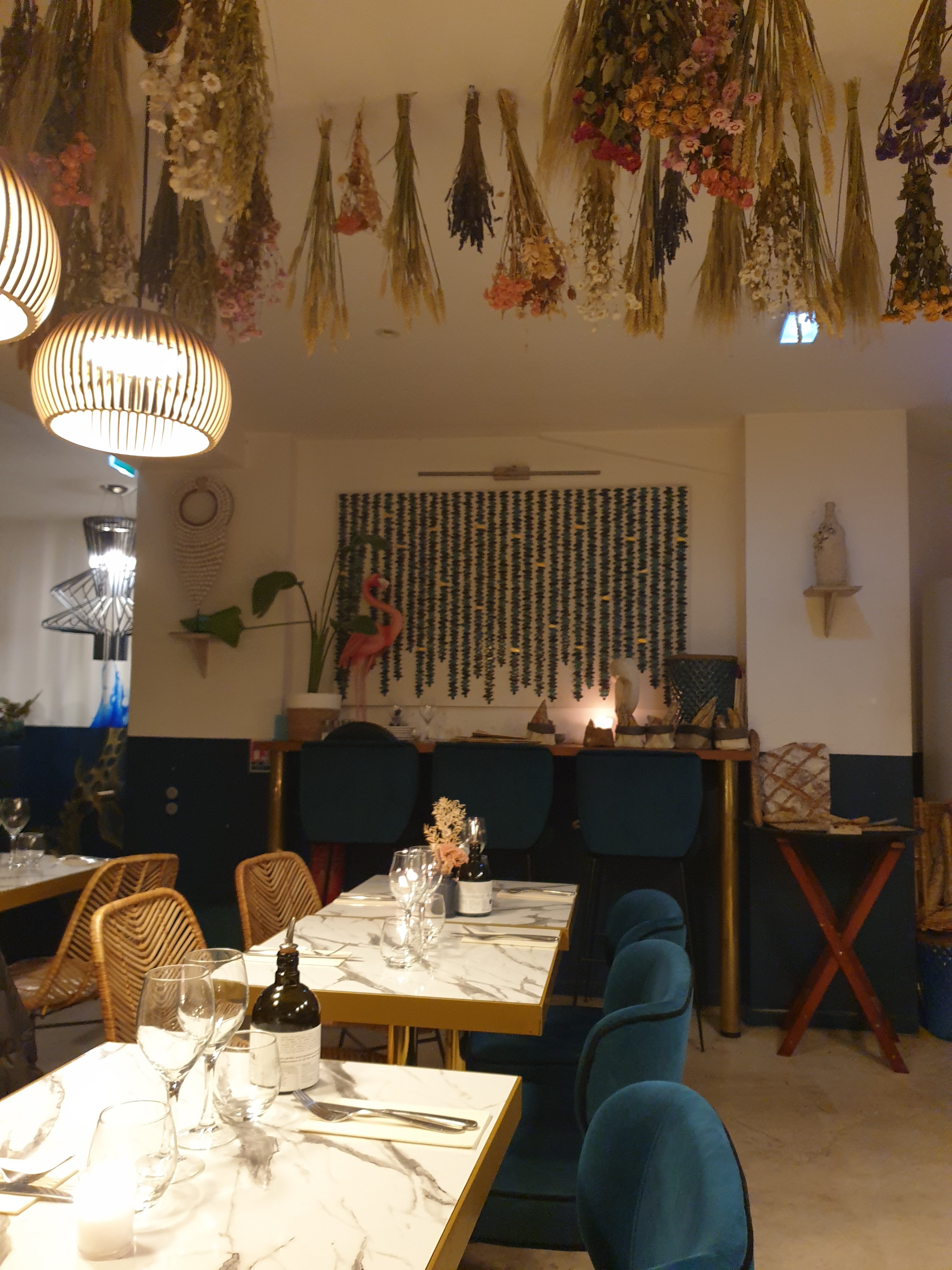 De passage à Paris, on a découvert une cuisine méditerranéenne avec des plats variés pour convenir à tout le monde ( poisson , viande, végé) , un très bon rapport qualité prix pour Paris et un cadre tendance et adorable avec des fleurs séchées. Petit bémol sur les grandes baies vitrées ouvertes alors que les soirées sont un peu fraîches en ce moment ( ceci dit ,en été ça doit être super! ). Avec une entrée et un plat ,on ressort la peau du ventre bien tendue , miam ! Je comprends mieux les commentaires positifs précédents ,on peut s'y rendre les yeux fermés !