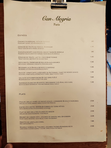 De passage à Paris, je me suis arrêté devant le restaurant Can Alegria par hasard et je n’ai pas du tout été déçu ! Le cadre est chaleureux et accueillant, avec un service irréprochable. Les plats sont généreux, de saison, et surtout savoureux. Mention spécial pour les cocktails ;) Une excellente adresse à tester sans aucun hésitation !