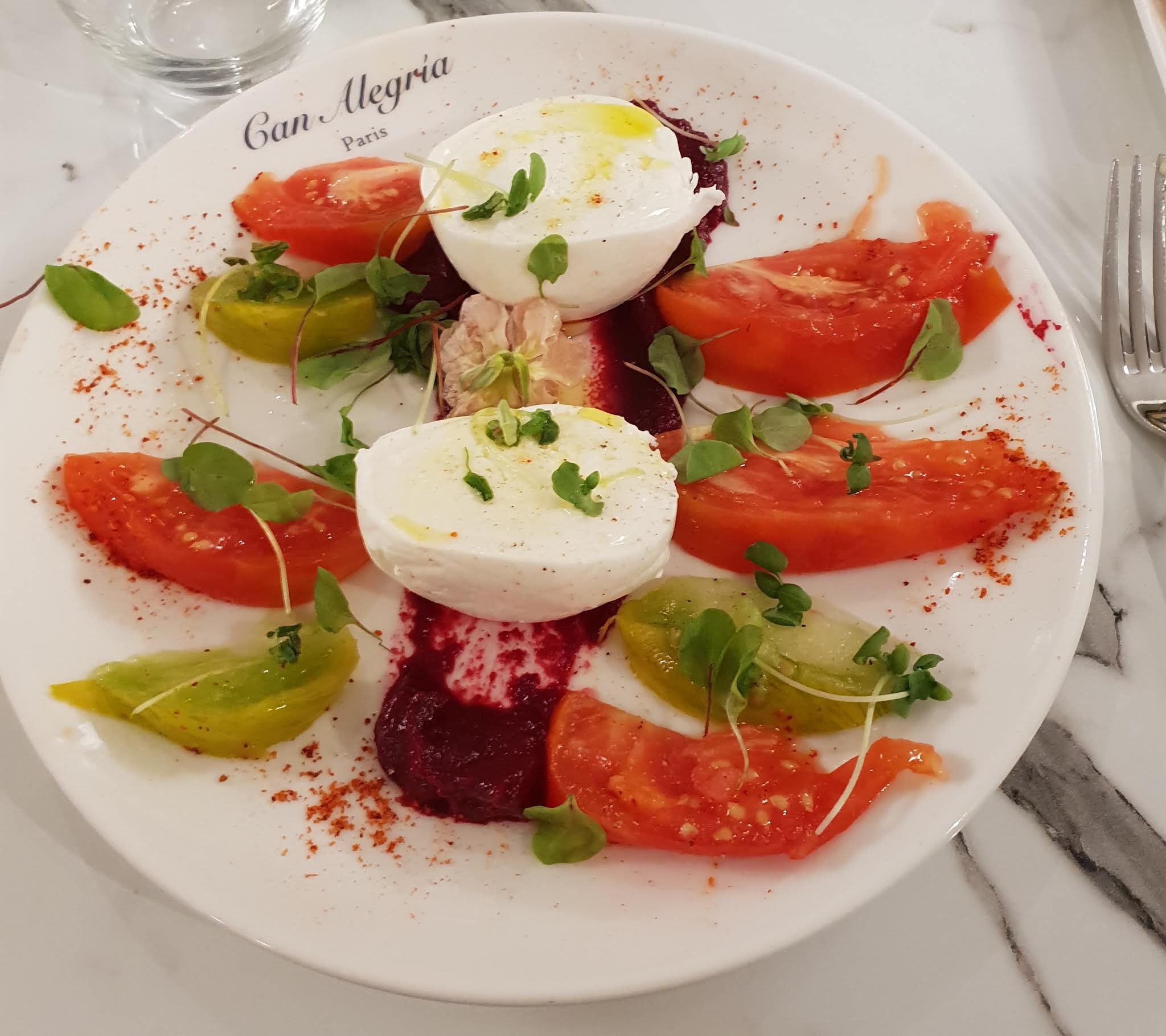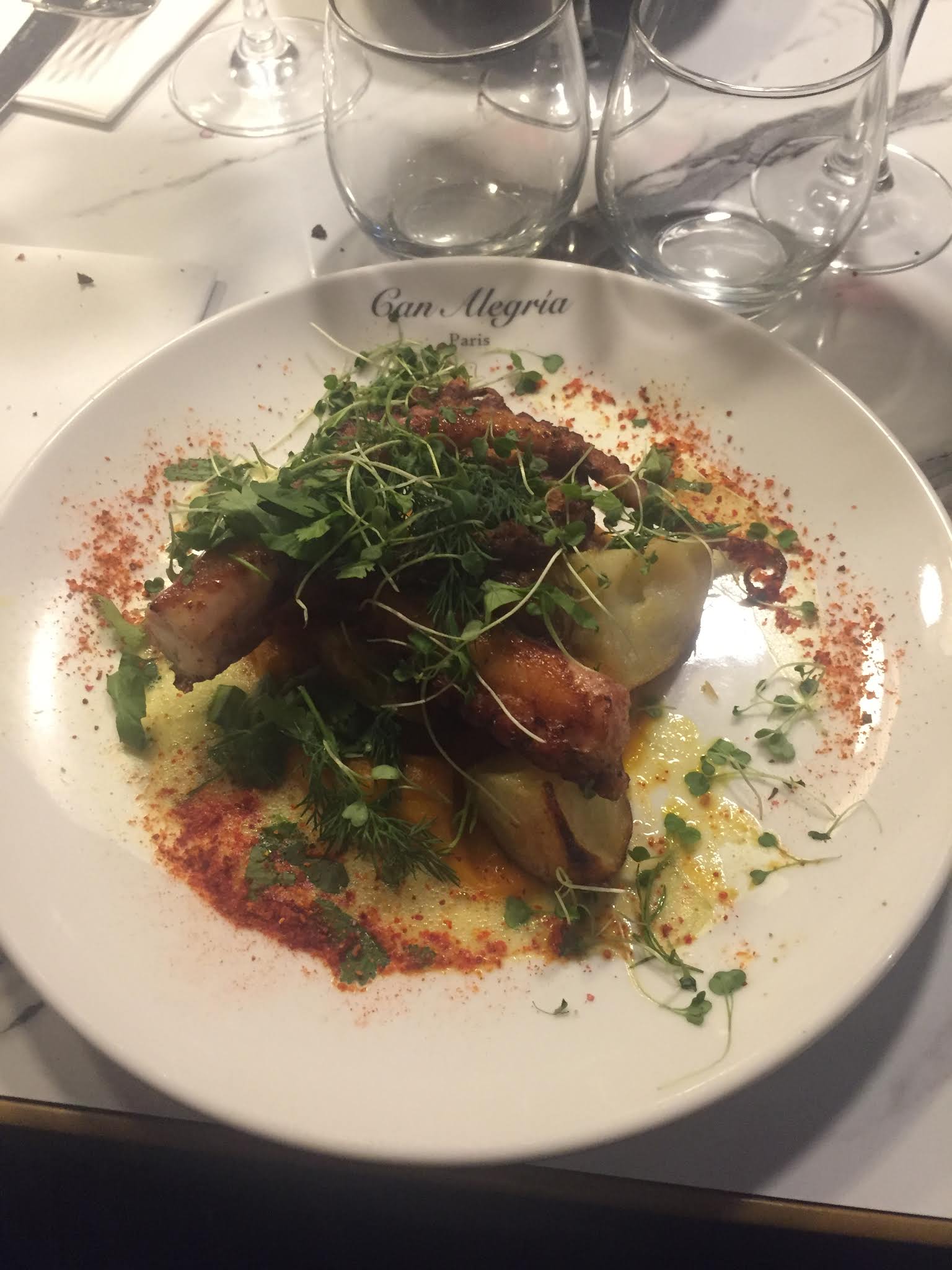 Super restaurant ce soir. Can Alegria à Pigalle. Chef Corse. Très bon accueil. Cadre très sympa. La cuisine simple et vraiment maîtrisée. On sent direct qu'ils travaillent avec des produits de qualité. En entrée straciatella avec un pain aux céréales divin. Je sais pas pour vous mais j'attache autant d'importance au pain qu'à la propreté dans un restaurant. Huile d'olive direct du producteur (Sicile et bio of course) je l'ai goûté à la cuillère à soupe. Délicieux. Tu trempes ton pain dedans... Ensuite chou fleur rôti et souris d'agneau cuite pendant 7h. Je vous laisse juger des quantités, ils sont pas radins et franchement à Paris c'est le genre d'adresse qui se fait rare. En dessert la pavlova... à tomber. Tout ça avec un verre de Merlot pour 68€. Rapport qualité quantité prix excellent et en plus ils sont sympa! Présence d'une salle privée au sous-sol en toute intimité ou tu peux faire un gueuleton pour 10 personnes!!!! Je vous recommande. Gros coup de cœur.