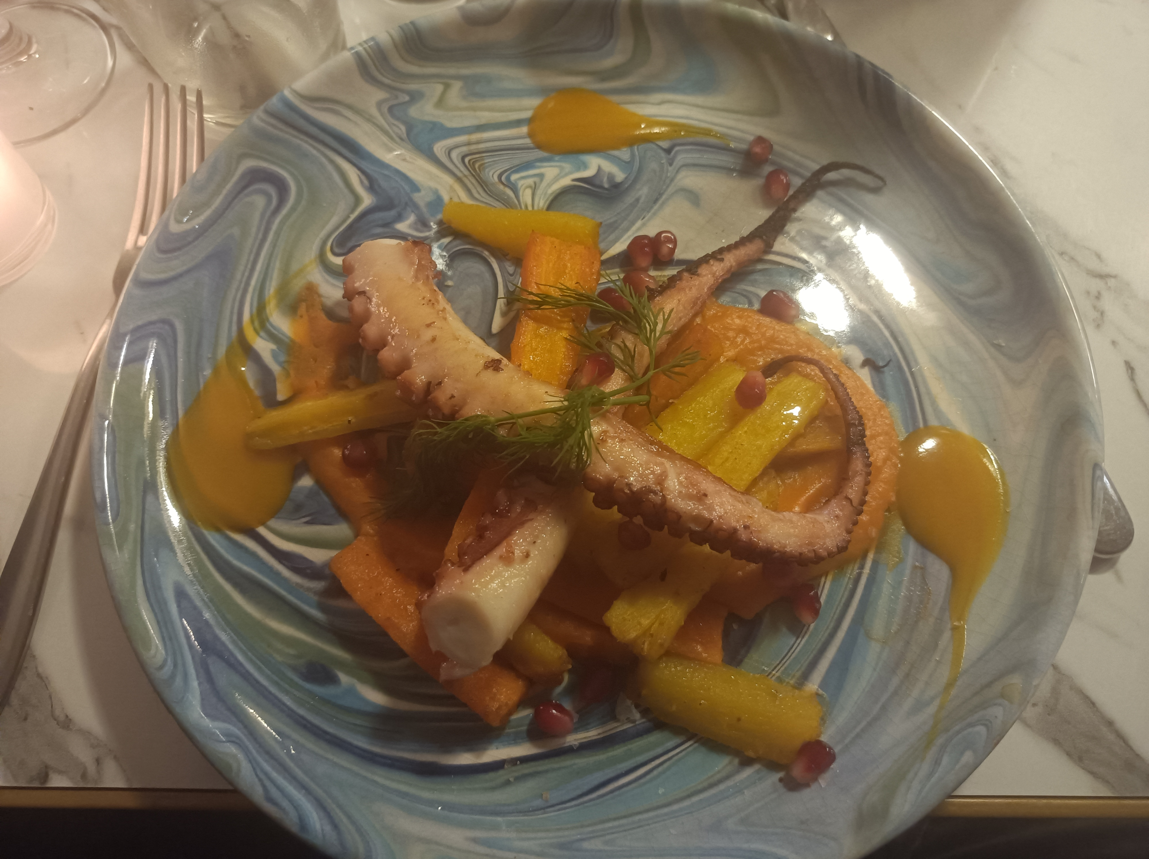 Bonne cuisine (le poulpe était parfaitement cuit), le cadre est très agréable et le service parfait (équipe jeune et attentive). Du coup, les prix sont un peu hauts...