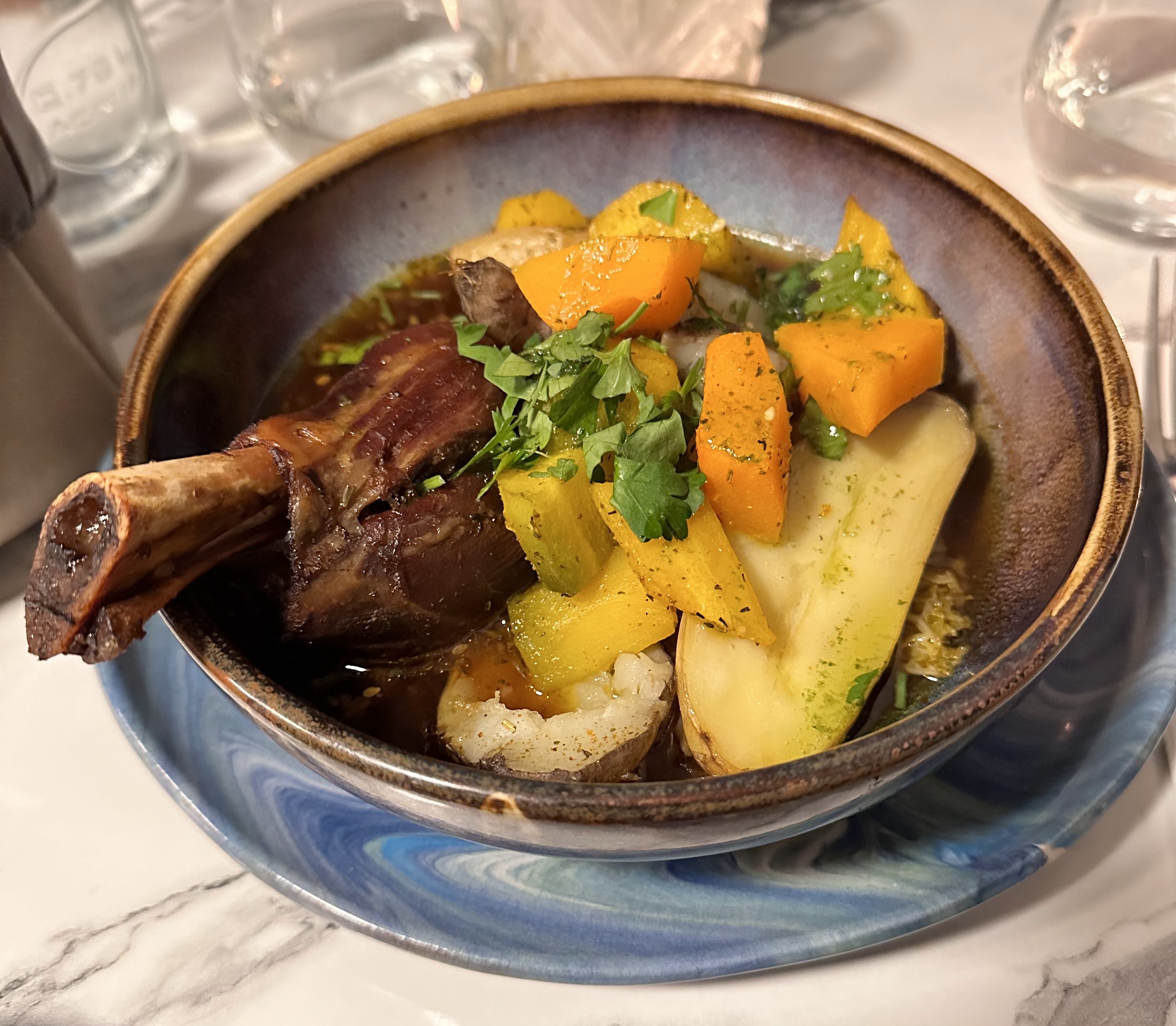 Superbe proposition de plat du jour ! (Paleron cuit à basse température avec les légumes de saison 😍😍) On apprécie également l’hospitalité et le fait qu’un rhum arrangé nous ait été offert après le dîner - merci encore, tout était parfait !