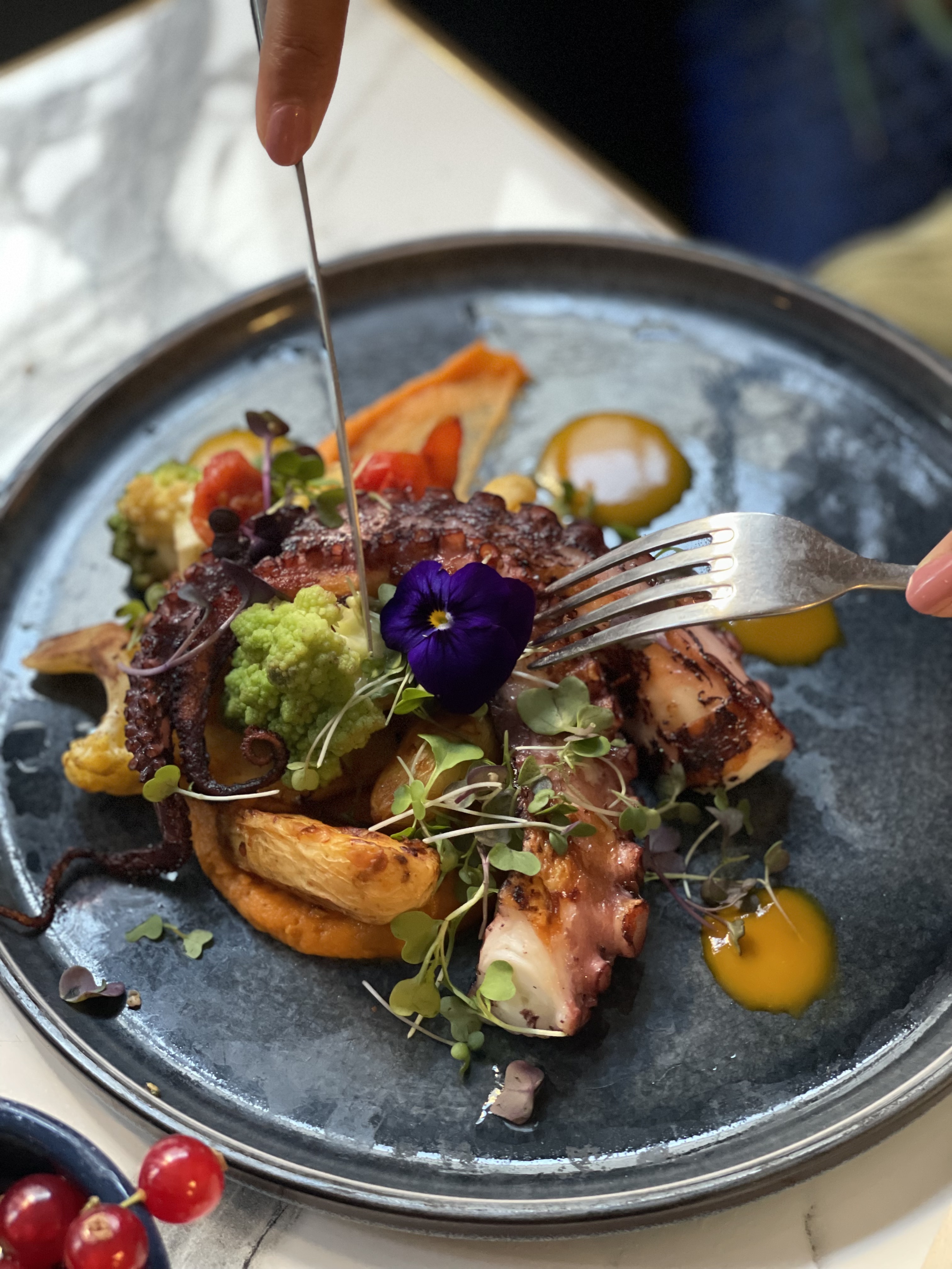 Très bon poulpe. Entrée : caviar d’aubergine, très bonne et très consistante. Super accueil, belle deco. Je recommande.