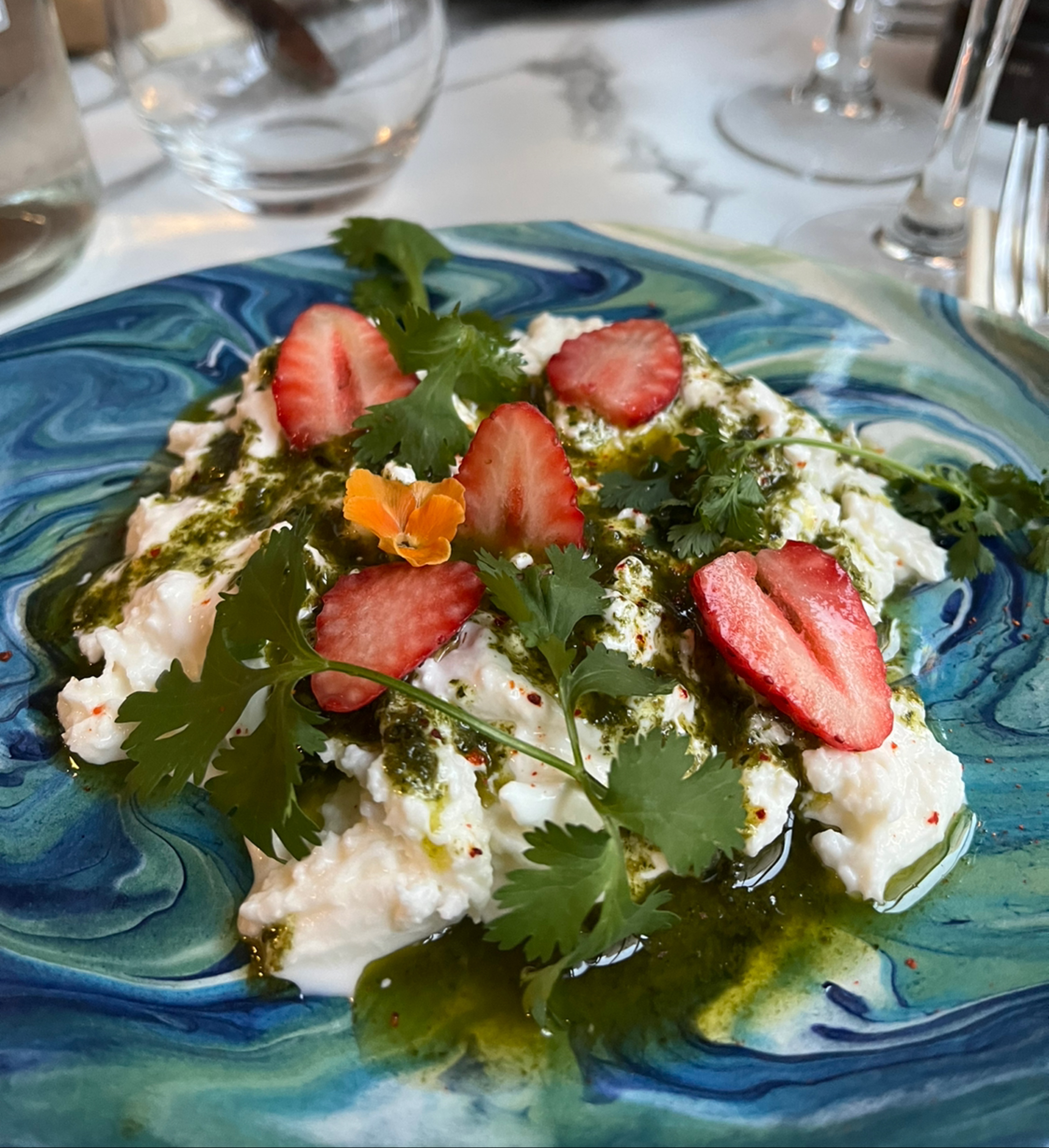 Tout était parfait ! La personne s'occupant du service est très professionnelle, agréable et elle connaît la cuisine sur le bout des bras ! En entrée, le carpaccio daurade fenouil et fraise est juste excellent, en plat le poulpe est fondant, la côte de bœuf et le filet de bar tout pareil ! Les desserts viennent terminer ce repas dans la continuité ! Les plats sont tous originaux, copieux, avec des produits frais et excellents, le tout avec le sourire! Adresse à ne pas manquer !