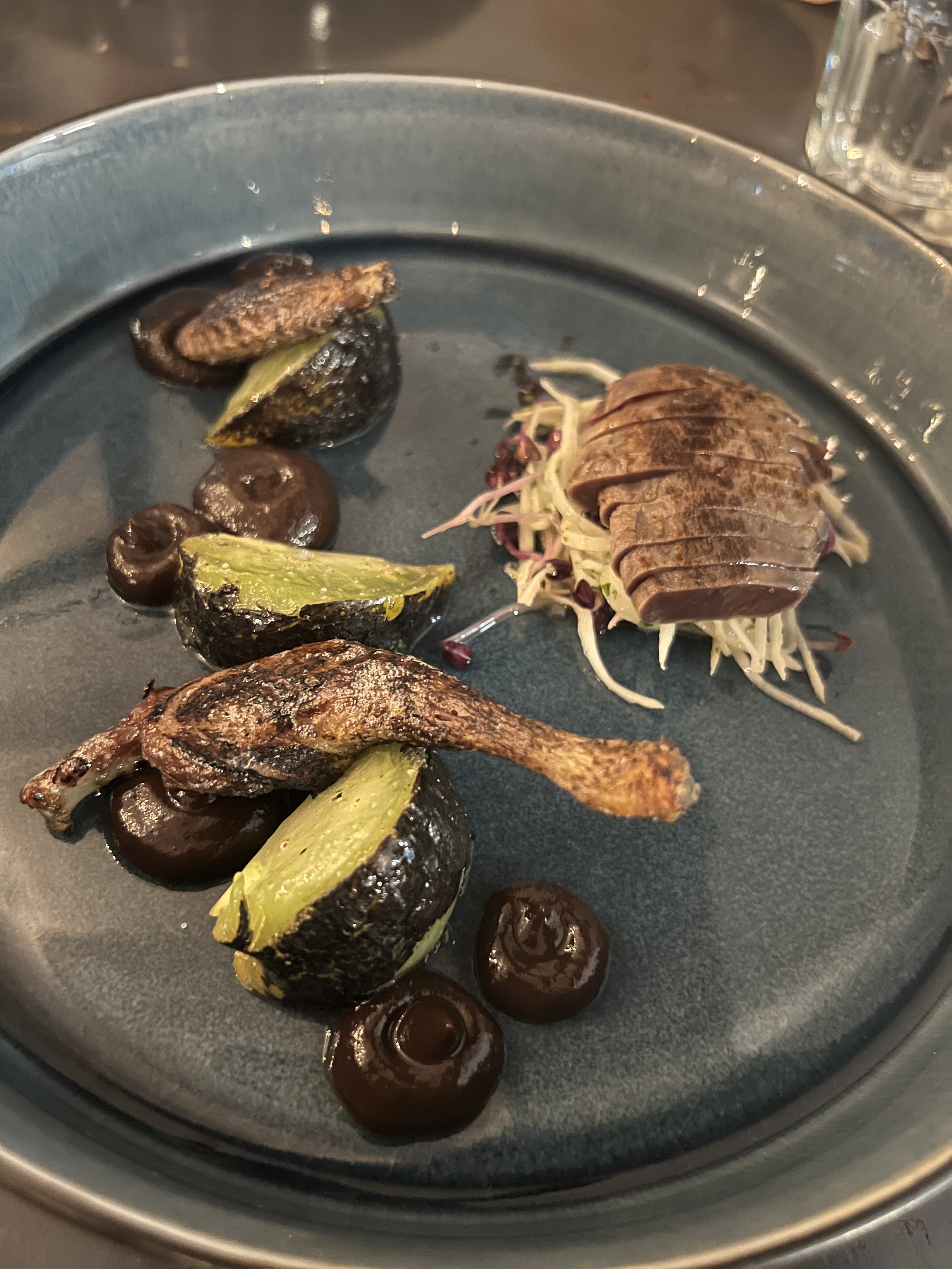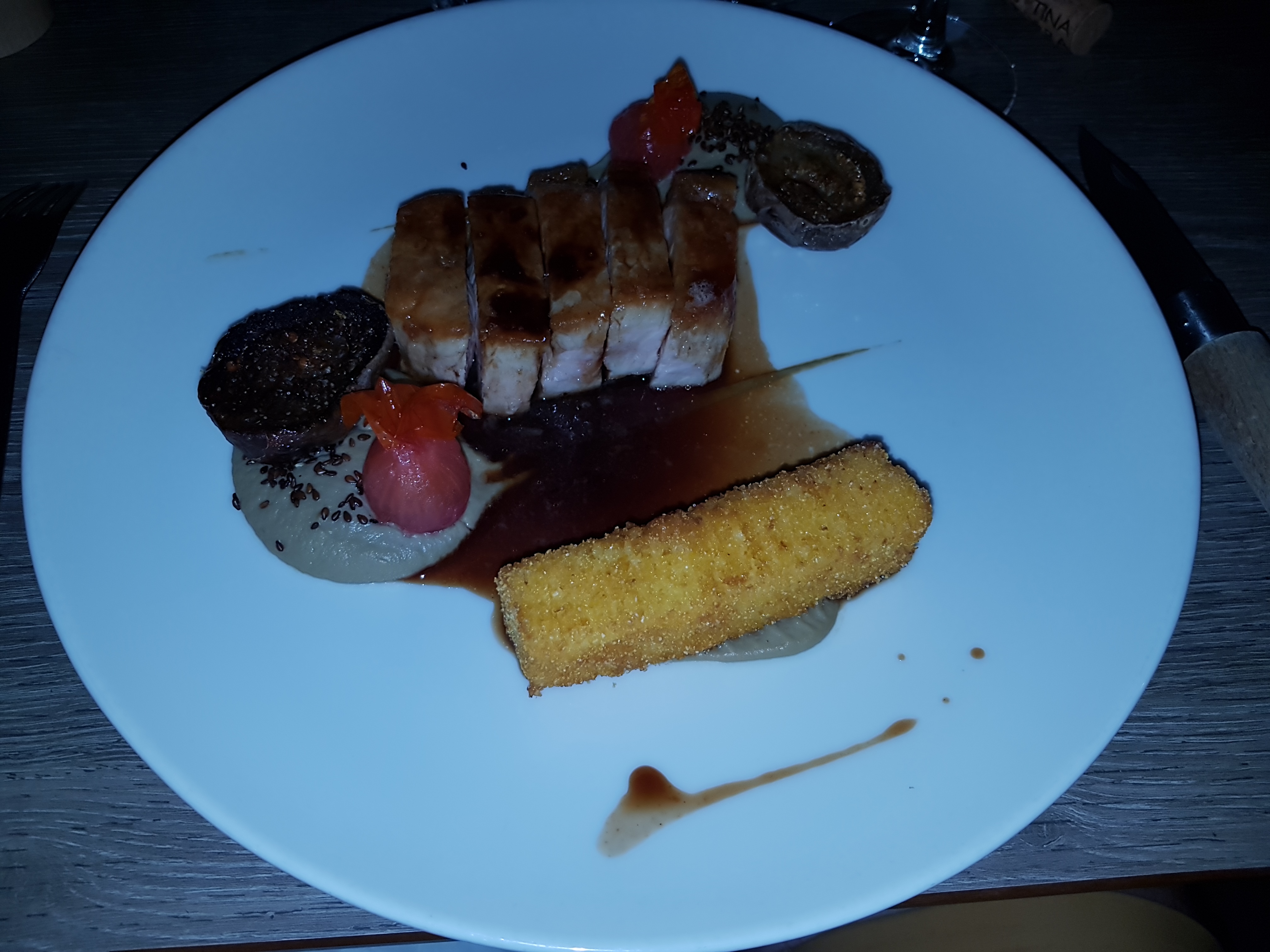 Cuisine raffinée et originale chef et serveur remarquablement compétents et gentils bisous