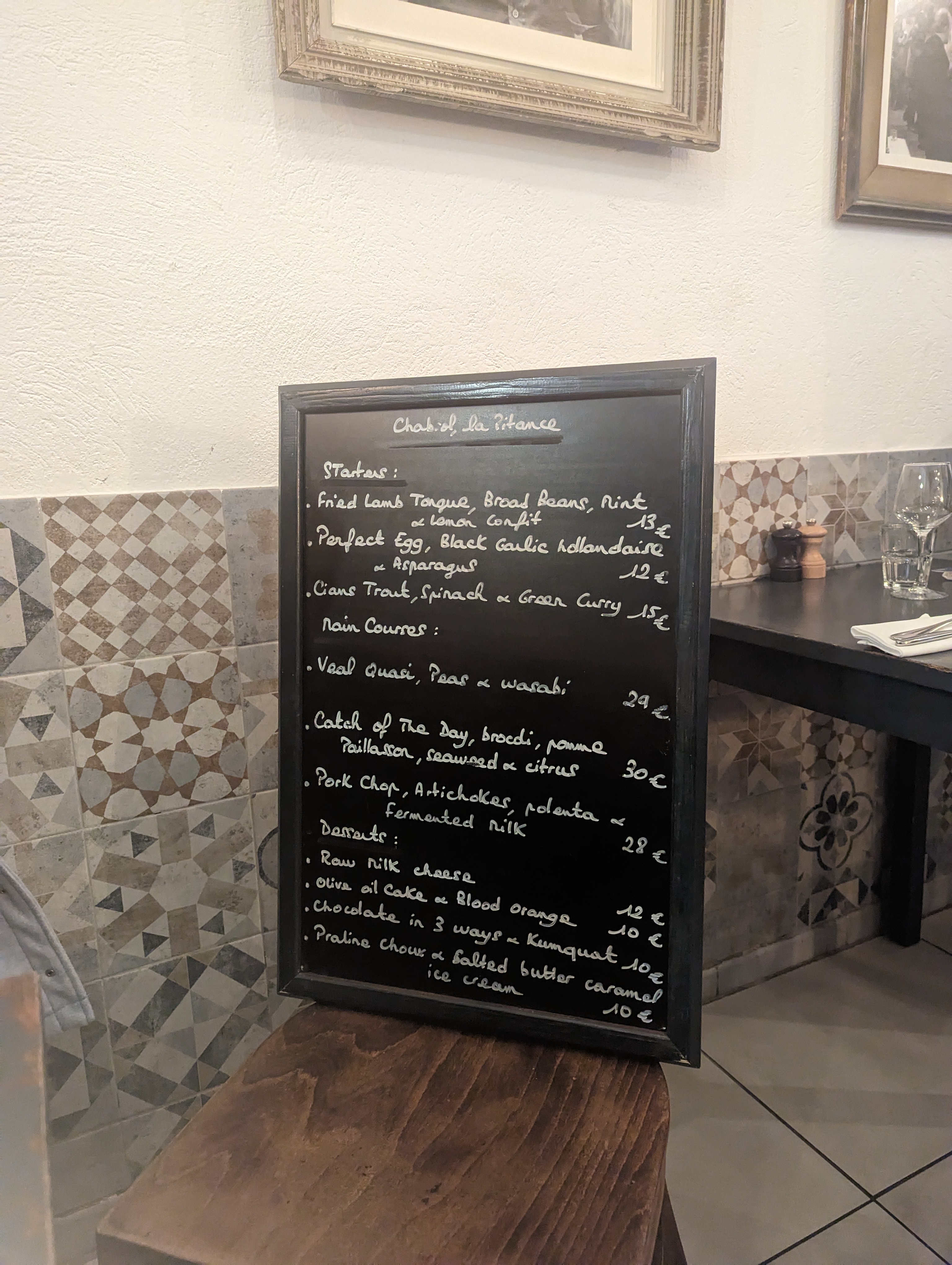 Un petit restaurant derrière l'église du port de Nice très agréable. La carte est très simple : 3 entrées 3 plats 3 desserts de très bonne qualité Tout est vraiment délicieux et les prix très corrects. Félicitations à toute cette jeune équipe qui nous régale les papilles