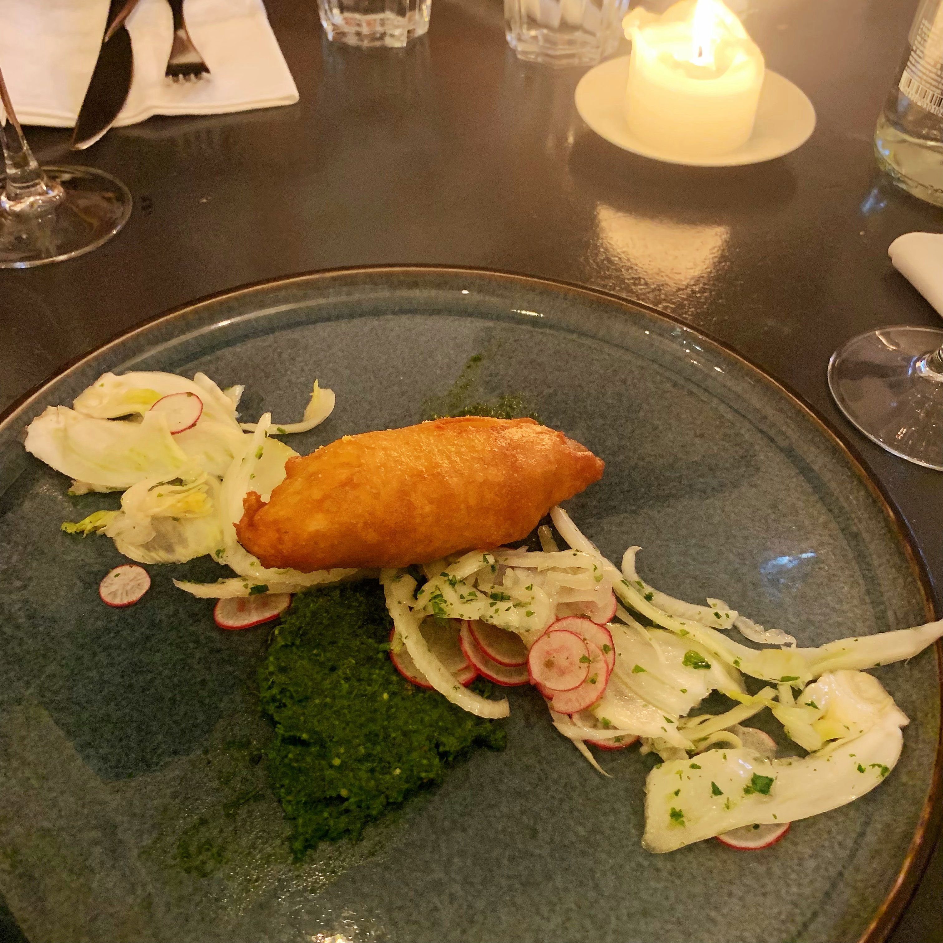 Magnifique surprise d'une carte à l'ardoise proposant des plats recherchés, raffinés et originaux. Nous avons pris le cannelloni de crabe concombre et herbes fraiches (frais et léger à souhait), des escargots en forme de fallafels (surprenants et délicieux), un poisson local avec haricots blancs coco et purée de haricots (un délice) et un magret de canard cuisses panées et figues (magnifiquement cuit et gouteux). Bravo à toute l'équipe, c'était un plaisir.