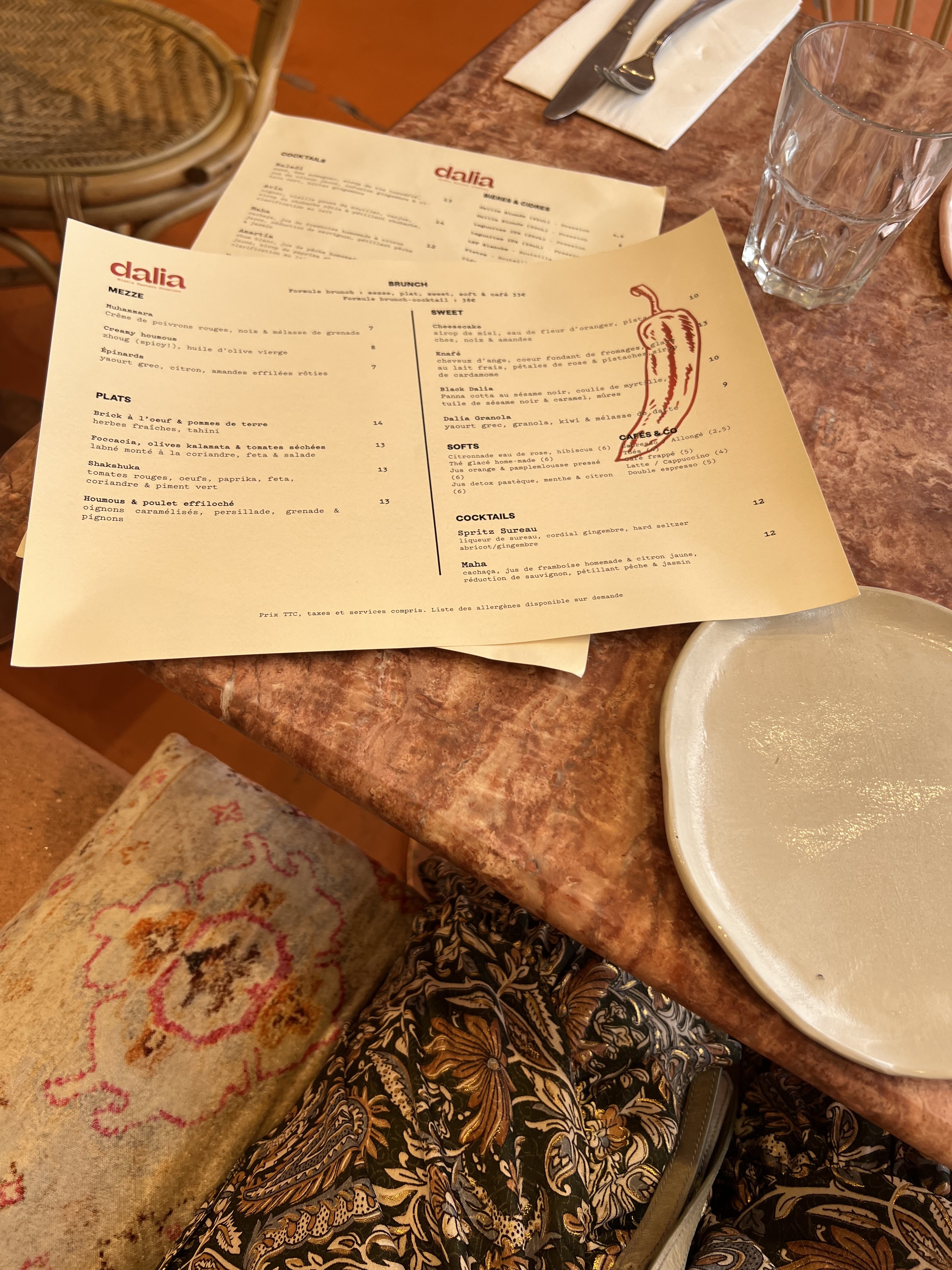 Merci le mois d'Août à Paris à moitié vide car nous avons enfin pu tester Dalia ;-). Pas déçue ! Equipe au top (bravo à Tomer pour son sourire, sa gentillesse et ses conseils en plus de nous avoir fait voyager en Israël qui nous manque tant avec son joli accent et son hébreu chantant) avec un proprio fort sympathique (Benjamin) et aux petits oignons, des plats savoureux qui font voyager, un lieu et un décor canon (gros coup de coeur, et oui, pour les WC du RDC !) et surtout une ambiance qui donne envie de revenir. Bravo !