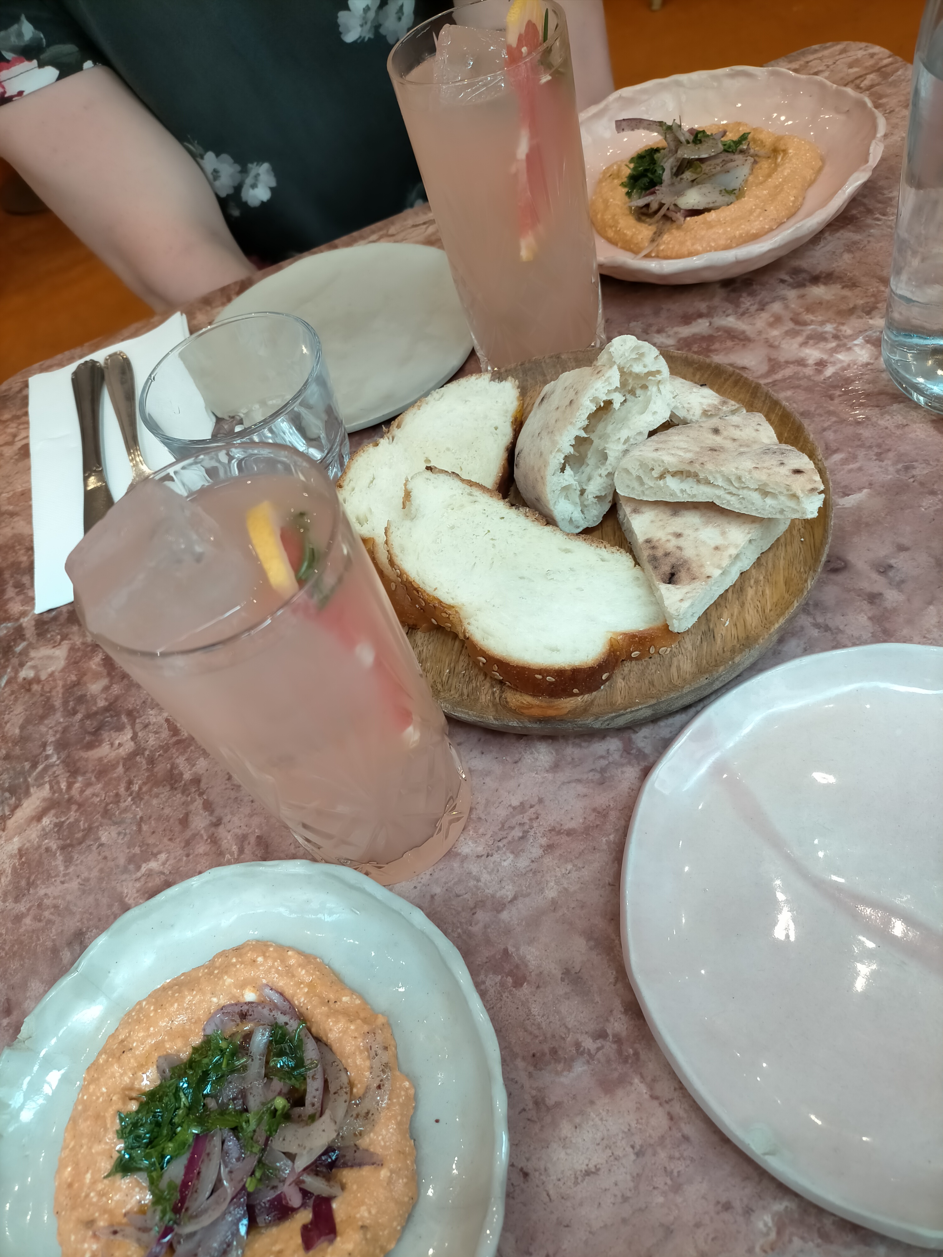 Pour une première expérience, j’ai vraiment adoré. Les plats ont été servis super vite. On a pris un houmous avec du poulet effiloché, des oeufs de cabillaud fumés (vraiment incroyable), le tout servis avec du pain. Et la citronnade à l’eau de rose, je dis juste waow. Les plats étaient vraiment bon. Bref, une super adresse.