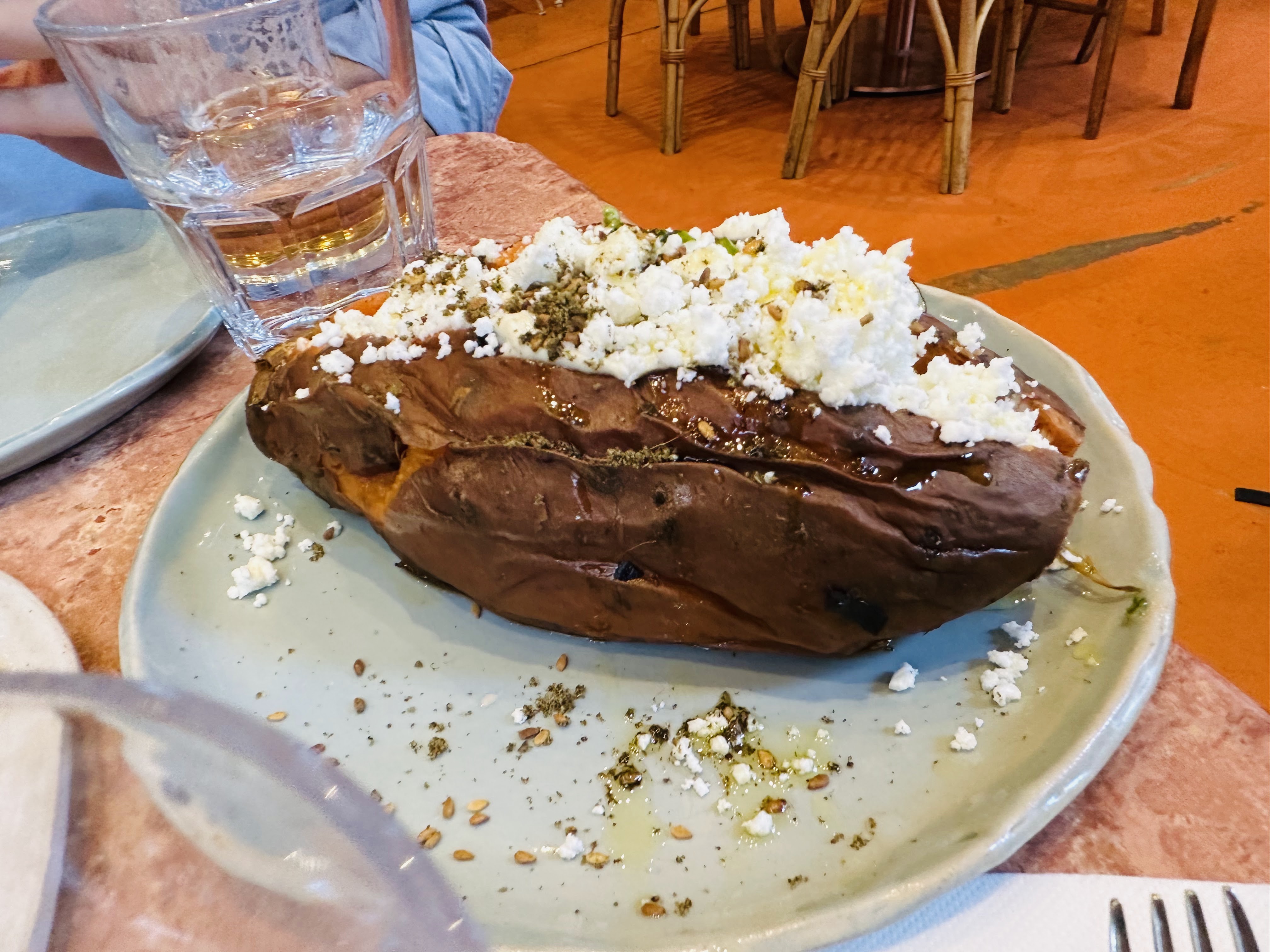 Le décor est planté avec une belle salle, ouverte et spacieuse aux couleurs chaleureuses. Le bar ouvert et la musique donnent le ton ! Le service est impeccable (les plats sont un peu longs a arriver… il faut dire que c’est the place to be en plein mois d’août alors que beaucoup de restaurants sont déserts)! La cuisine est savoureuse et généreuse ! On aime découvrir ces saveurs méditerranéennes qu’on partage entre amis ! Un beau moment de convivialité :)