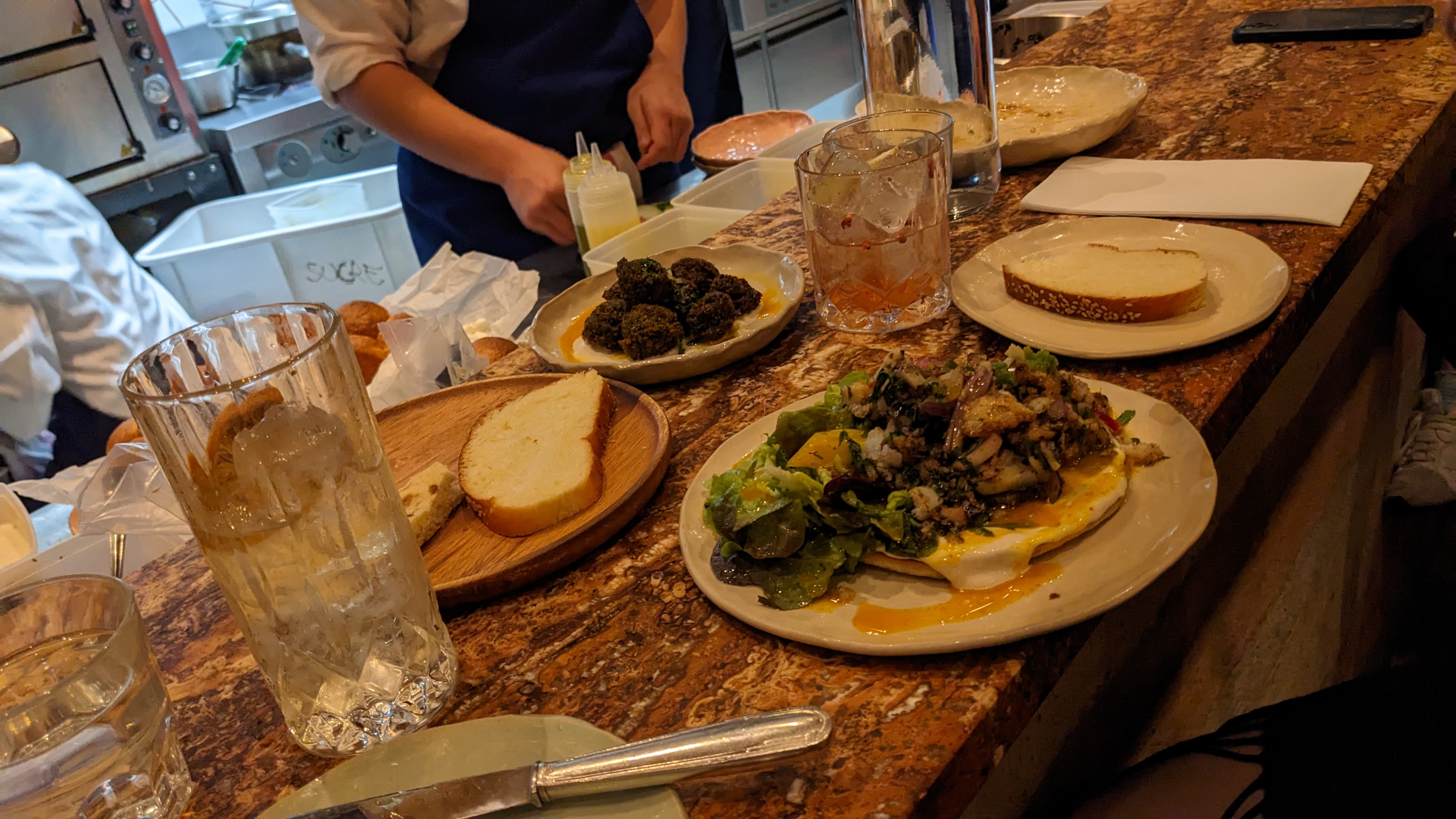 Superbe découverte ! Difficile de réserver depuis l’ouverture, enfin on a réussi ! La déco nous emmène directement en Méditerranée, le côté sensoriel du voyage vient indéniablement des plats. Le pain de Dalia est juste une tuerie ! A commander sans hésitation, le pain est est croustillant à souhait, les accompagnements parfaitement assaisonnés. Le bœuf est succulent et fondant. Le tarama est assez incroyable aussi. On a même pas eu le temps de prendre en photo la salade poulpe et le dessert que ca a été dévoré instantanément. En somme on a passé une excellente soirée ! Et coup de cœur pour les cocktails ! Hâte de goûter le reste de la carte !