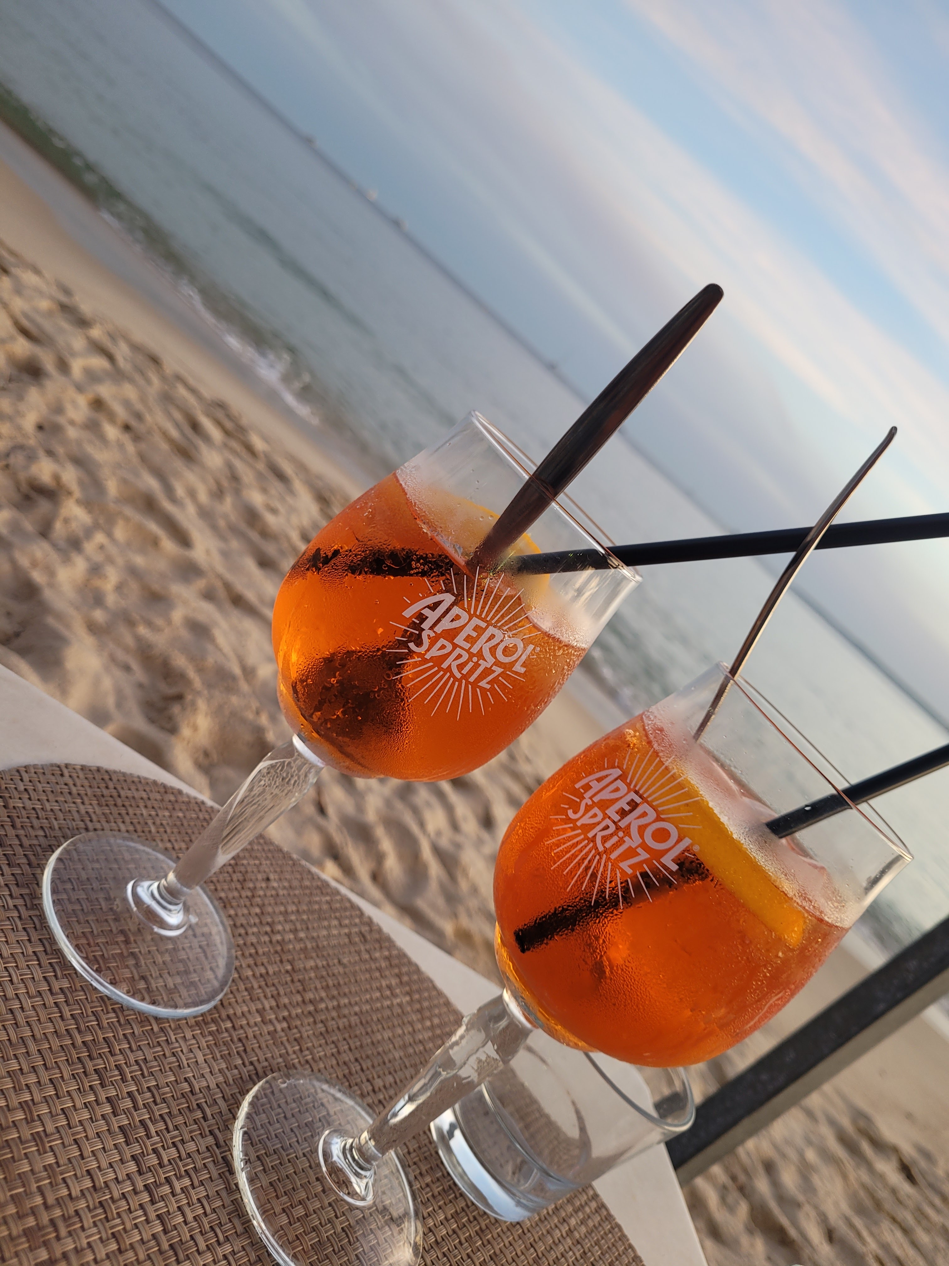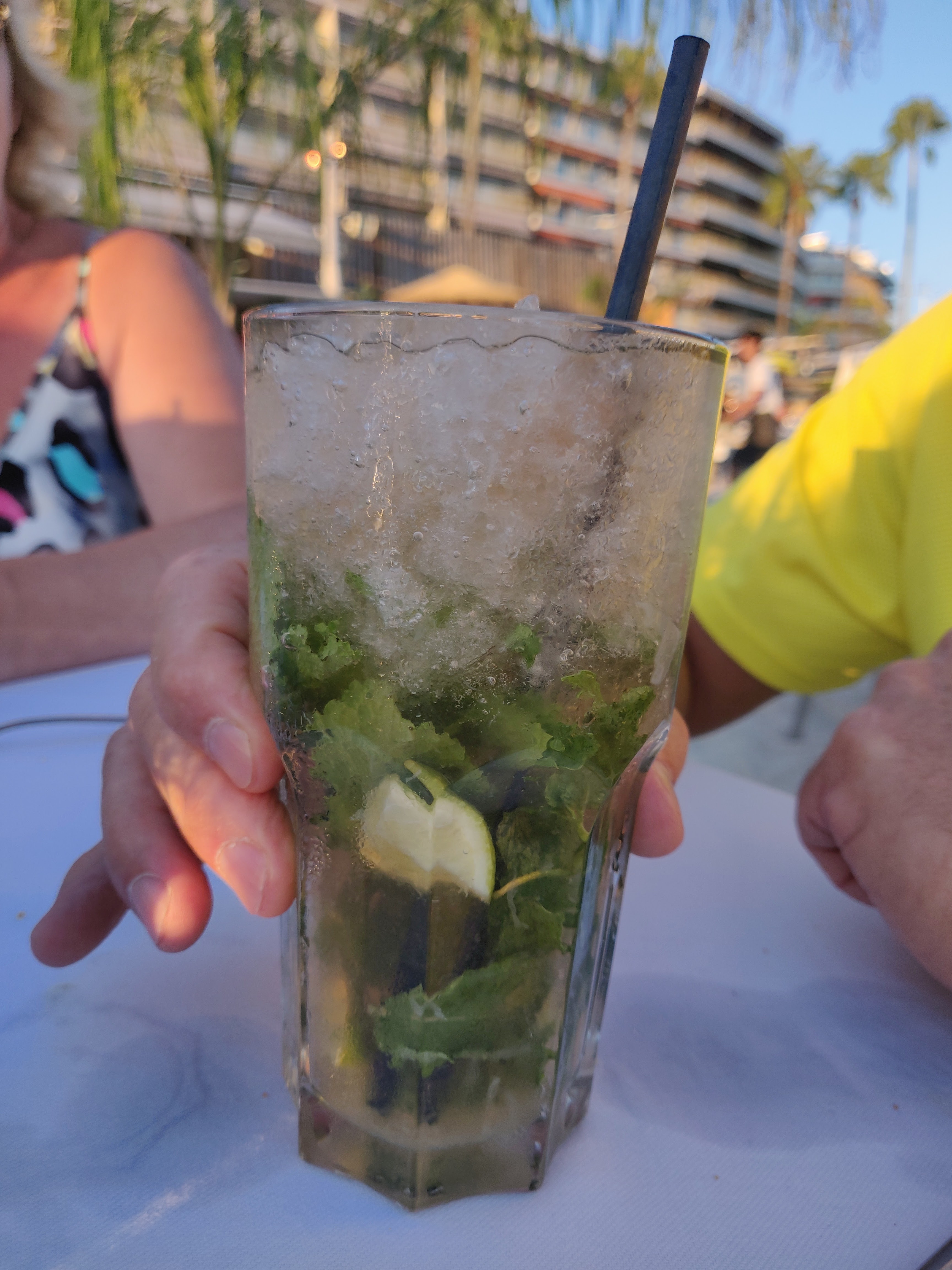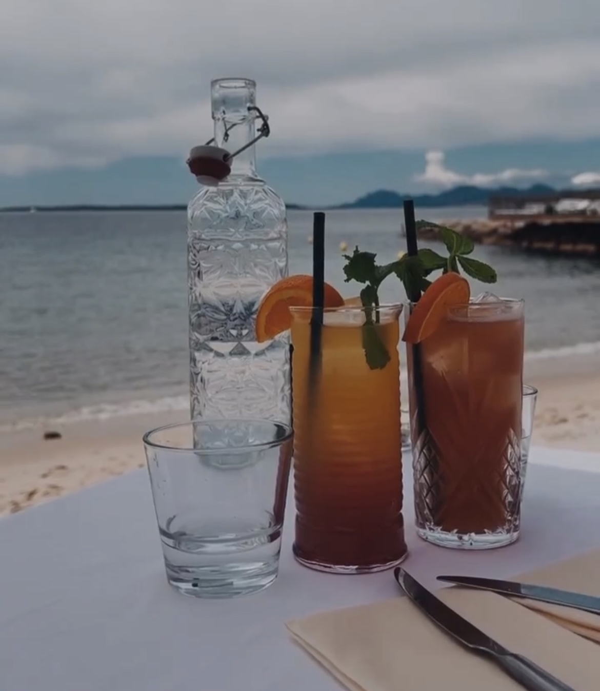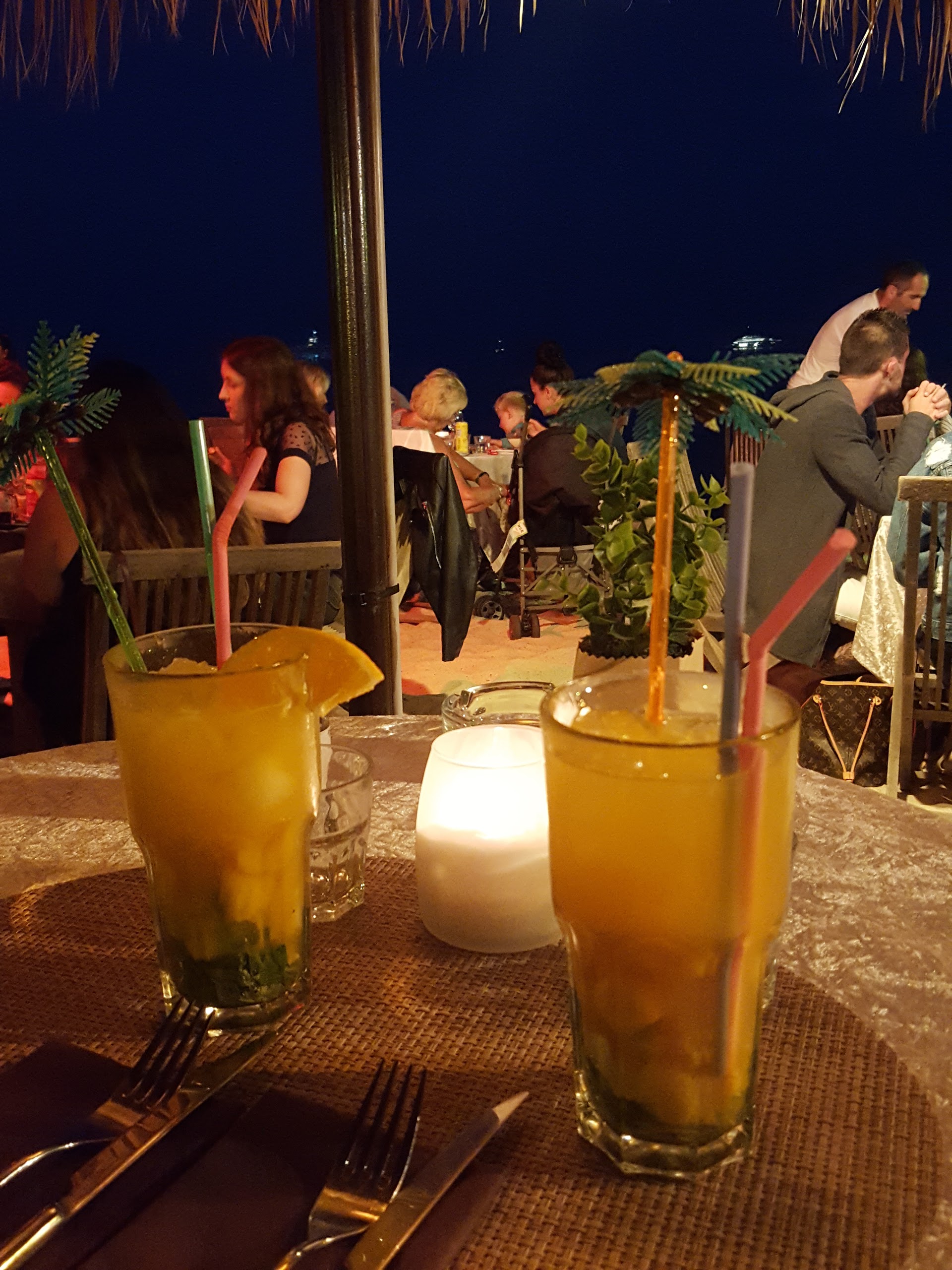 Avant d'arriver dans ce lieu nous avons tenté d'aller boire un verre dans deux plages différentes et nous nous sommes fait recaler car ils rangeaient les transats pour le service du soir. Très bizarre comme concept. Finalement nous sommes venus ici et nous n'avons pas regretté. Les tarifs sont assez élevés, mais en accord avec le cadre et l'aspect touristique. De plus nos deux cocktails étaient excellents et la serveuse très sympathique. Nous reviendrons certainement. À noter que si vous souhaitez manger là-bas un soir de feu d'artifice, il est conseillé de réserver 4 à 5 jours avant pour avoir une table.