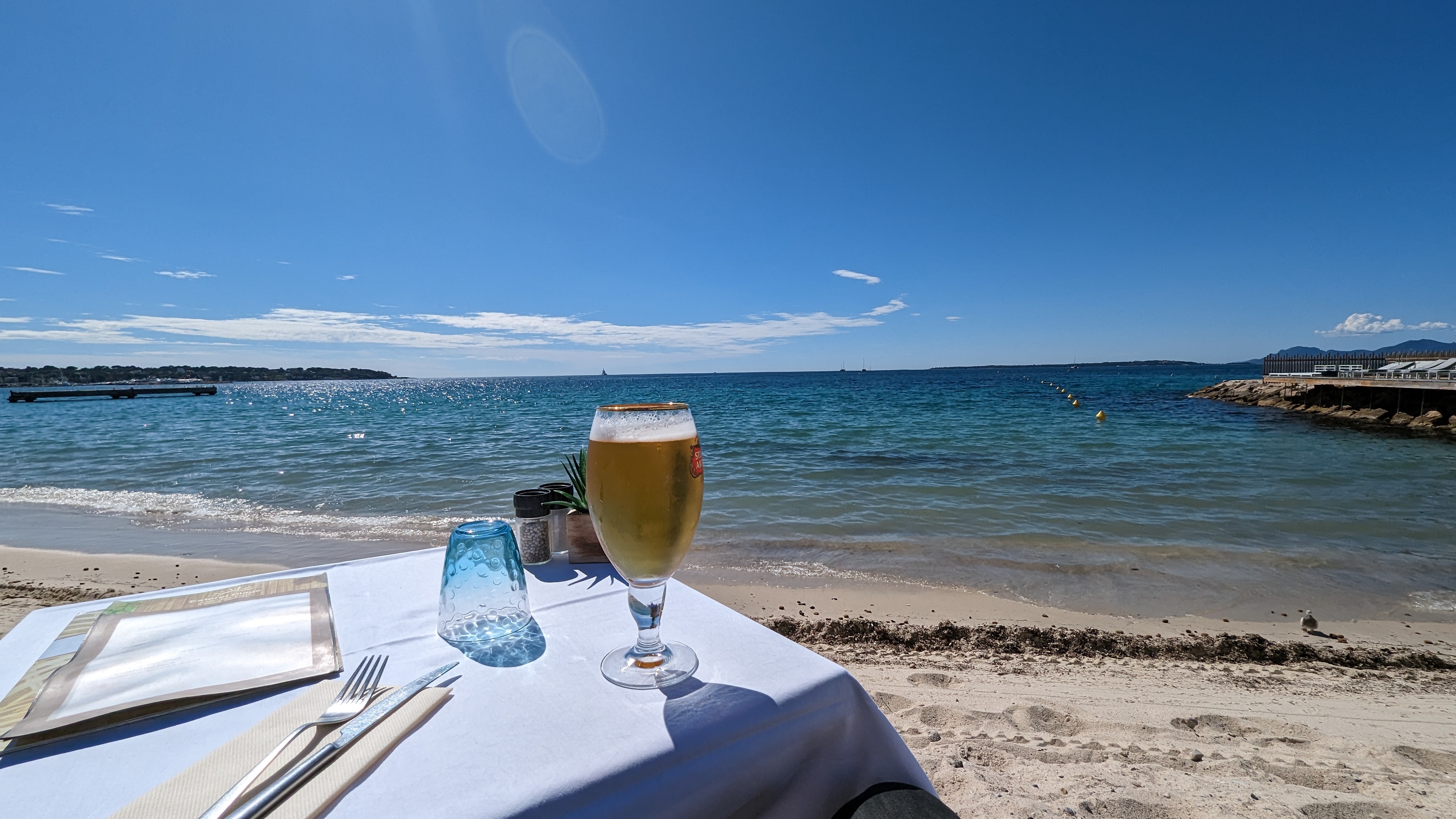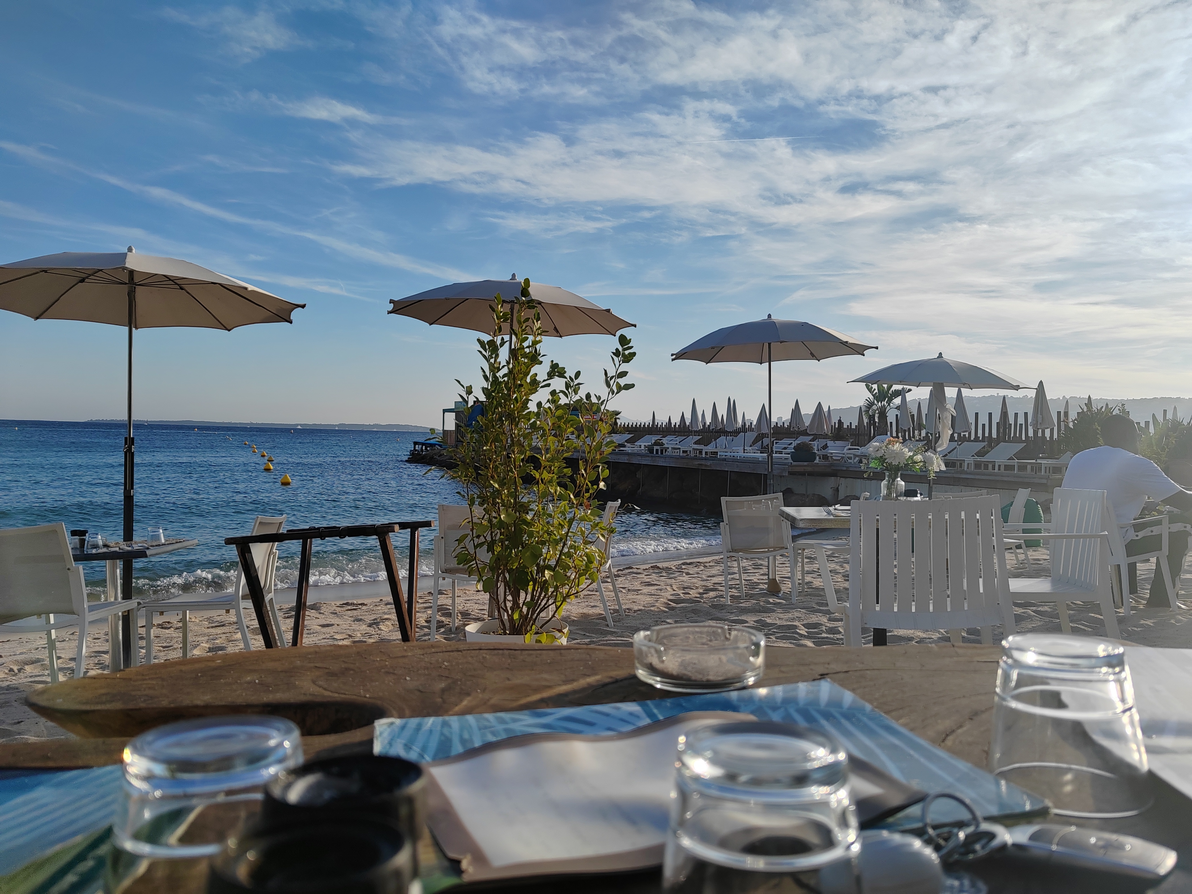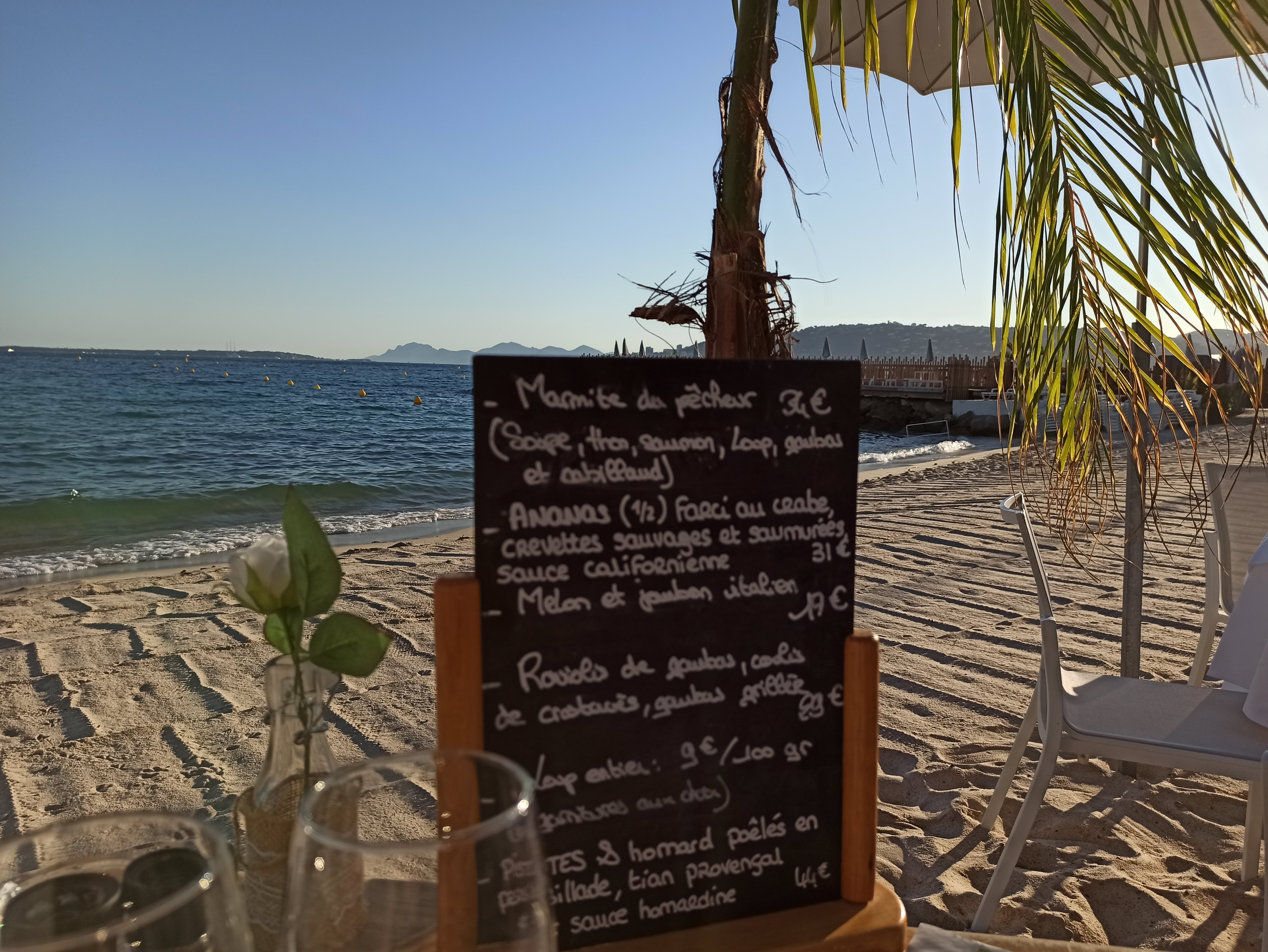 Bonjour , en vacances dans les alpes maritimes, en balade à proximité de la mer de Juan-les-Pins, je suis tombé sur ce restaurant et j’ai voulu tester, le personnel est professionnel et souriant , j’ai mangé en bord de plage le cadre est vraiment magnifique ( photos ) , j’ai également remarqué que le restaurant est propre à l’intérieur quand j’y suis passée c’est important, le repas était correct, prix abordable quand on à un cadre comme celui-là, merci.