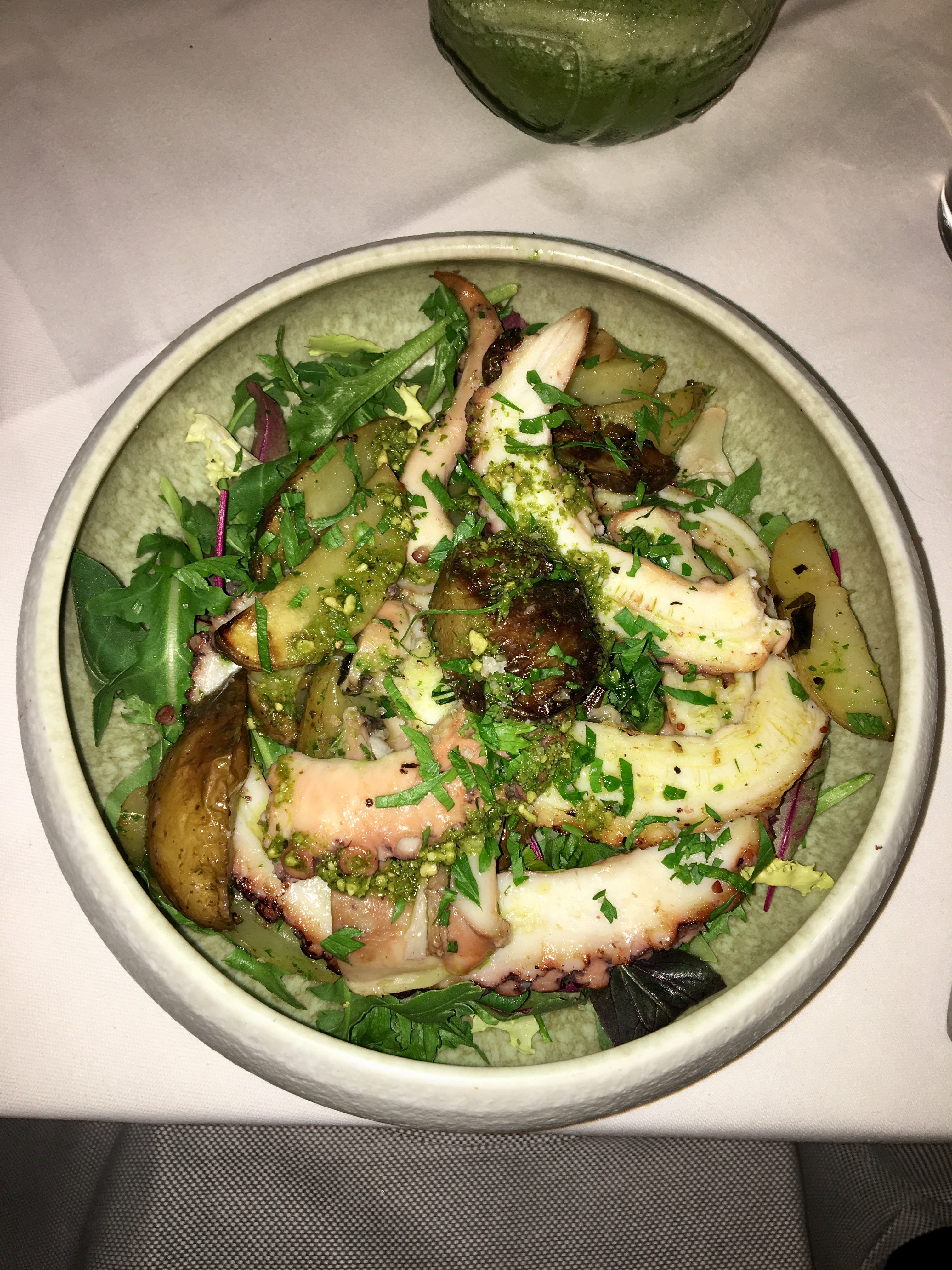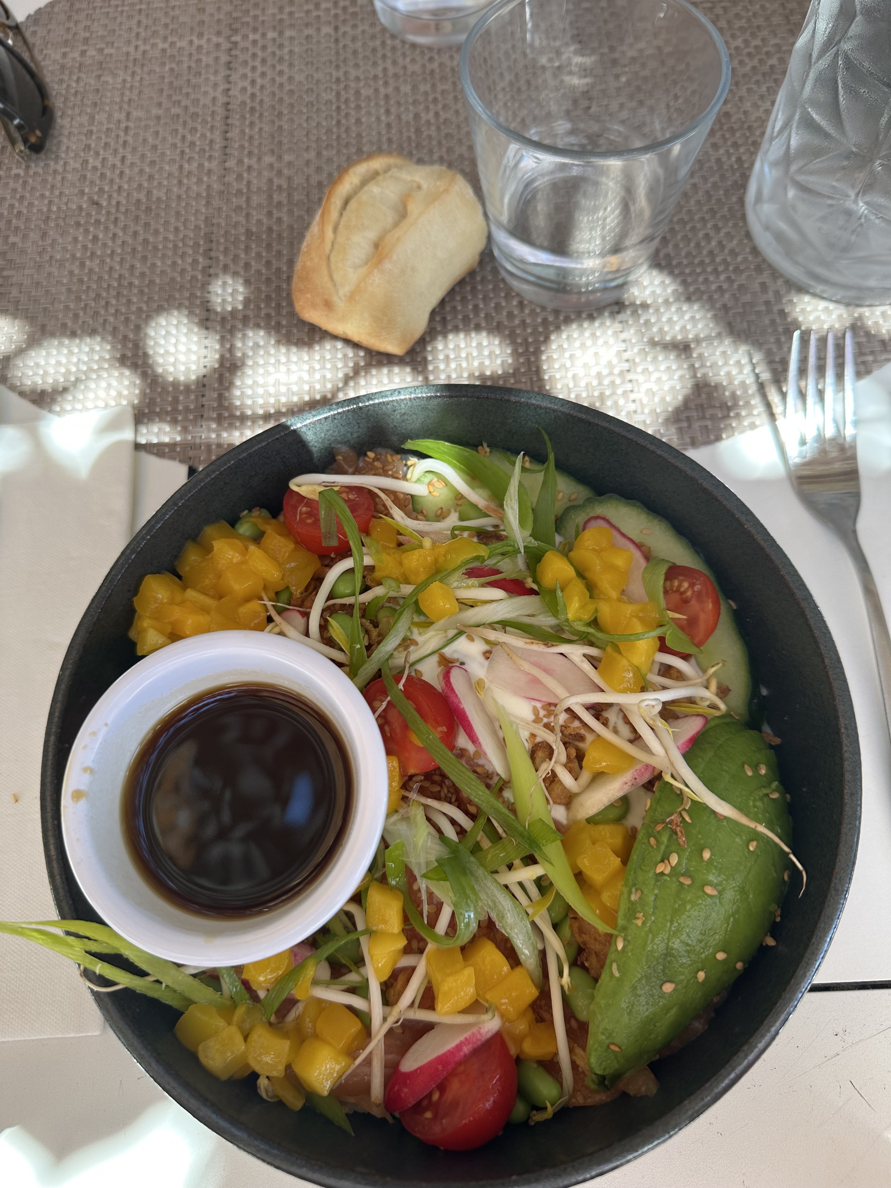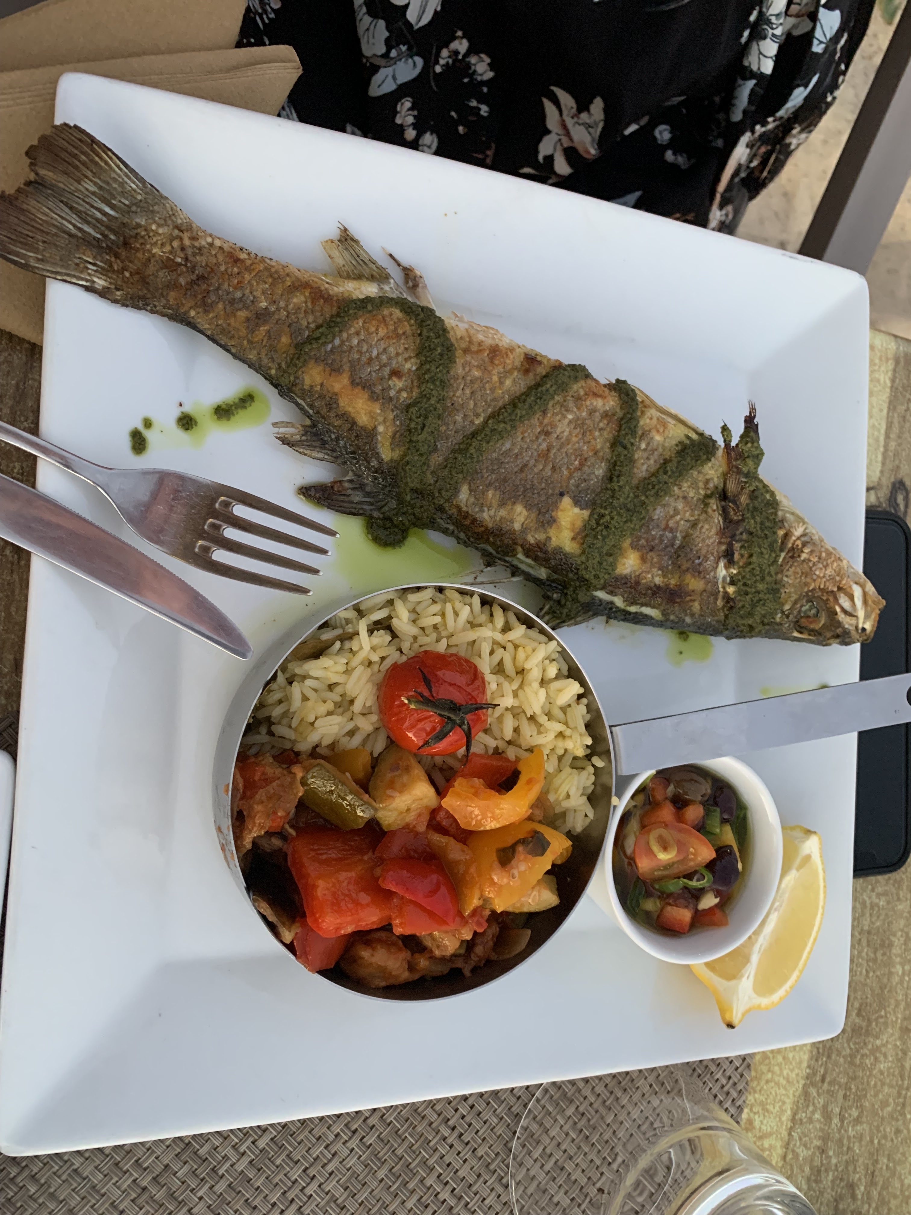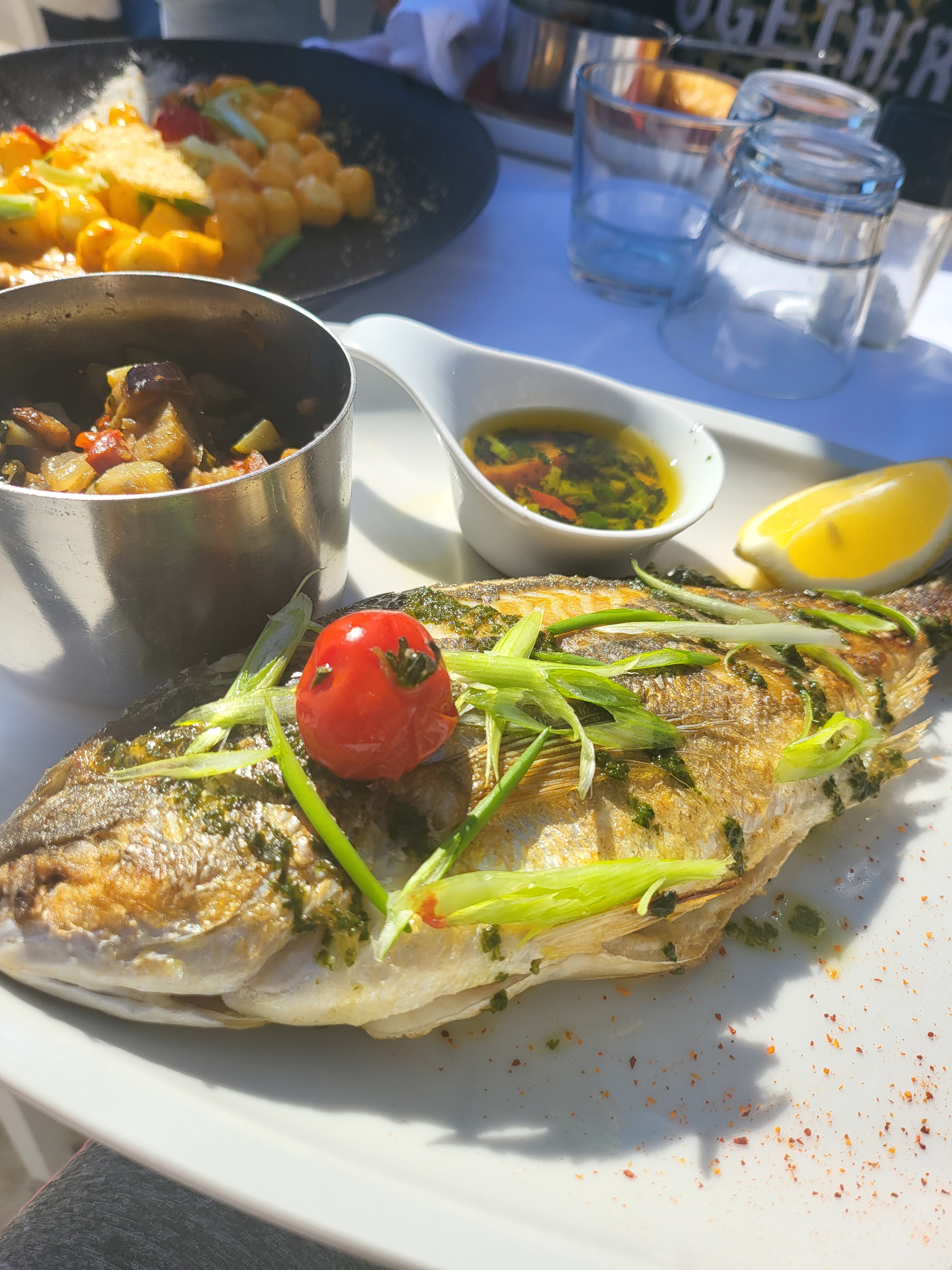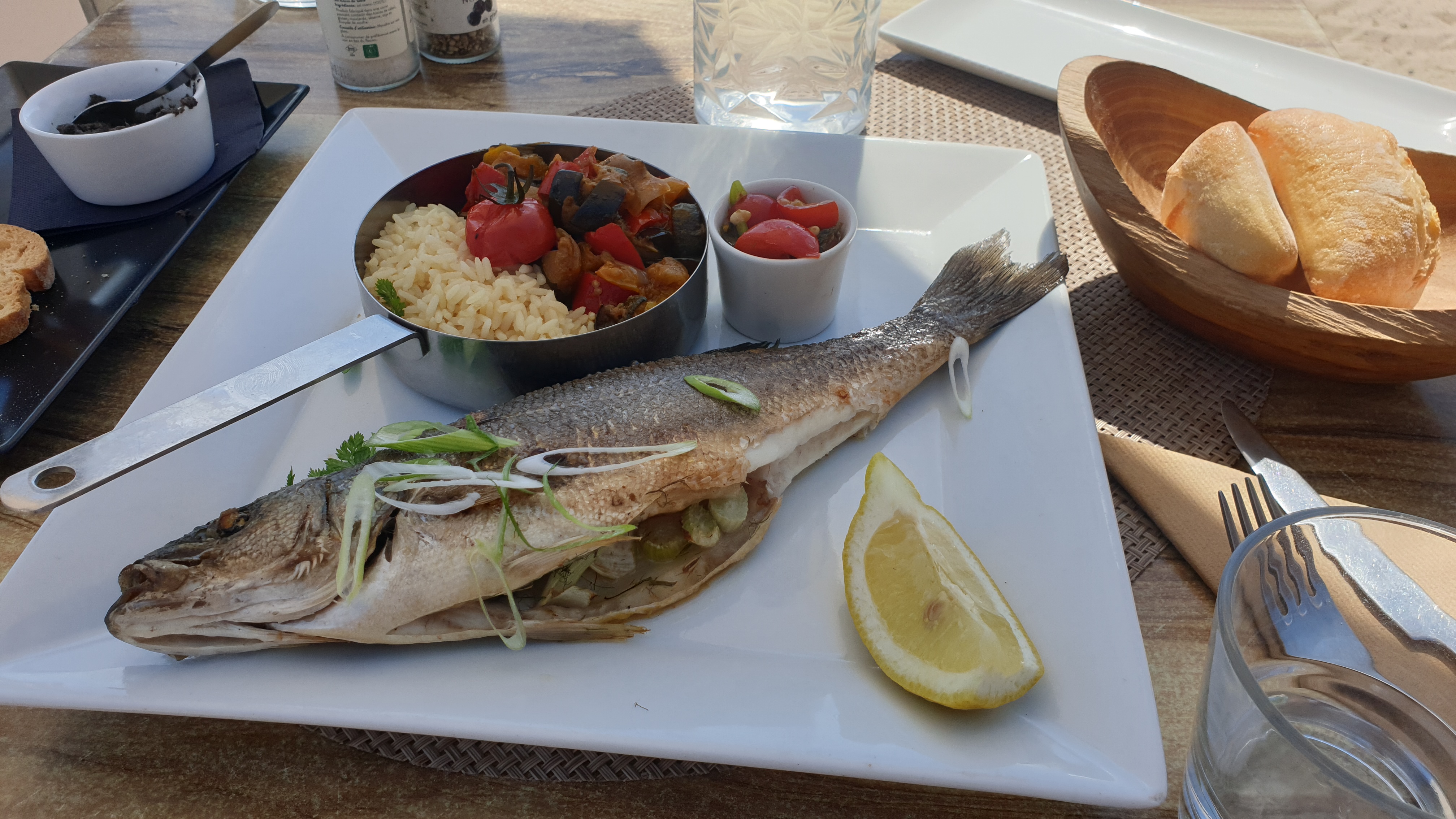 J'y ai pris un transat pour la journée. À midi j'ai pu avoir une table pour déjeuner. Le poulpe était parfait.