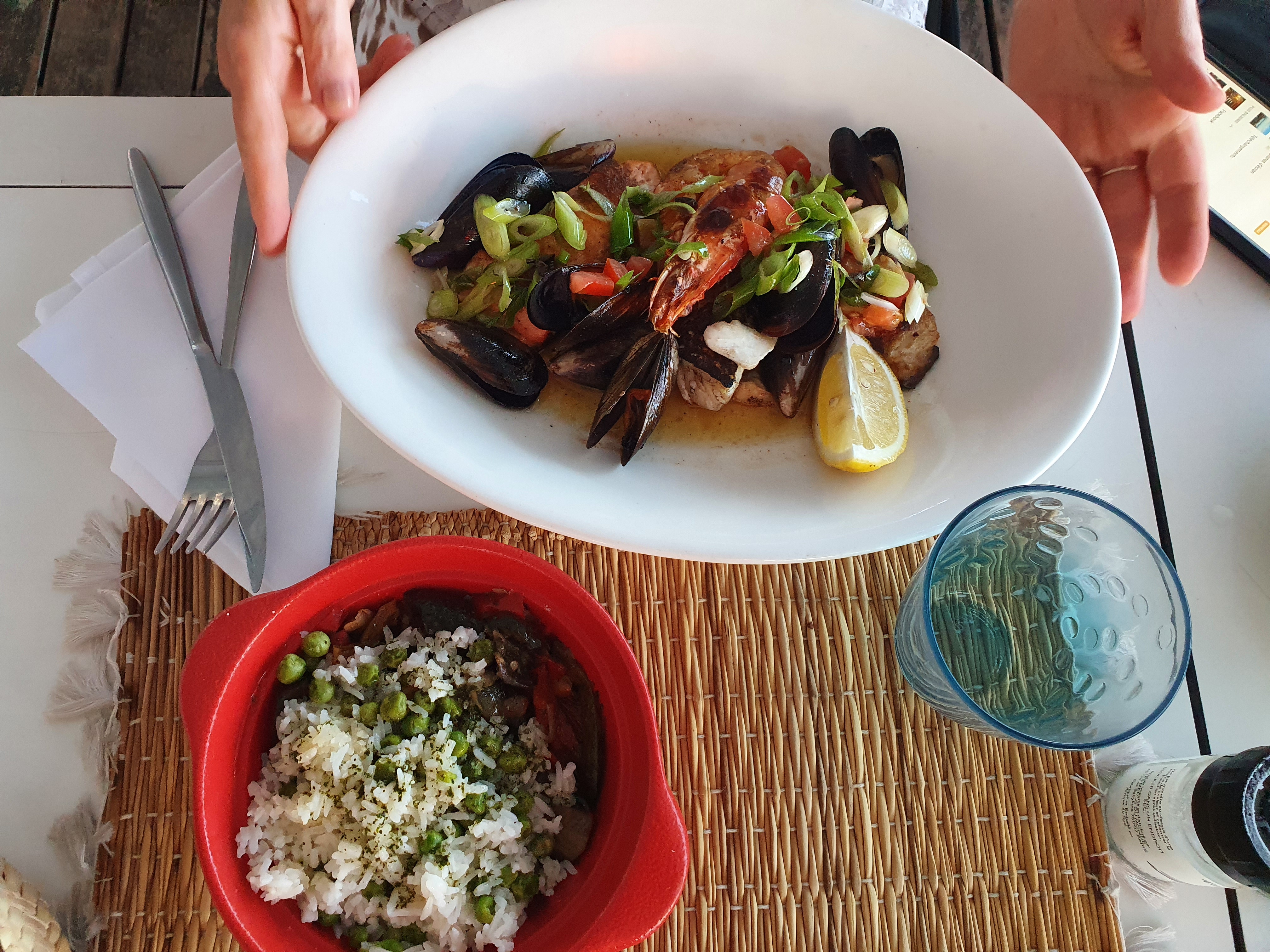 Agréable et gourmand déjeuner sur une belle terrasse sur la plage !