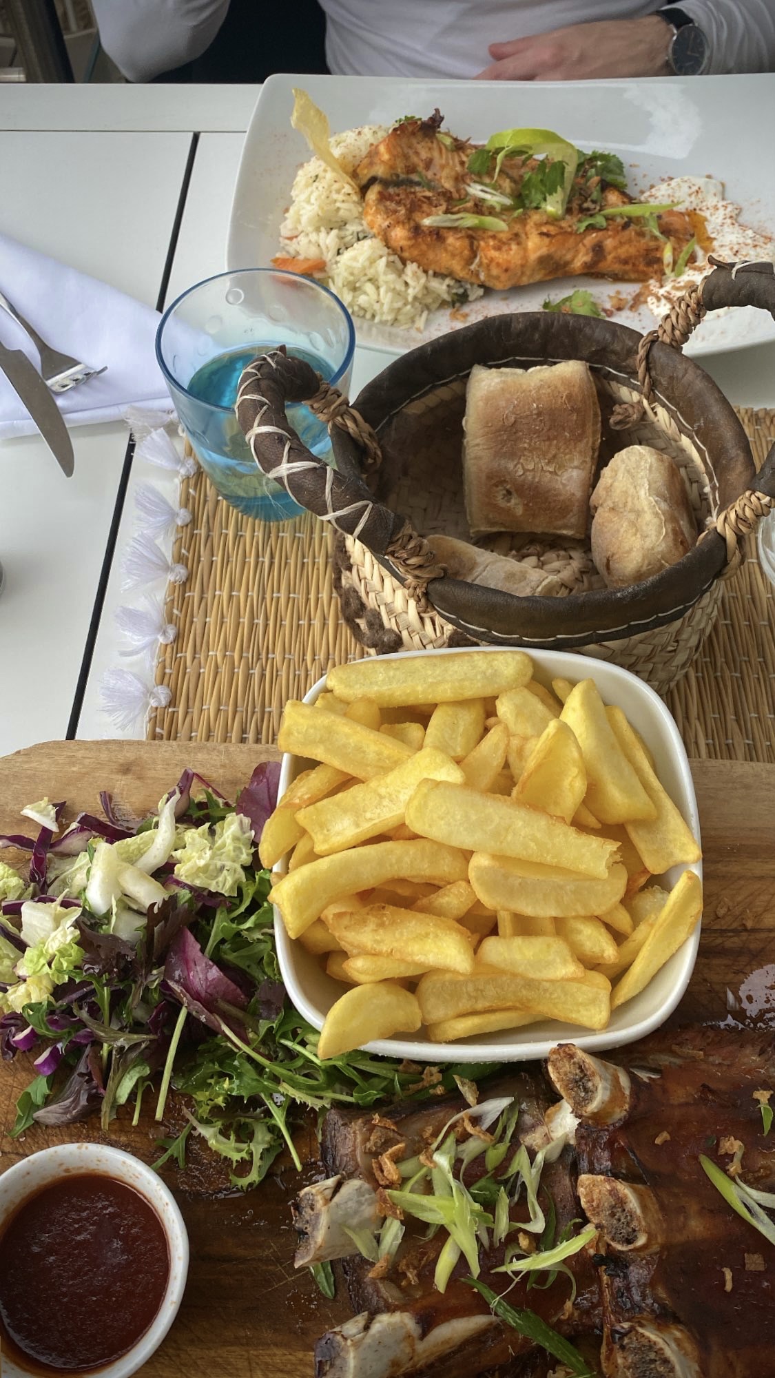 La plage est sympa. Le personnel également. Le restaurant est beaucoup trop cher. 28€ pour une entrecôte de 100g avec un saladier de frites surgelées, on se moque pas mal du monde de ce point de vue là. Même constat pour une planche apéritive à 35€ avec trois fois rien.