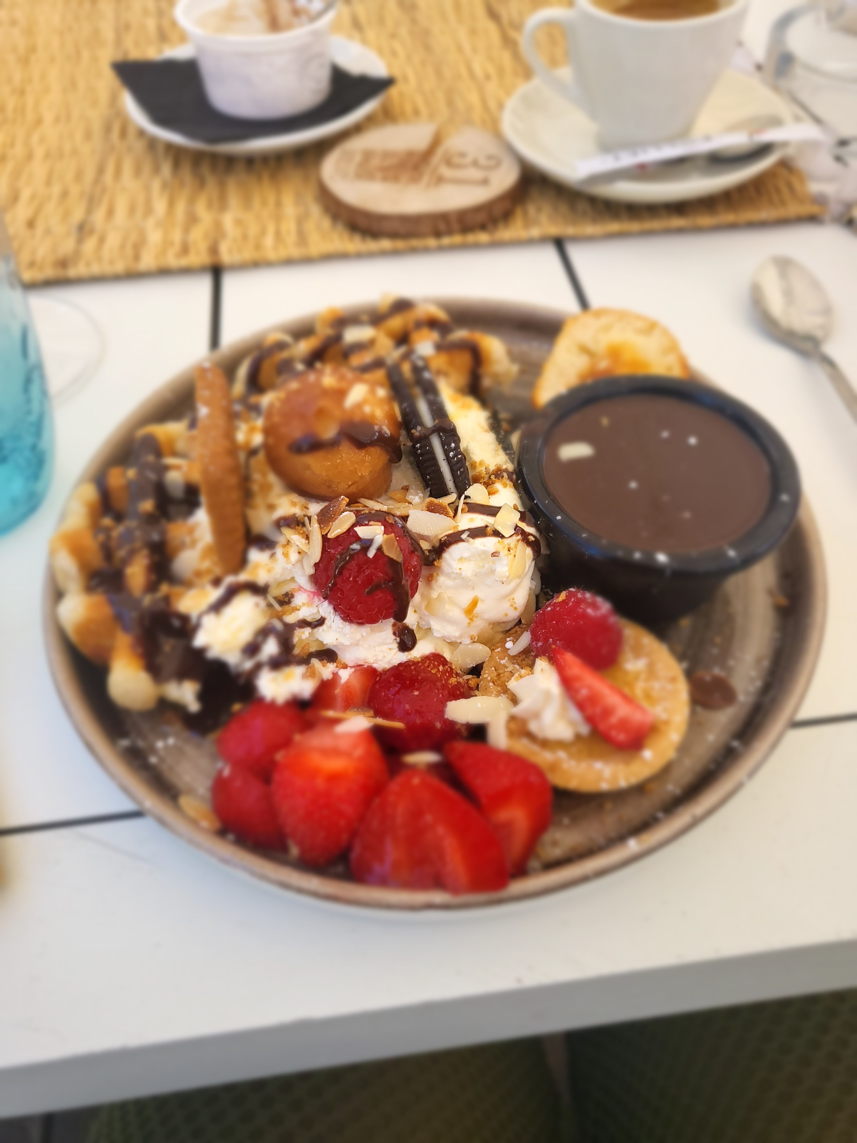 Un petit arrêt pour un chocolat chaud au soleil. Un accueil désagréable. Un chocolat froid à base d’eau principalement. Bref, à passer. Heureusement il y avait le soleil.