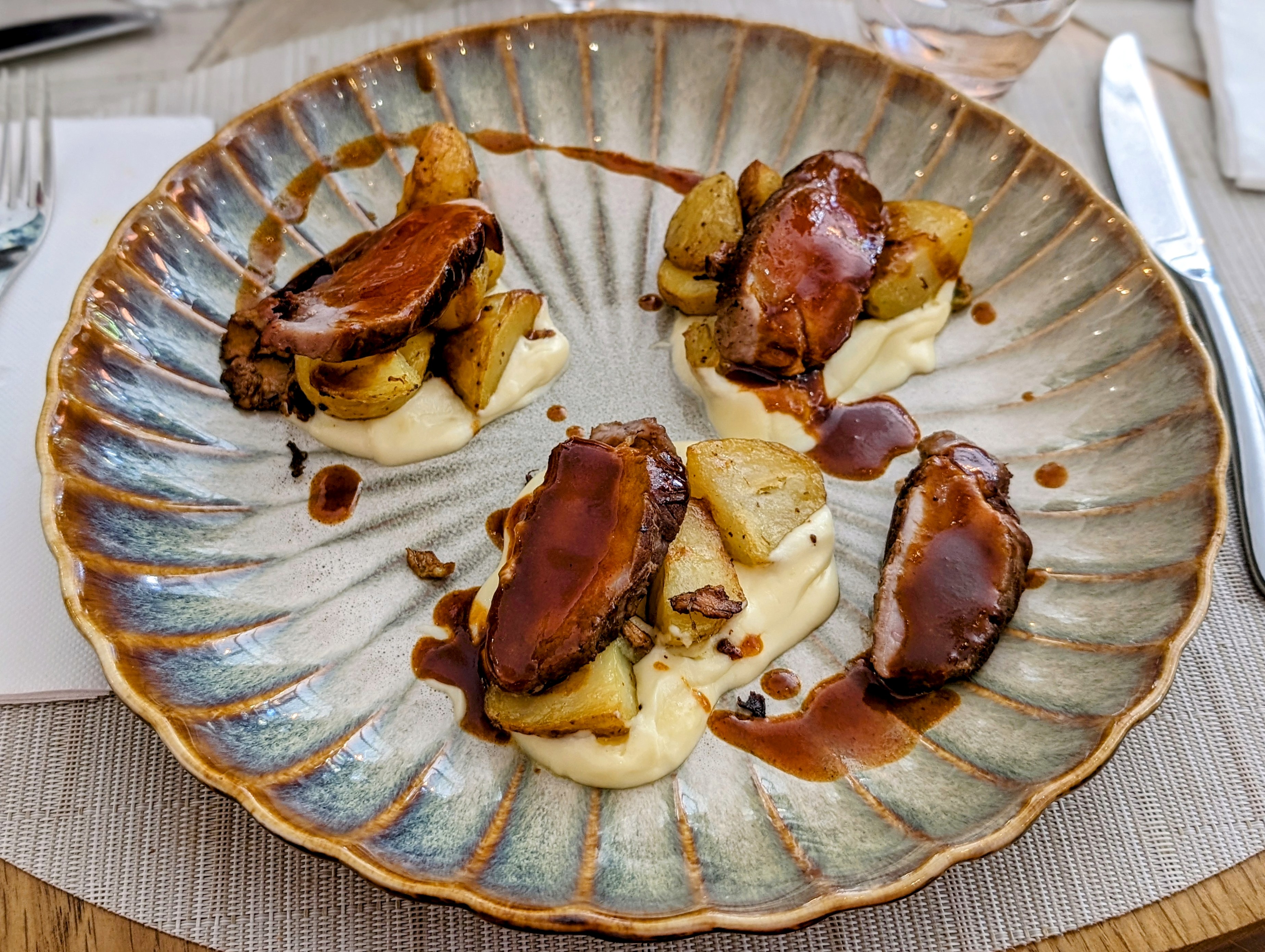 Posté le 18/06/2024 à 13:40"Tout est excellent et très fin, un régal. Le menu (le midi en semaine) comprenant l'entrée, le plat et le dessert (avec le choix entre 3 possibilités pour chaque plat) est à 28€ : très raisonnable. Pensez à réserver. Nous sommes revenus et nous nous sommes régalés à nouveau."