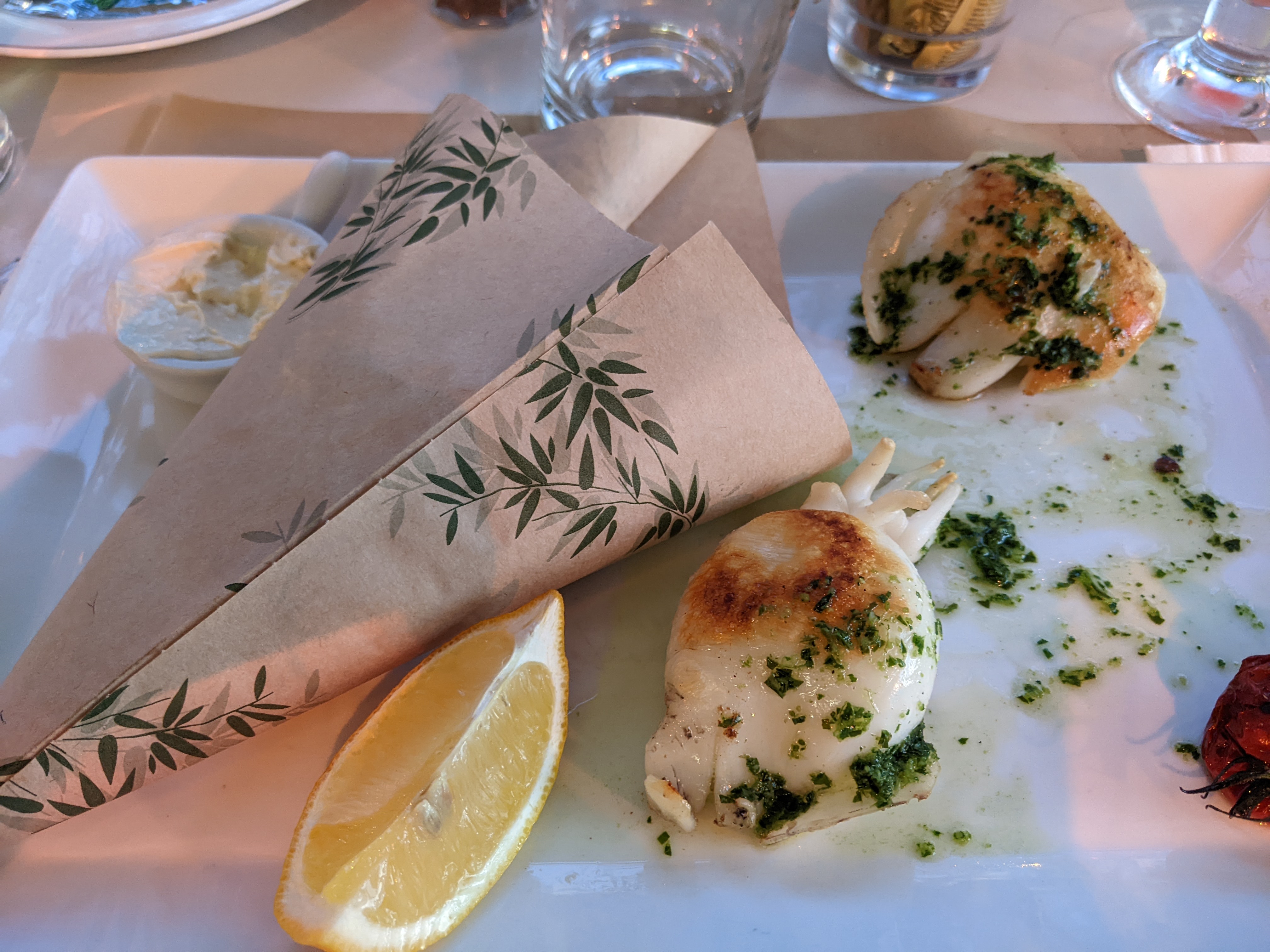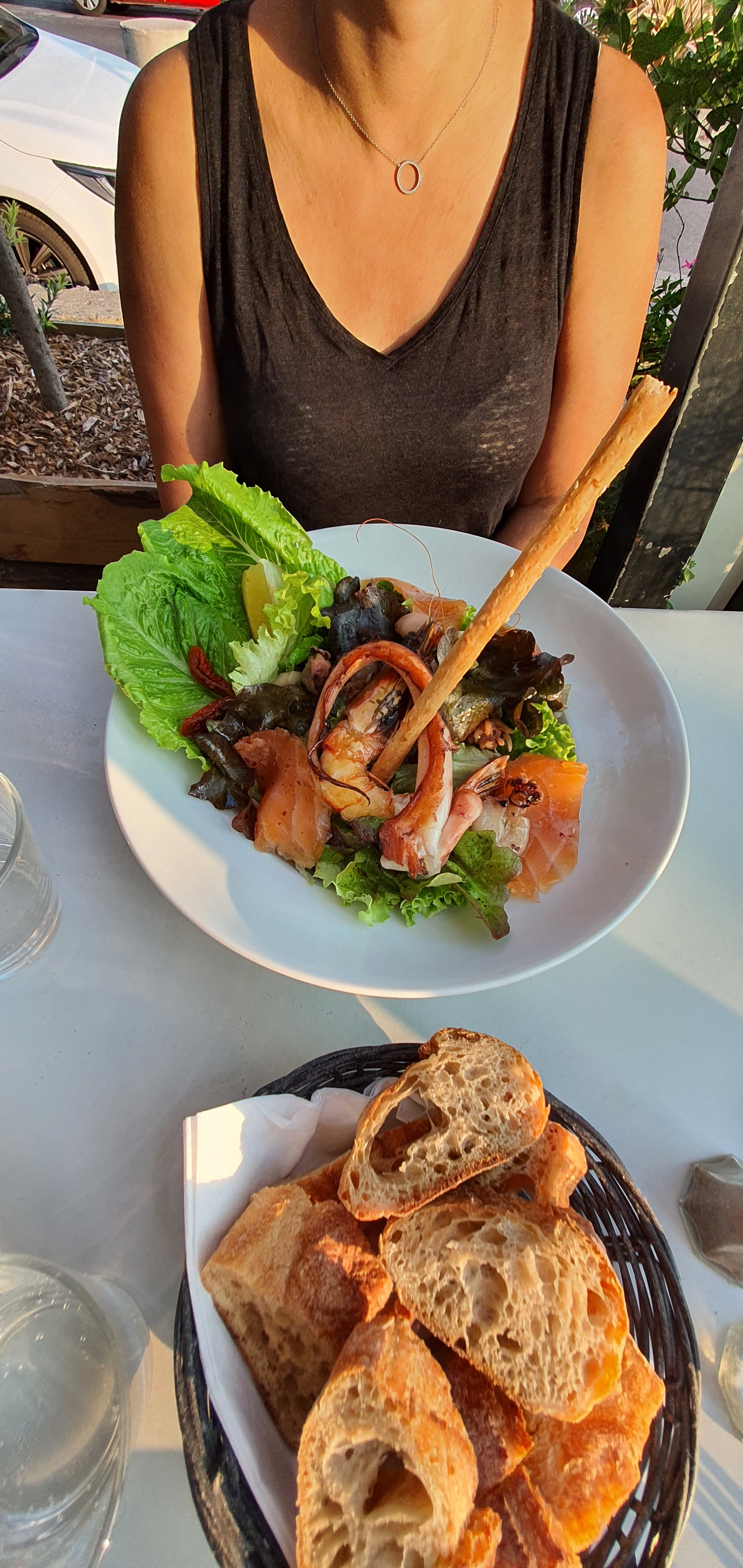 Petit repas pris en terrasse. Menu à 15€ pour une entrée plat ou un plat dessert ce qui est abordable pour un bord de mer. Trois choix d'entrée et plat du jour et des choix plutôt sympathiques. Aujourd'hui j'ai opté pour de la saumonette. C'était super bon. Leur rosé en pichet est excellent.