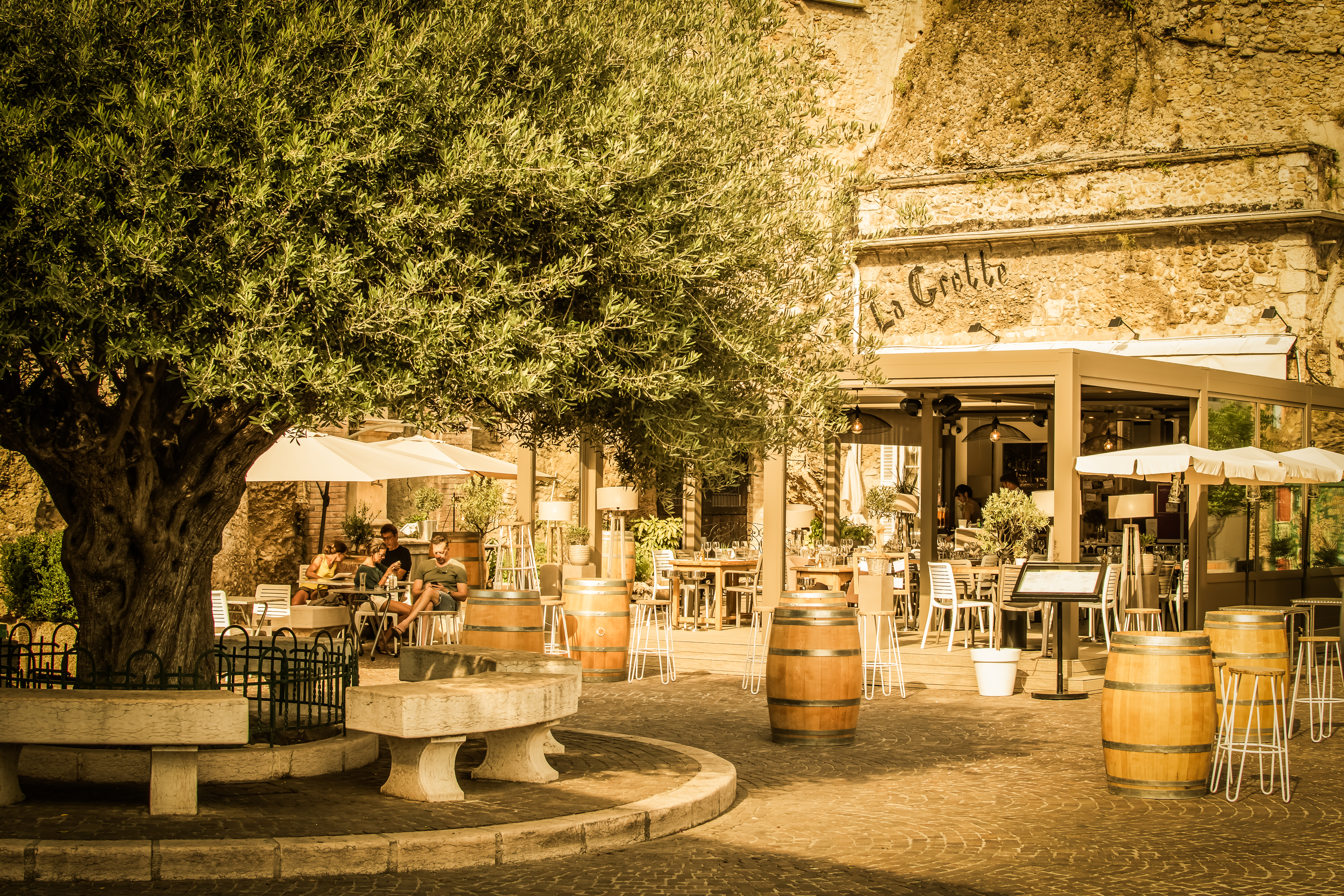 Cadre classe et sympa, personnel attentif et décontracté, et surtout, délice dans les assiettes : vraiment une adresse zéro défaut. Le tout sur un belvédère avec panorama très French Riviera. 3 emplacements possibles : sous la pergola (a privilégier), à l'intérieur (dans la fameuse grotte, très impressionnante) ou sur la place des 2 frères avec vue sur l'olivier central. On recommande ce restaurant et nous y reviendrons.