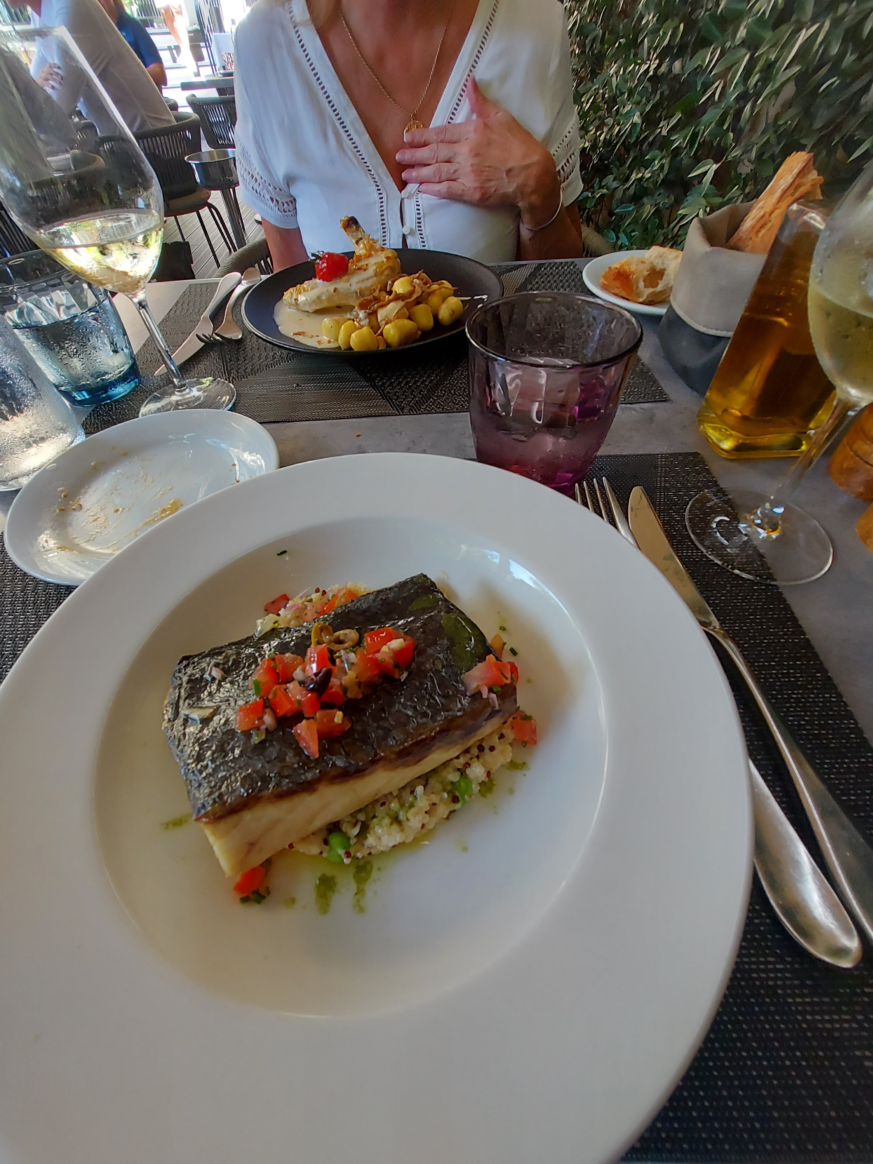 Posté le 20/09/2024 à 12:21"J'avais envie d'un bon dîner avec mon copain et ce restaurant mérite 5 étoiles. L'atmosphère était calme et relaxante. Nous nous sommes assis à l'extérieur, dans le patio. Nous avons commandé deux entrées à partager, le tartare de thon et la salade d'artichauts, tous deux délicieux. Puis le poulpe rôti et le poisson entier grillé. Le personnel est d'une gentillesse incroyable ! Je vous recommande de venir ici si vous voulez des fruits de mer."