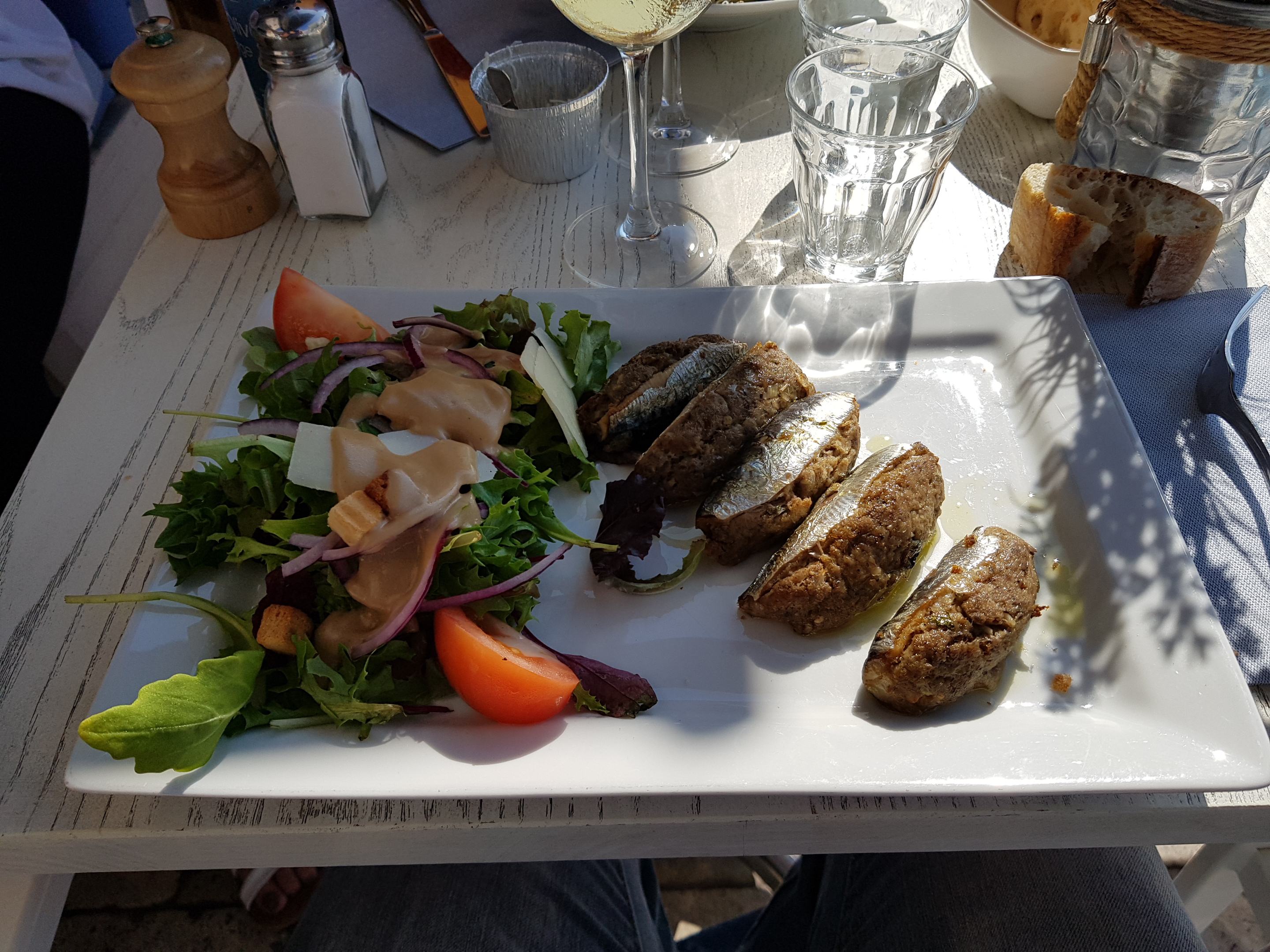 Nous avons pris sardines grillées avec purées de pommes de terre écrasées maison ! Un regale simple mais efficaces !