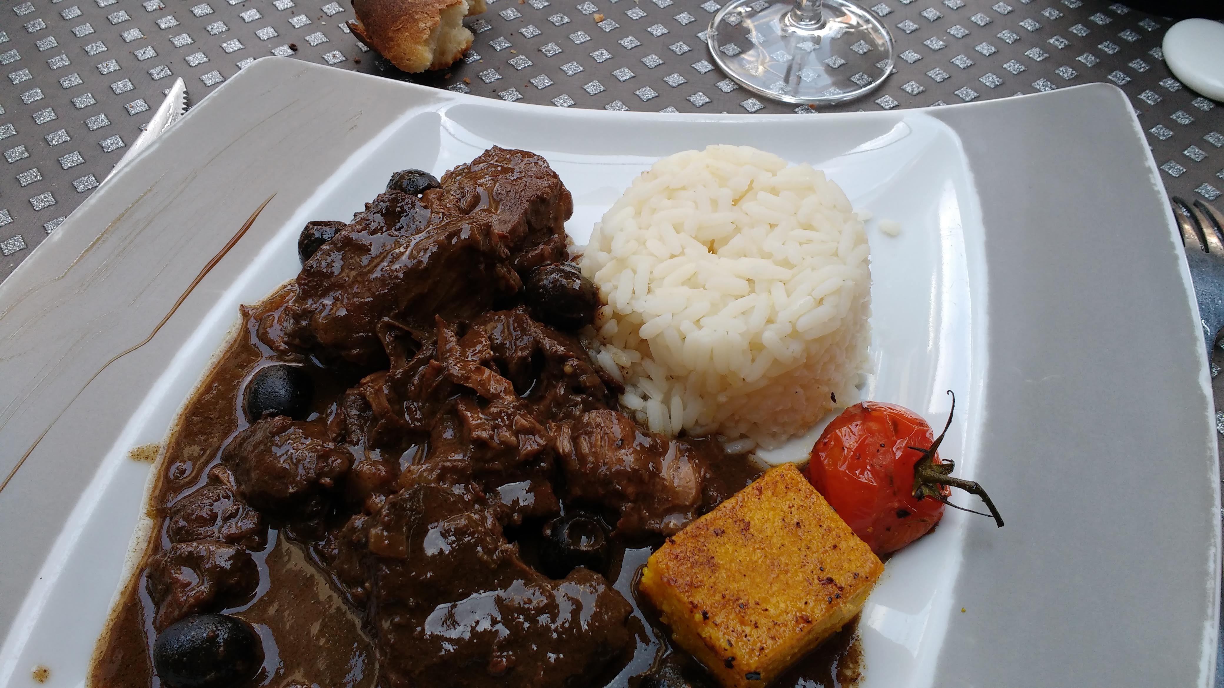 Posté le 20/07/2019 à 21:40"Rare ! Accueil professionnel, cadre agréable et très propre, bien situé (près de la gare et des arènes, il y a des parkings, pas loin du pont qui tourne mais pas dans la foule). On a très bien mangé, oui, c'est cuisiné et c'est local. De la qualité :rien que le pain, c'est un bon indice ! On n'a goûté les plats''viande'', et oui malgré le fait d'être au bord de la mer, désolé. Le carpaccio est excellent, coupé au couteau, goûteux et de qualité, avec l'accompagnement salade impeccable. J'ai découvert le pâté de tête de ...taureau ! A découvrir, et il est de qualité ! Puis la gardienne, humm...mais hummm...du ''fait maison'n...des plats inhabituels pour nous et un beau voyage culinaire camarguais !! On reviendra, c'est sûr !"
