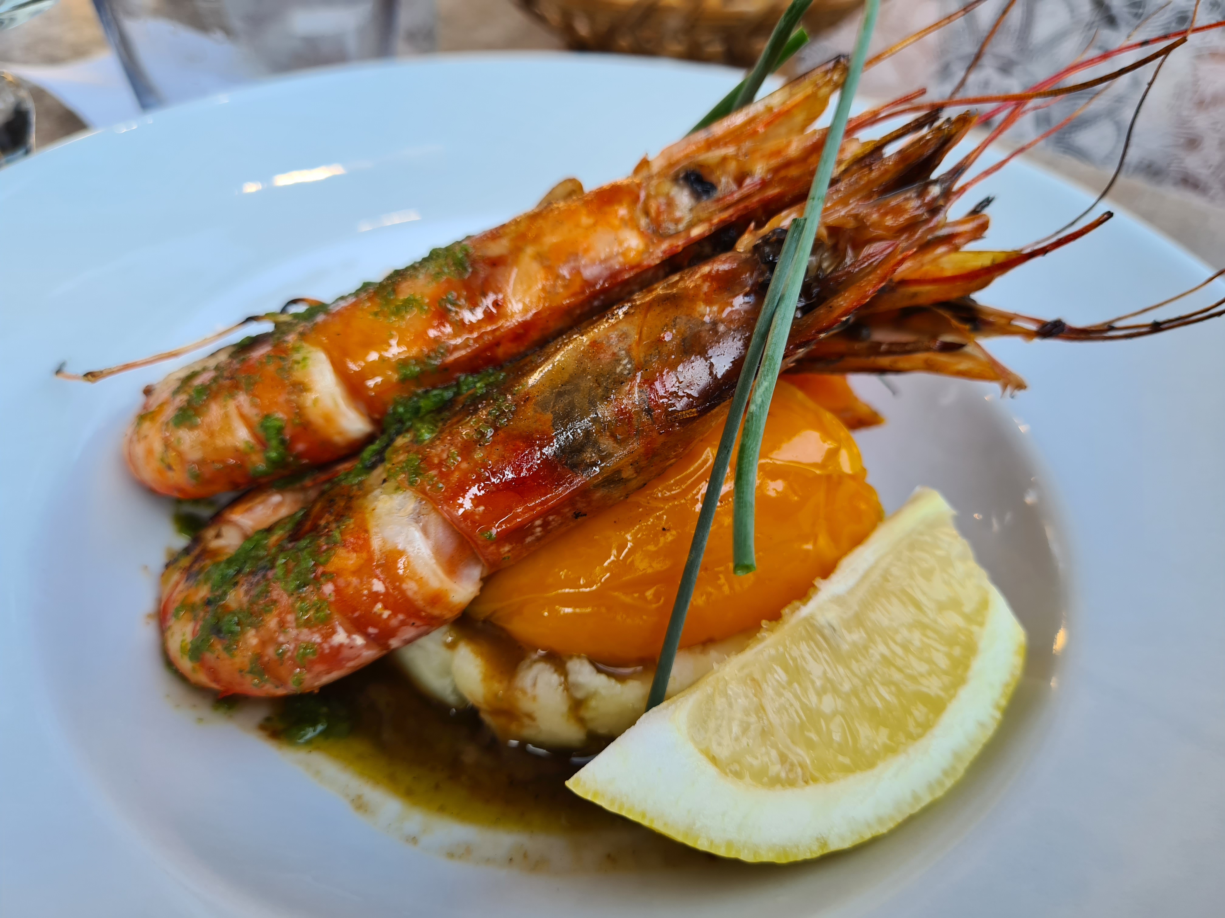 Bof bof . Quand on paie une assiette de foie gras à plus de 20 euros on s'attend pas à du surgelée et encore moins à l'équivalent d'une portion pour fourmis . L'assiette immense mais vide, je pense qu'il faut déjà adapter la taille de L'assiette pour pas choquer le visuelle . Les légumes des gambas toutes grillées sans aucun goût. Dommage pour la présentation car la purée est sous les gambas et pas pratique du tout pour manger . La garniture devrais être mise sur le côté et le poisson de l'autre pour un meilleur aspect visuelle et surtout pour pouvoir manger plus facilement. Un peu cher pour le service qu'on a eu !! Dommage
