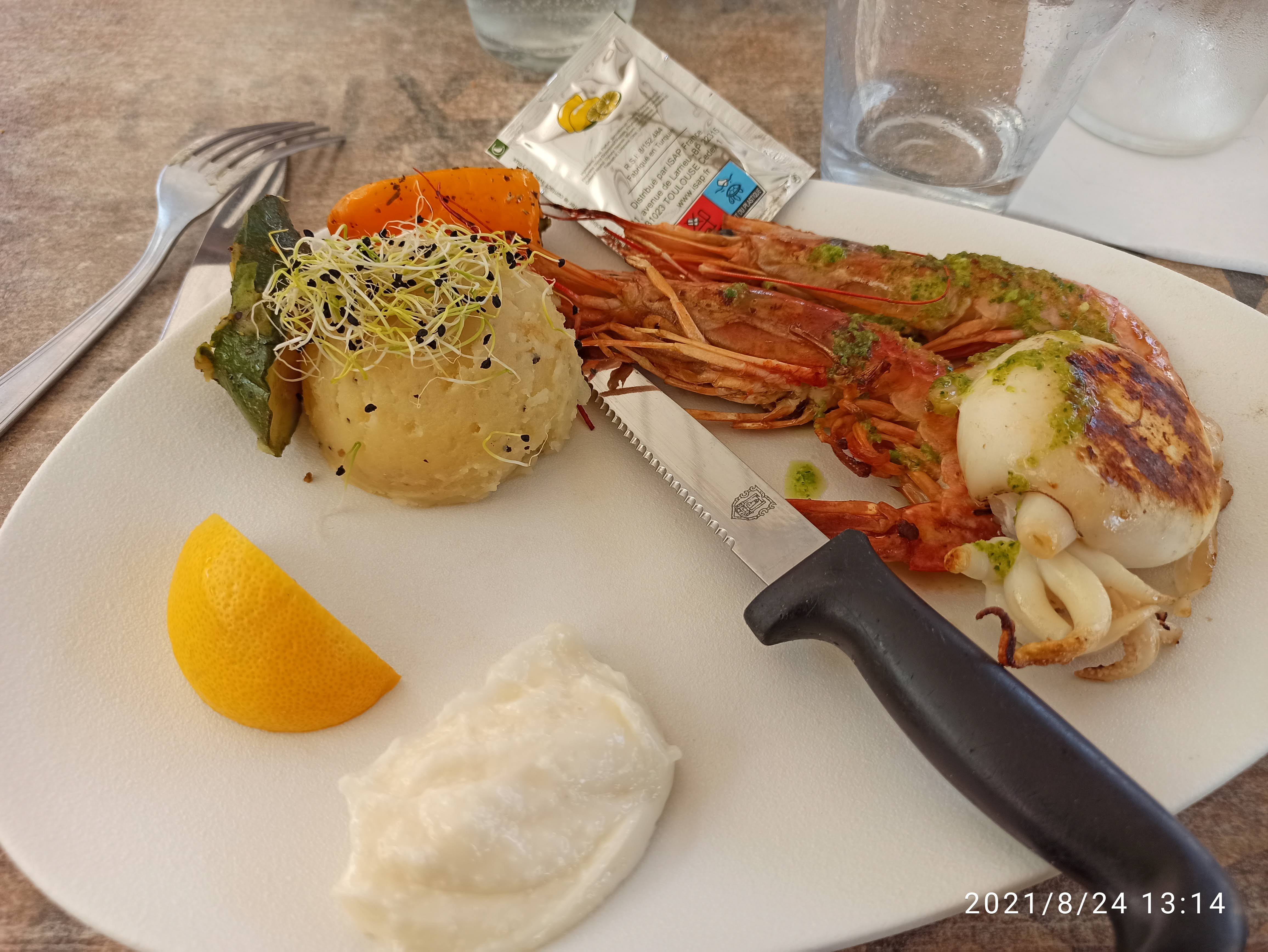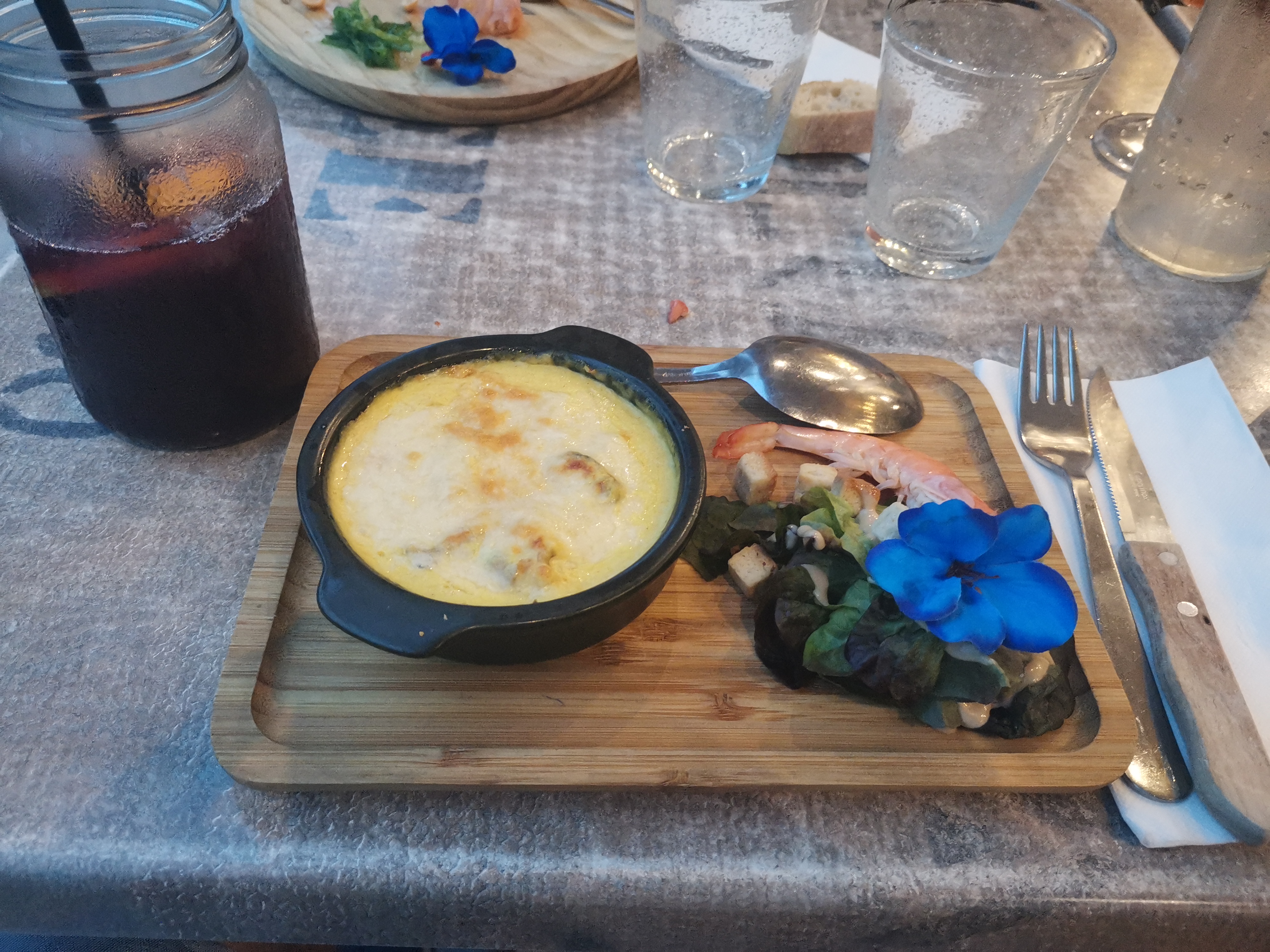 Hors saison, bien accueilli. Nous avons pris seiches à la plancha, et moules au Roquefort. Rien à redire pour les moules même si la sauce aurait pu être un peu plus mélangée et pas seulement sur le dessus. En revanche la seiche aurait mérité d'être un peu moins caoutchouteuse, mais ça allait.
