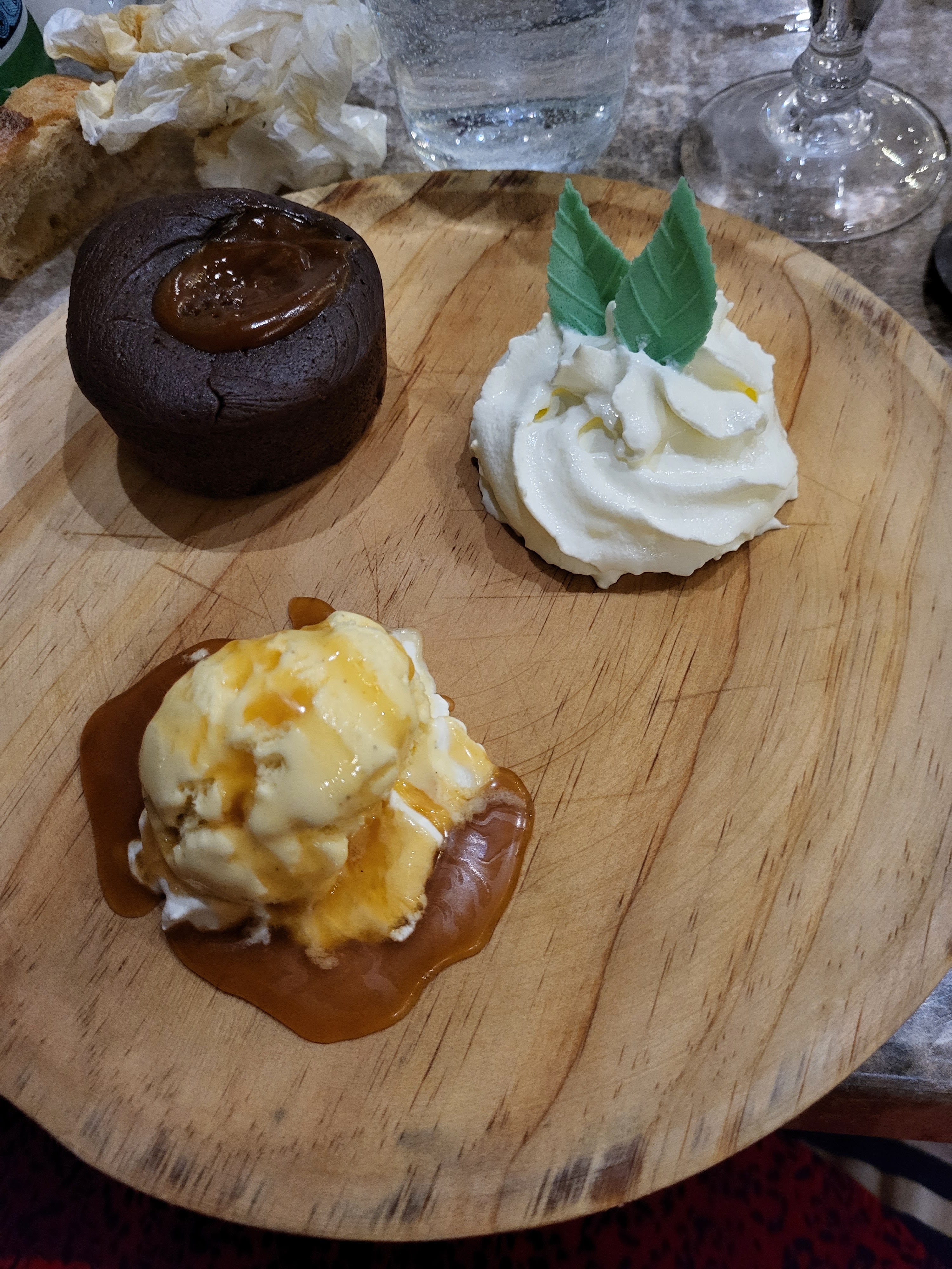 Ouf un restaurant ouvert. Personnel souriant, prévenant. Les moules frites étaient délicieuses, servies bien chaudes, le café gourmand portait très bien son nom... Merci. On reviendra. Je recommande