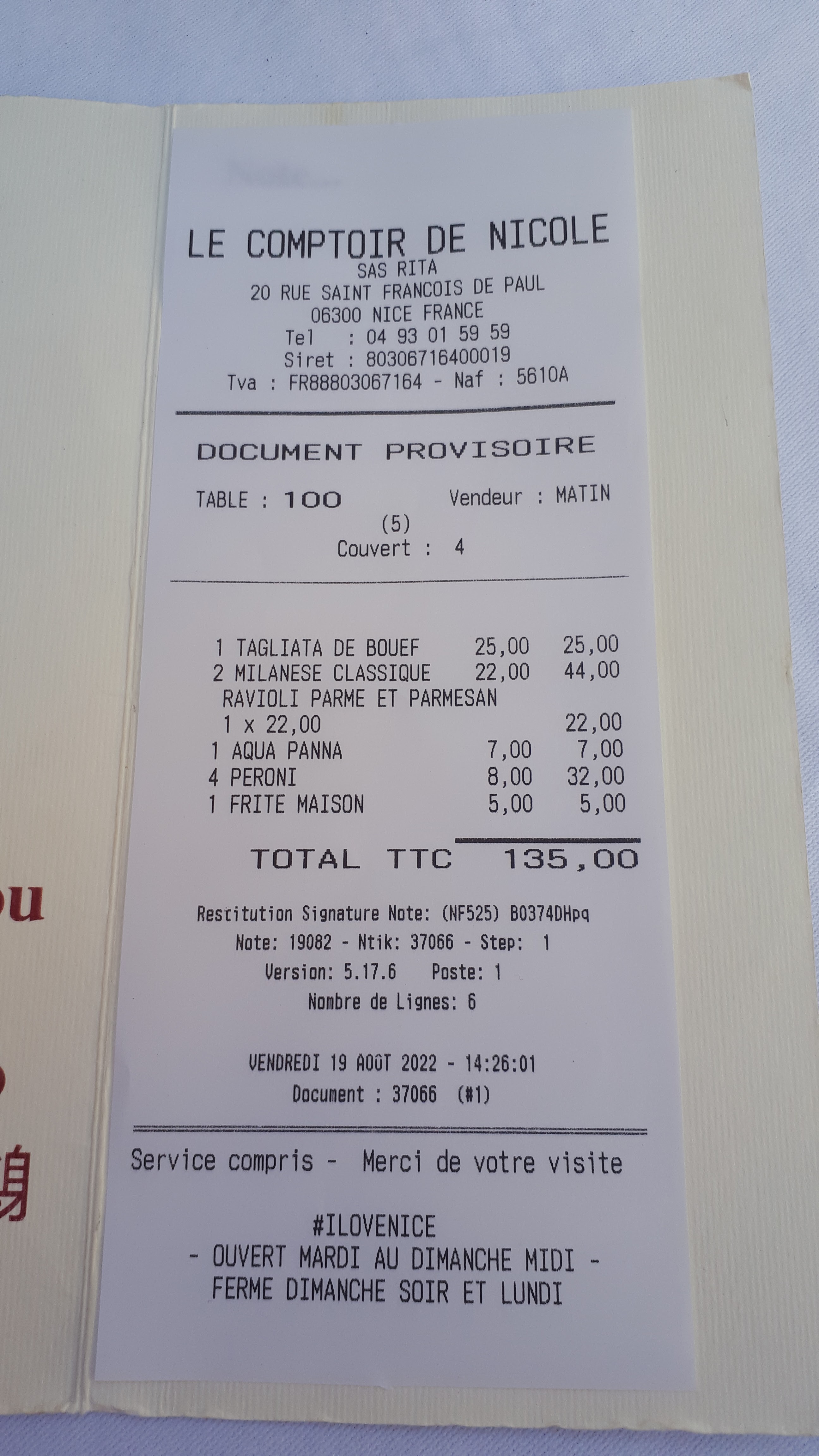 Super accueil, très belle expérience, le personnel était au petit soins, avec beaucoup d’attention et de gentillesse, les plats juste exceptionnels, très bon assaisonnement et cuisson juste parfaite avec une belle présentation, mon mari a adoré les assiettes, très belle ambiance, je recommande cet établissement pour les niçois et les touristes de passages à Nice.