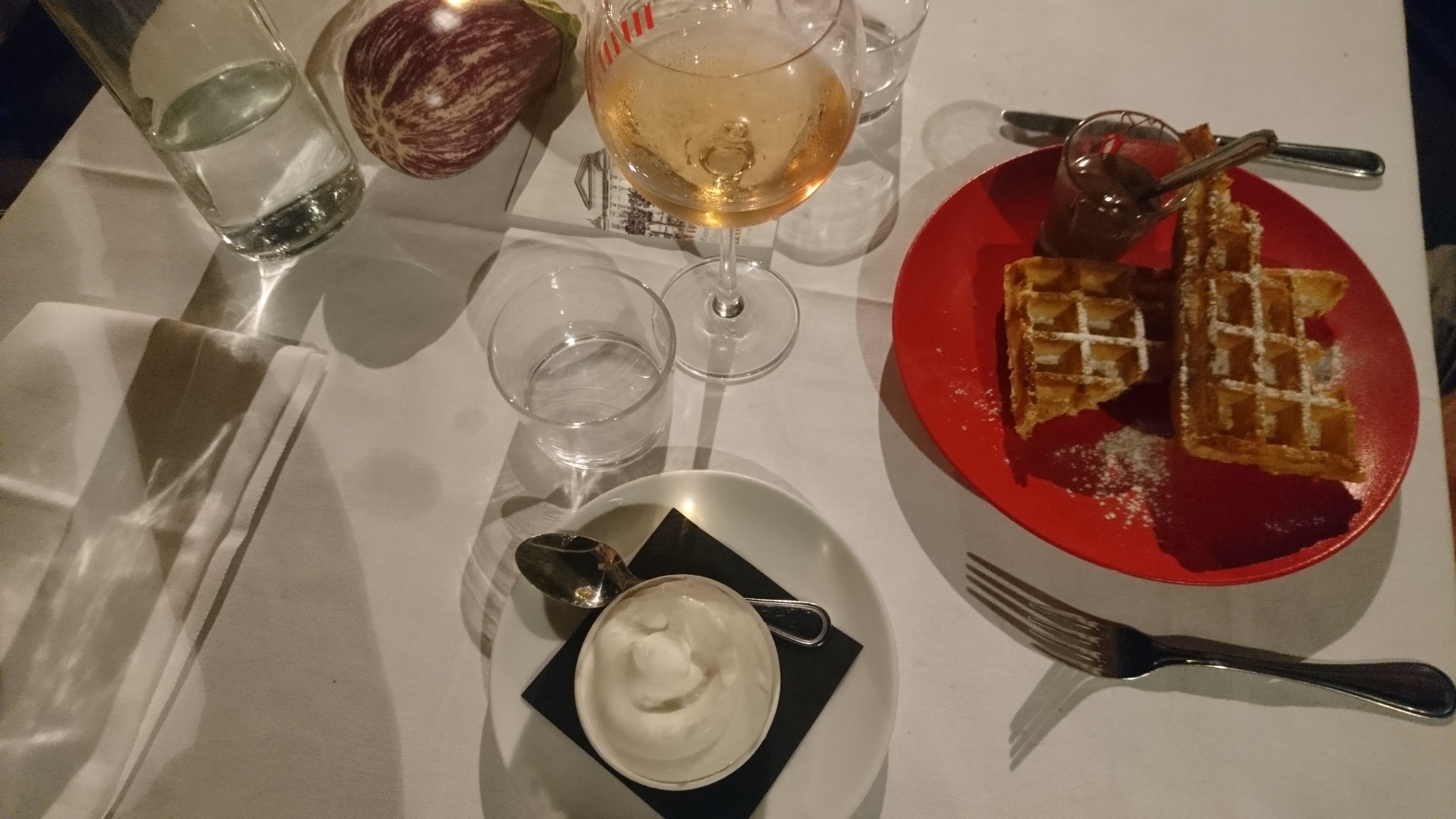 Un régal et un service vraiment agréable. Désolé je voulais prendre des photos mais j’ai tout mangé trop vite ;) Je recommande! La terrasse est à l’ombre, détail non négligeable par ces temps caniculaires… ok, je suis breton, mais ça a son importance je trouve