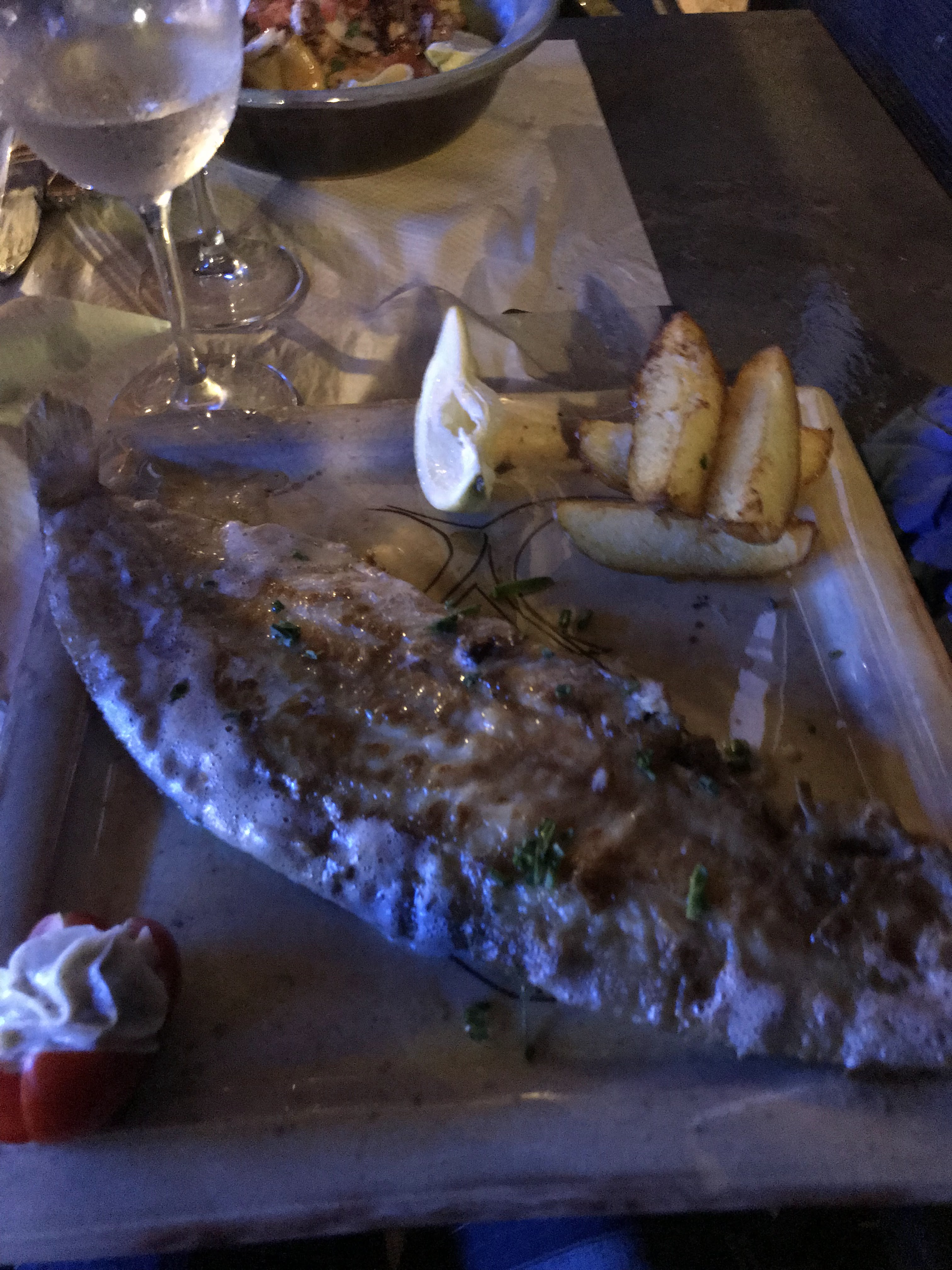 Nous venons de dîner, c’était excellent, une sol magnifique et un burger d’espadon au petit oignons 😉