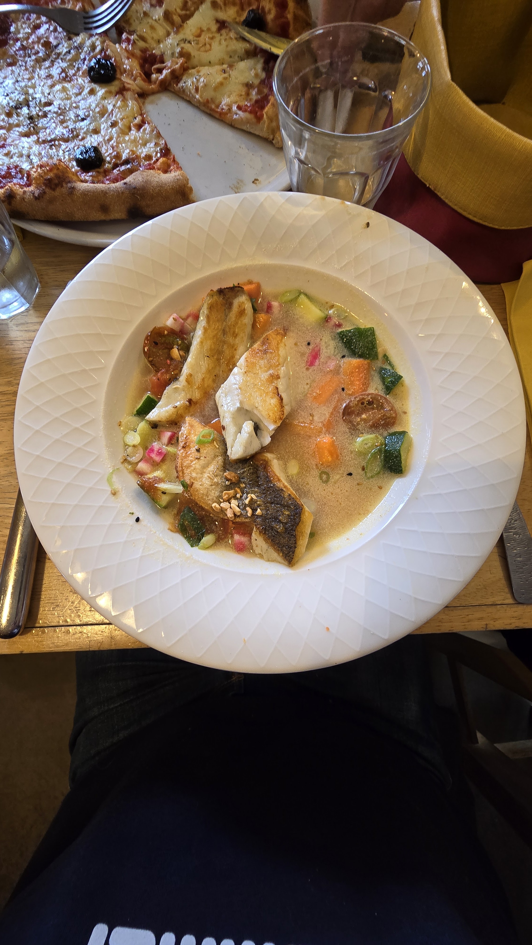Posté le 14/01/2025 à 19:52"Réservation au dernier moment un samedi pour le déjeuner : pour 4 avec poussette et au final un chien en plus. Nous sommes très bien accueillis à 12h30 dans un restaurant comble. Les plats de poisson et les pizzas sont délicieux. Merci pour l'accueil et la qualité des mets."