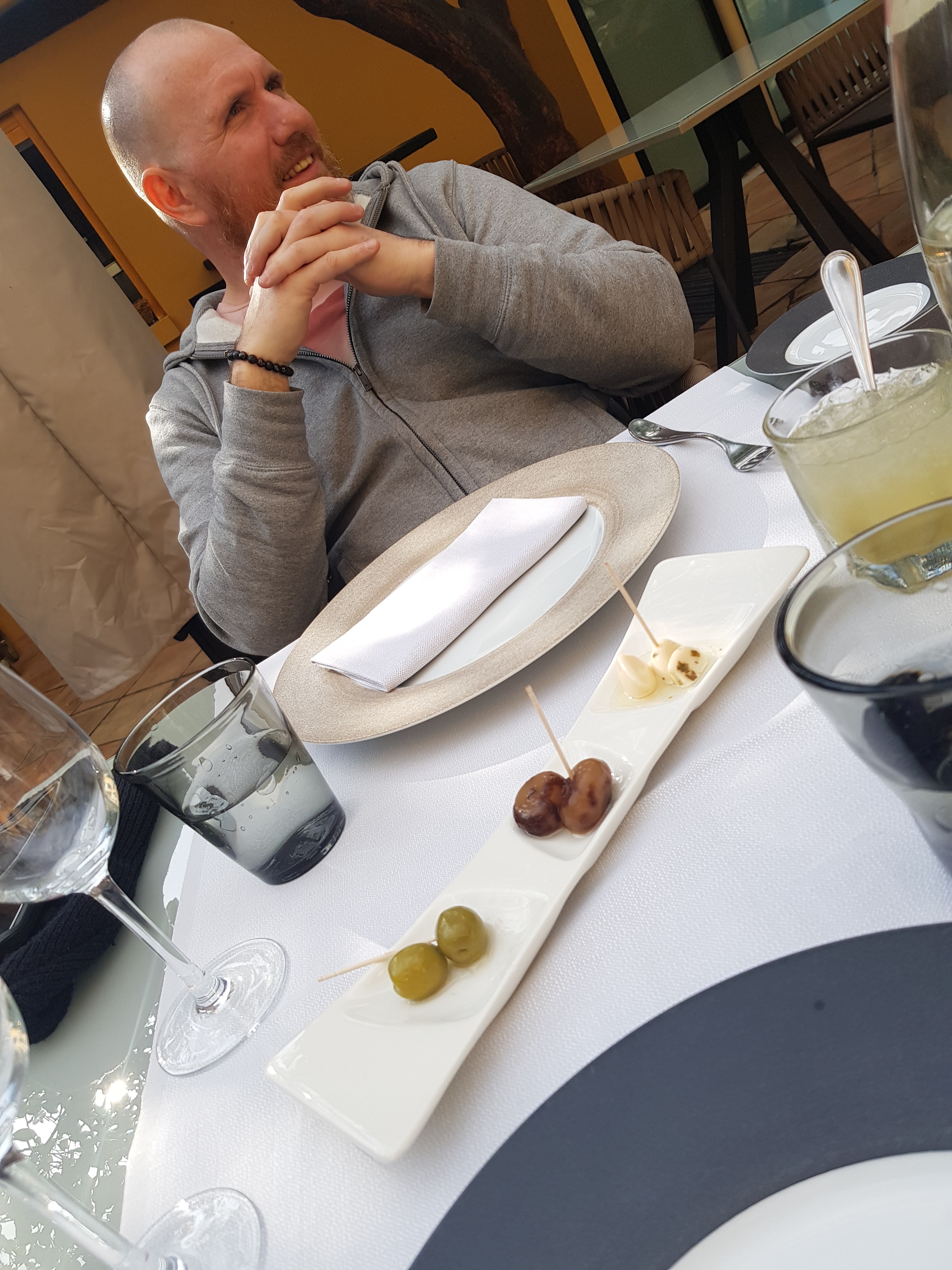 On n’a pas du tout aimé , la nourriture n’a pas de relevé. Il n’y avait pas beaucoup d’options dans le menu et en plus, plus de bœuf ni de poulpe, donc on a pris le poulet (l’intérieur pas cuit) et ça ressemblait plutôt à la nourriture qu’on mange à l’hôpital. On a pris 2 cocktails, avant le repas, pas ouf (trop de sirop le mien) mais 20€ chaque 😒 . Le pire c’était le dessert : crumble avec kiwi et pommes, on a tout laissé car c’était plutôt une soupe de fruits. Toute cette expérience (2 cocktails 2 verre de vin 2 poulet et 1 dessert) 136€. Cependant, Le service très bien et agréable, Cédric très accueillant. Le vin et l’huile d’olive très bons. Le cadre très joli. La présentation des plats et cocktails est bonne (voir photos ) On reviendra plus de tout façon car on a payé cher pour rien manger. Dommage !