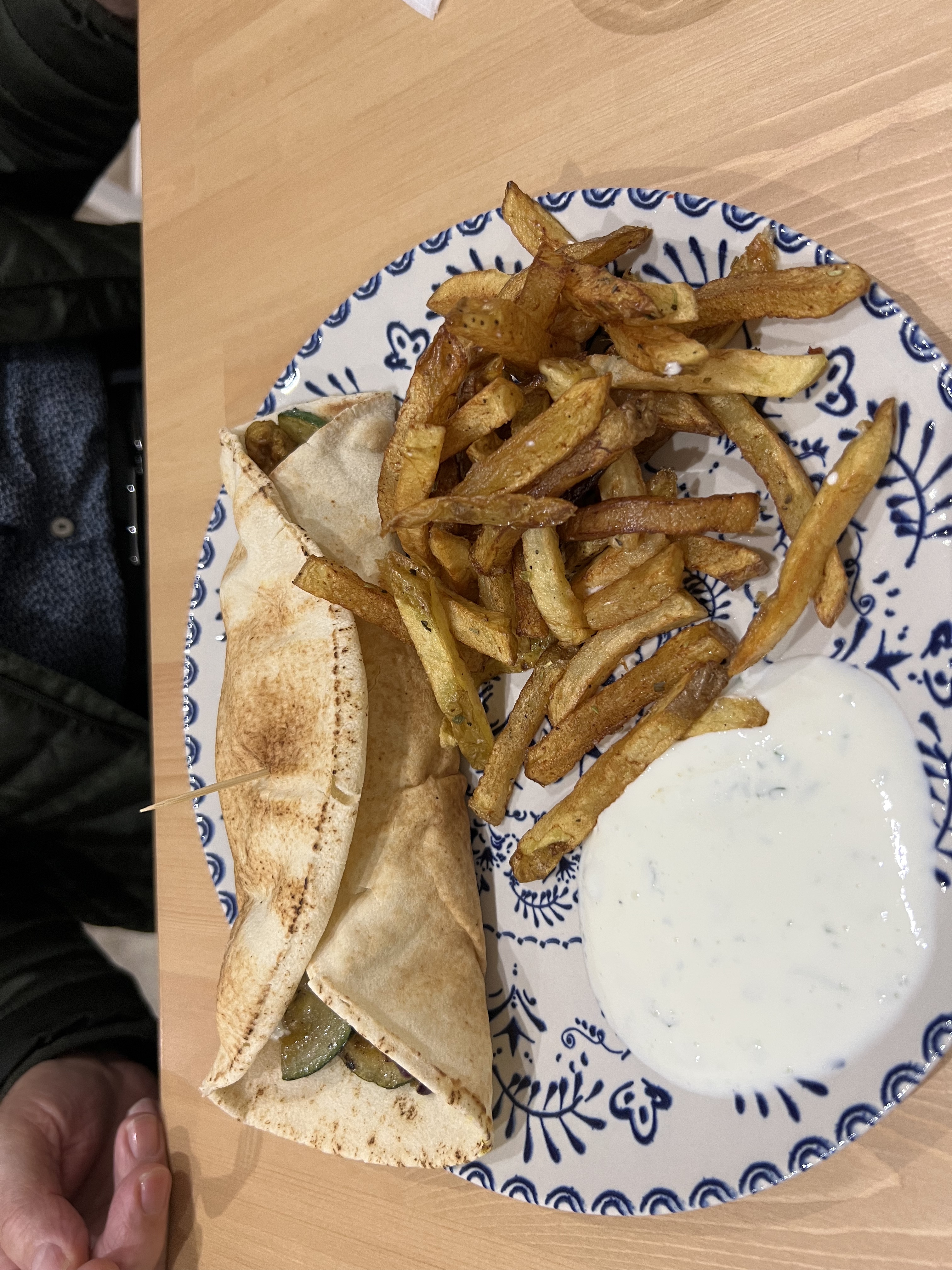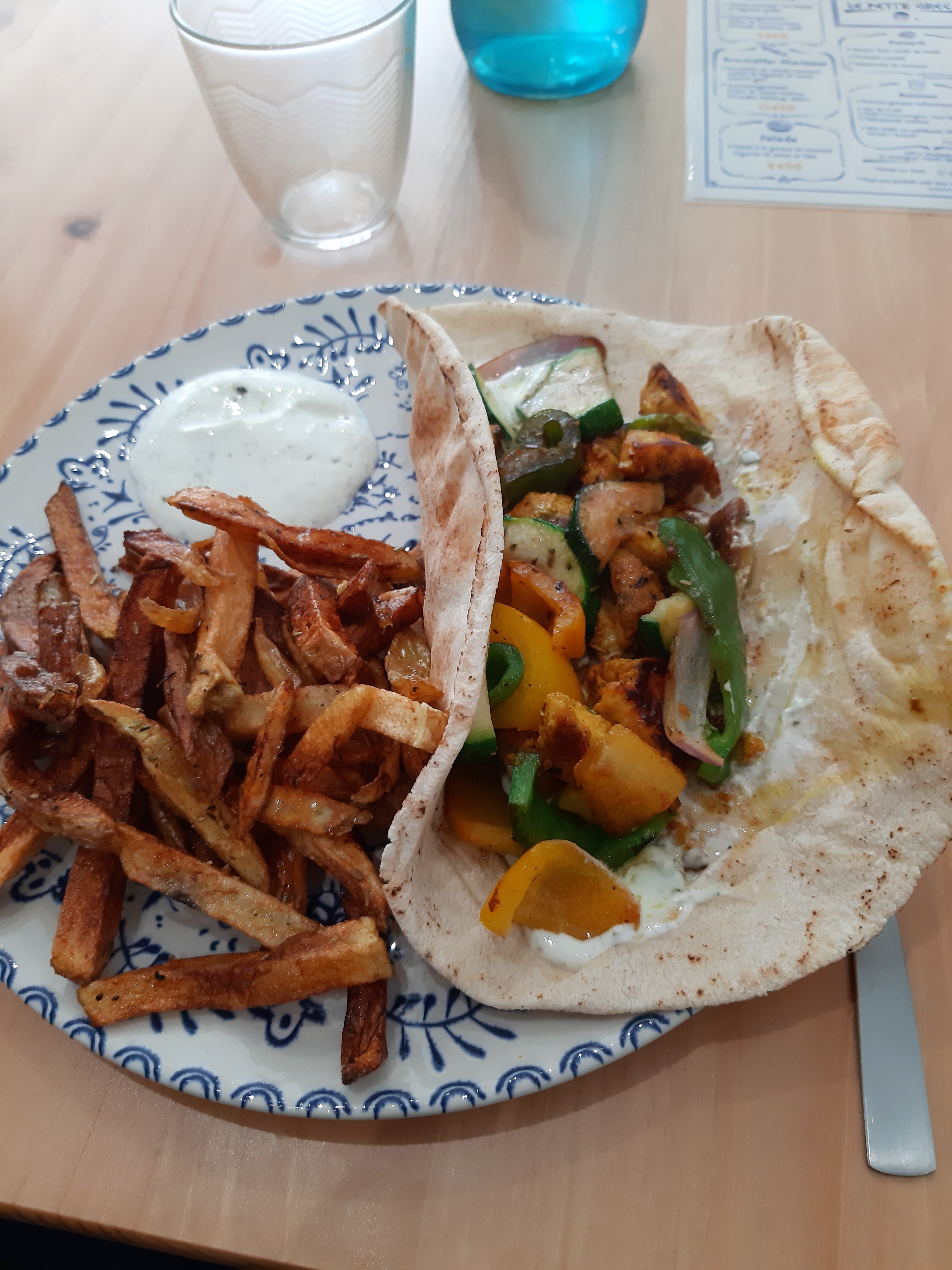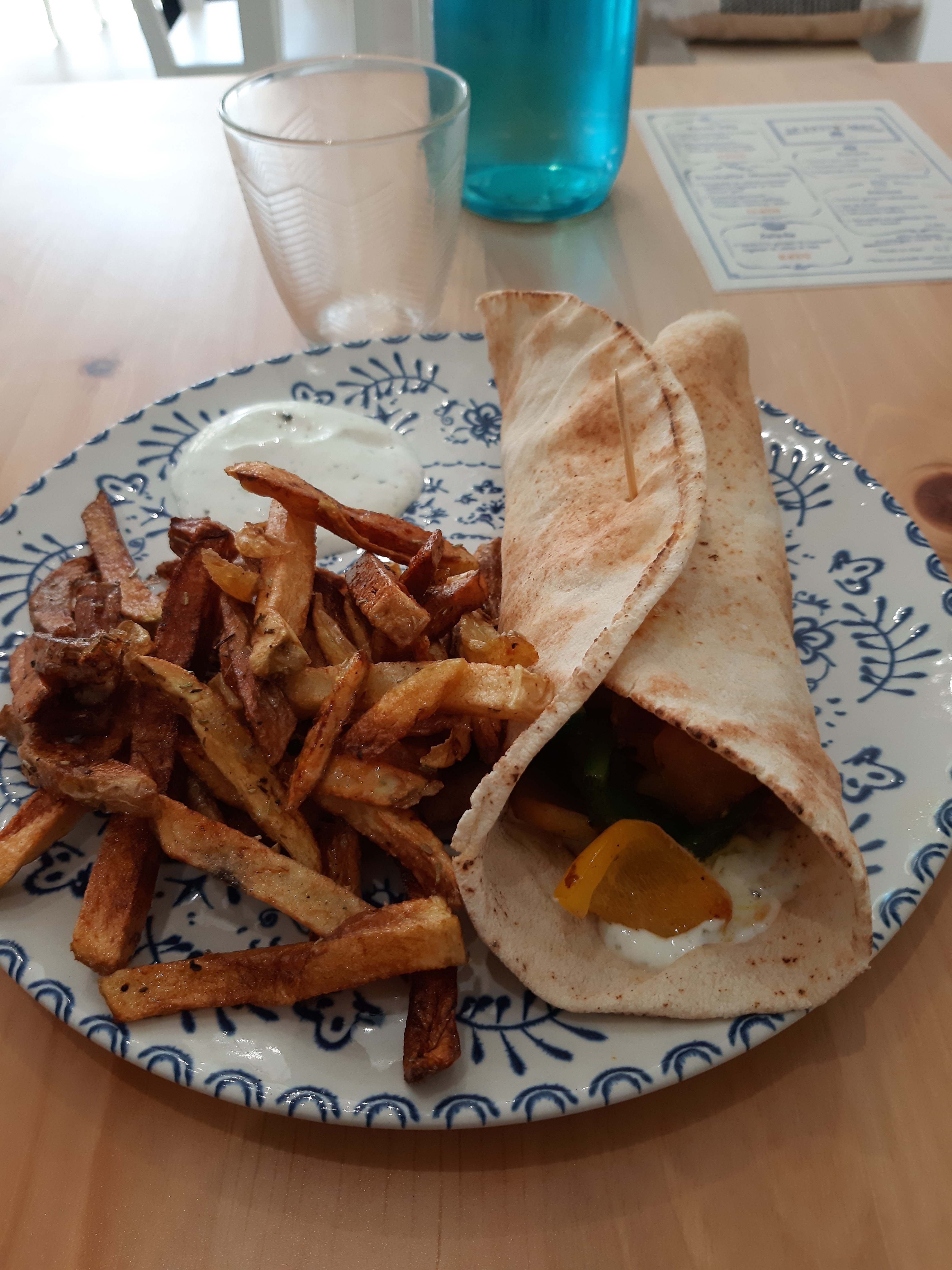 Pita à l’agneau dé-li-cieux ! Je me suis régalée. L’houmous une tuerie. Par contre les frites n’étaient pas assez croquantes à mon goût et même si la pita était savoureuse, j’ai trouvé qu’elle manquait de garniture. De plus attention au cure dent qui tient la pita… Même s’il y avait des petites « erreurs » je recommande !!