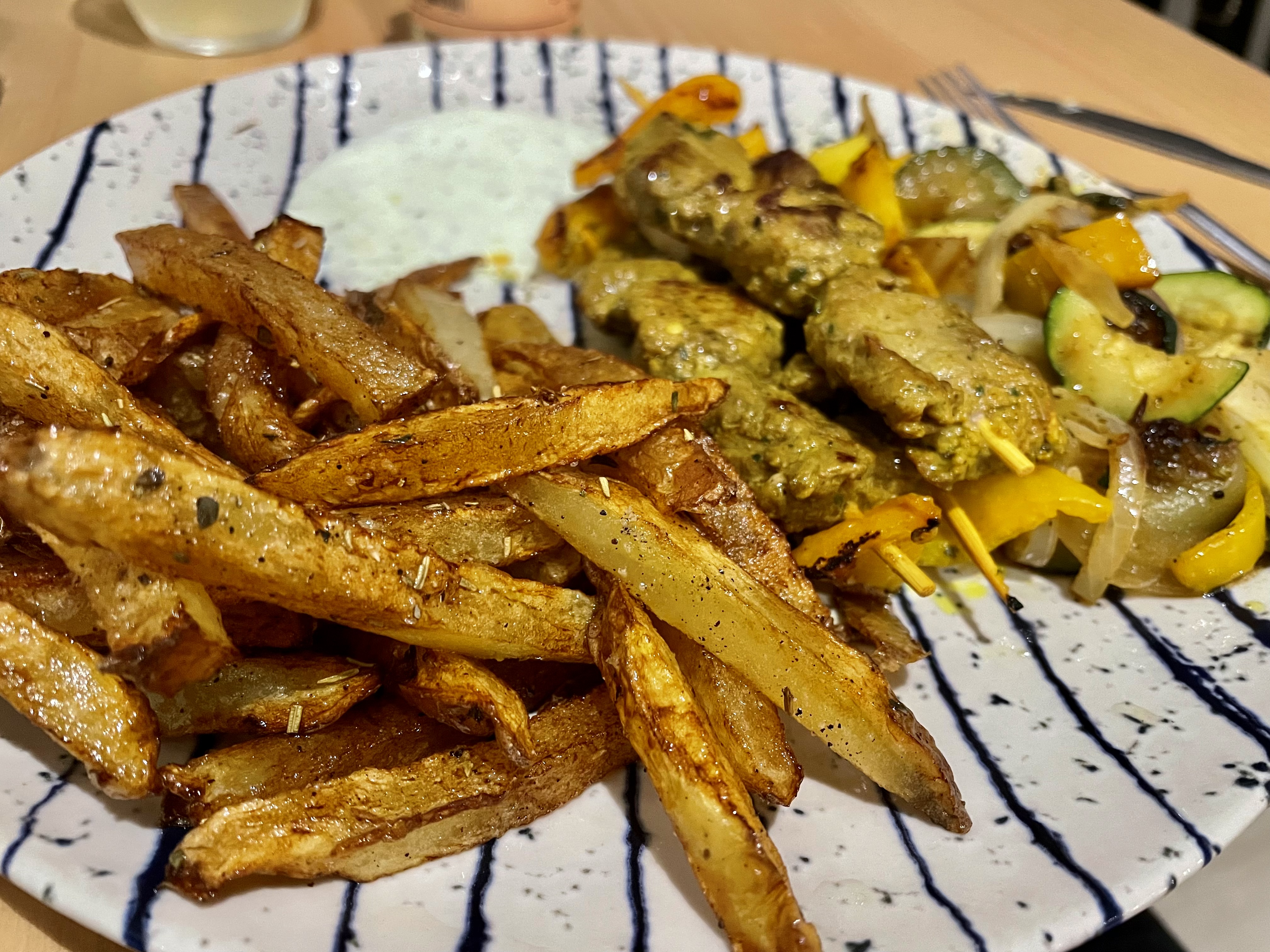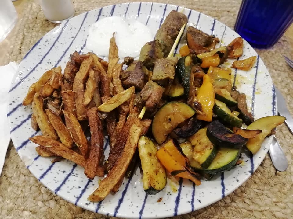 J’ai vraiment aimé le repas de ce soir Léger, fin, goûtu avec des produits locaux et frais. Une salade grecque avec des falafels en entrée : super bon et plutôt bien servit En plat des brochettes de viande bœuf pour moi et agneau pour ma compagne et tout était top ( bœuf un poil cuit mais reste tendre et pourtant je suis très dur sur le bœuf ) , l’agneau était doux on sent qu’il était encore jeune. Le dessert est juste parfait , un tiramisu au citron et pas un truc au sucre qui picote NON du citron acide et bon comme on attend d un dessert au citron ;) Bien joué et à bientôt