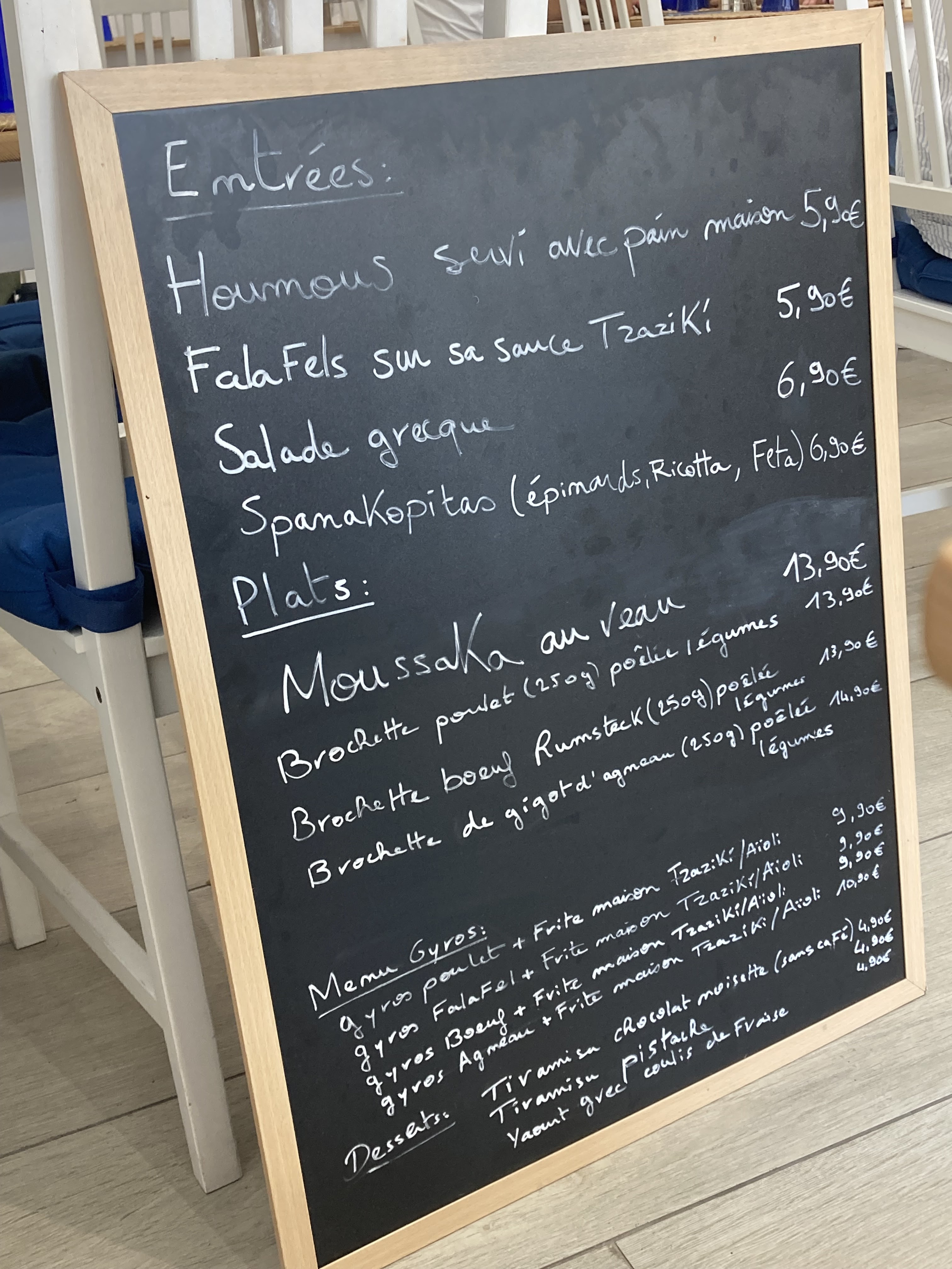 Testé le jour de l’ouverture, le patron nous accueille avec un grand sourire et nous propose de découvrir des petites limonades grecques au goût indescriptible mais très rafraîchissante. L’agneau est victime de son succès et nous goûtons les viandes de poulet et de bœuf qui sont d’une tendreté folle et avec un goût magique. Nous dégustons nos plats avec du pain grec en accompagnement ou l’on dépose viandes, légumes et tzatziki. On se régale !! Pour les desserts le « tiramisu revisité » est plutôt éloigné de la recette originale mais c’est délicieux. Je recommande d’aller goûter ces plats ne serait-ce que pour aider un petit restaurant à se lancer !
