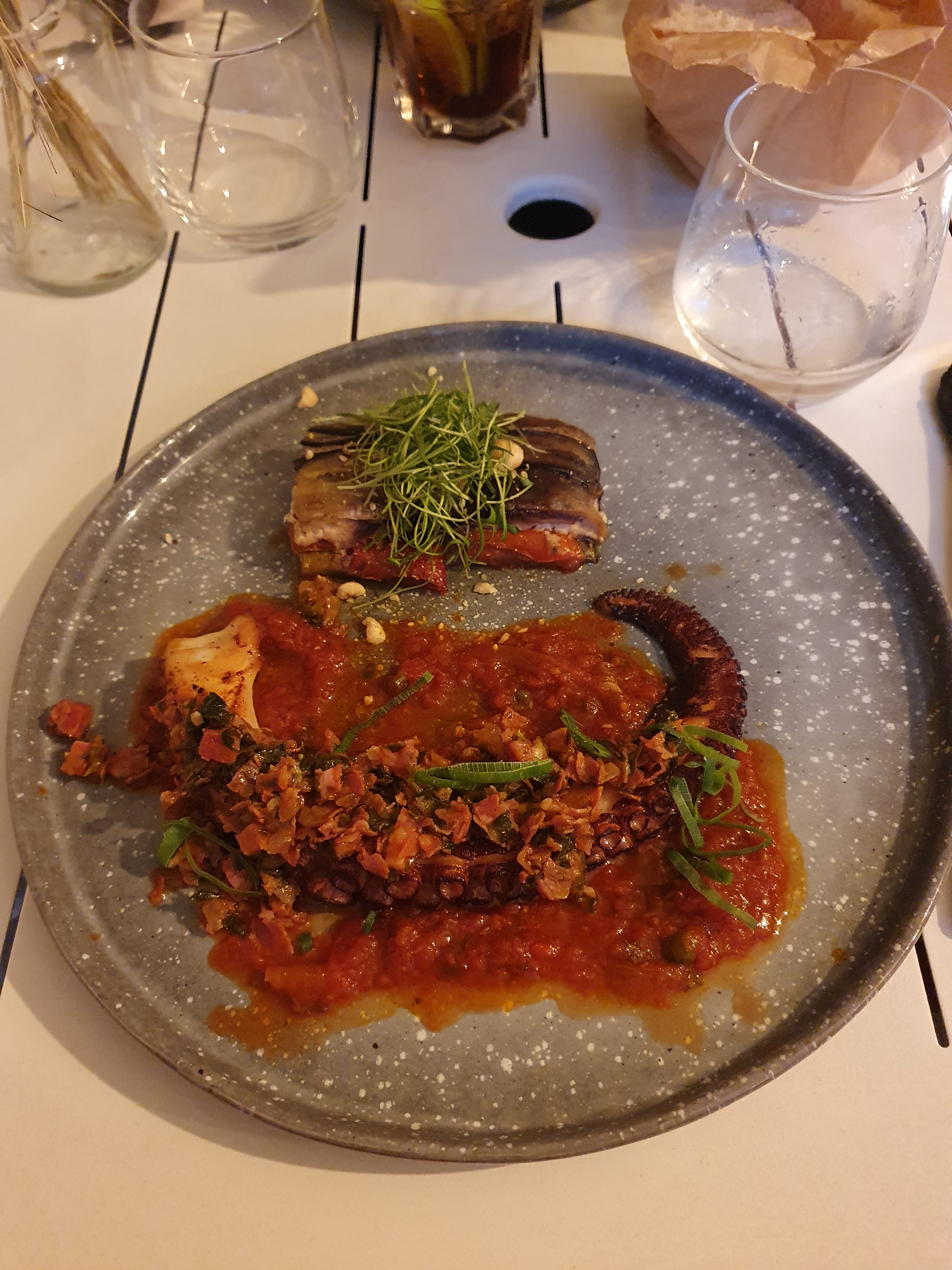 Gambas & vin orange très bons ! On a été bien conseillés Je recommande !
