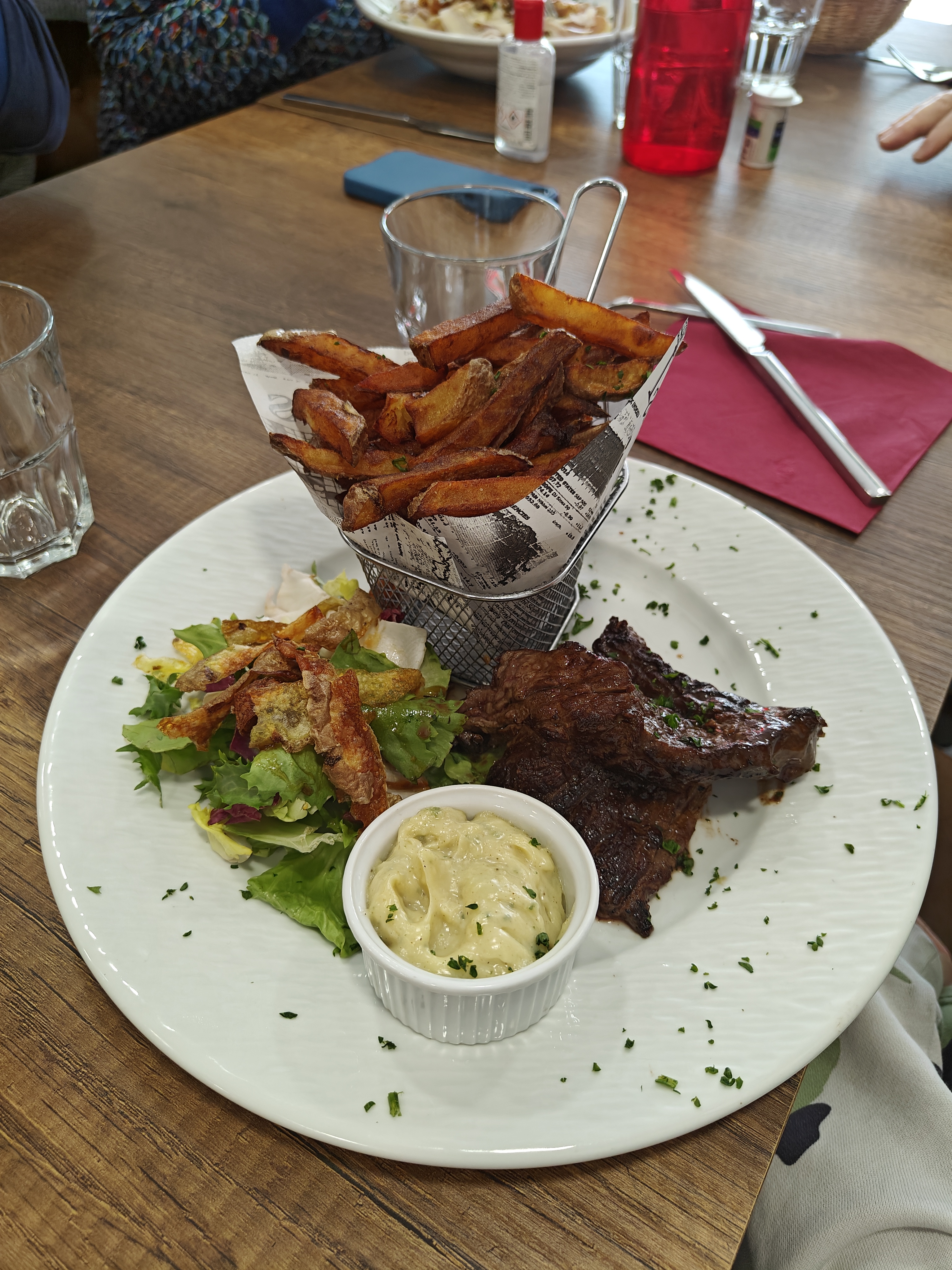 Venu ayant un très grand appétit nous nous sommes régaler avec la pièce du boucher accompagné avec ses bonnes frites maison. Le service est excellent avec gentille et rigolade ! Je recommande!!
