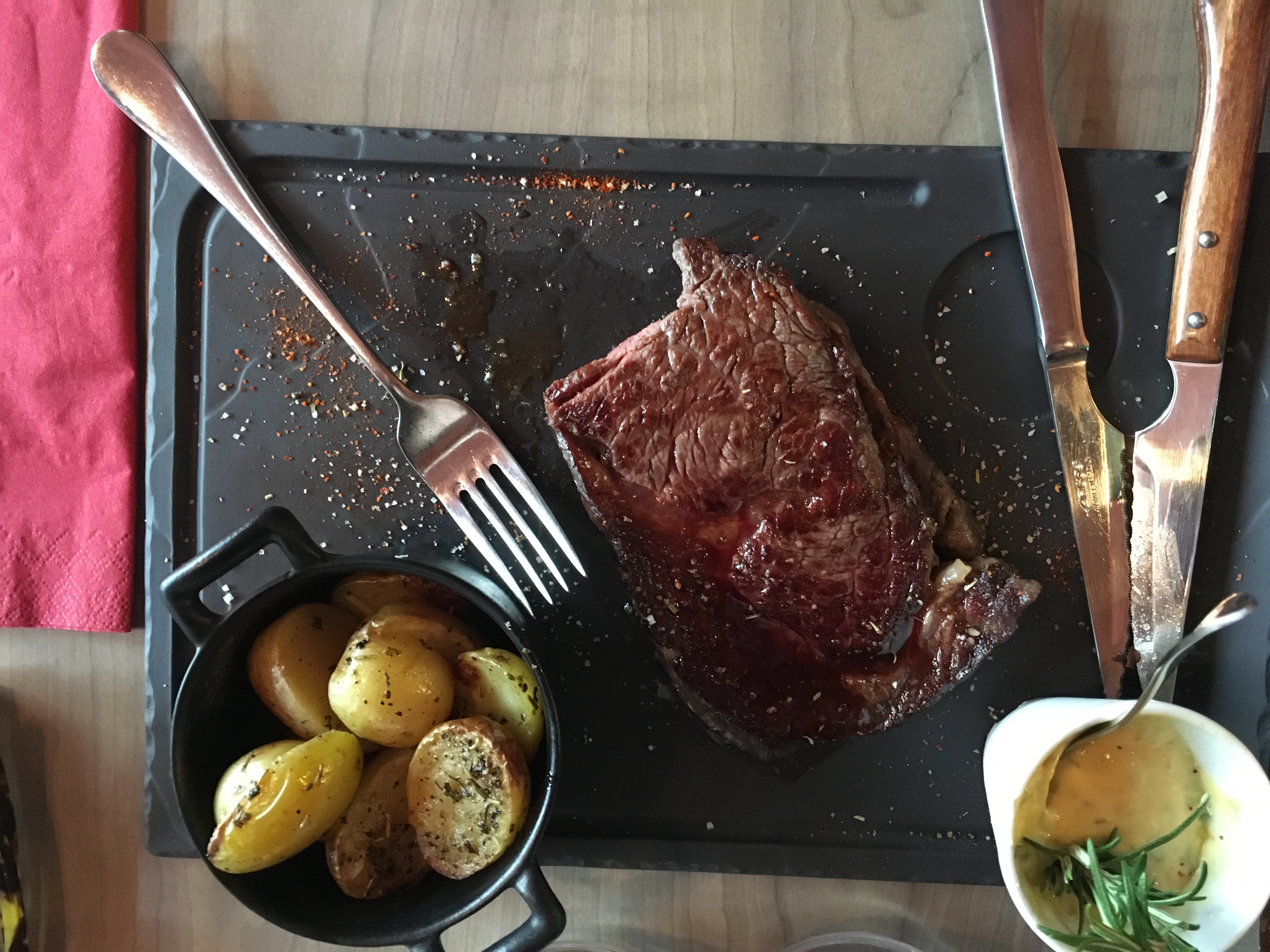 Terrible expérience - nous avons attendu plus d'une heure et la serveuse était très désagréable et ne s'est pas excusée. L'entrecôte contenait plus de la moitié de matière grasse selon la photo. Vraiment déconseillé !