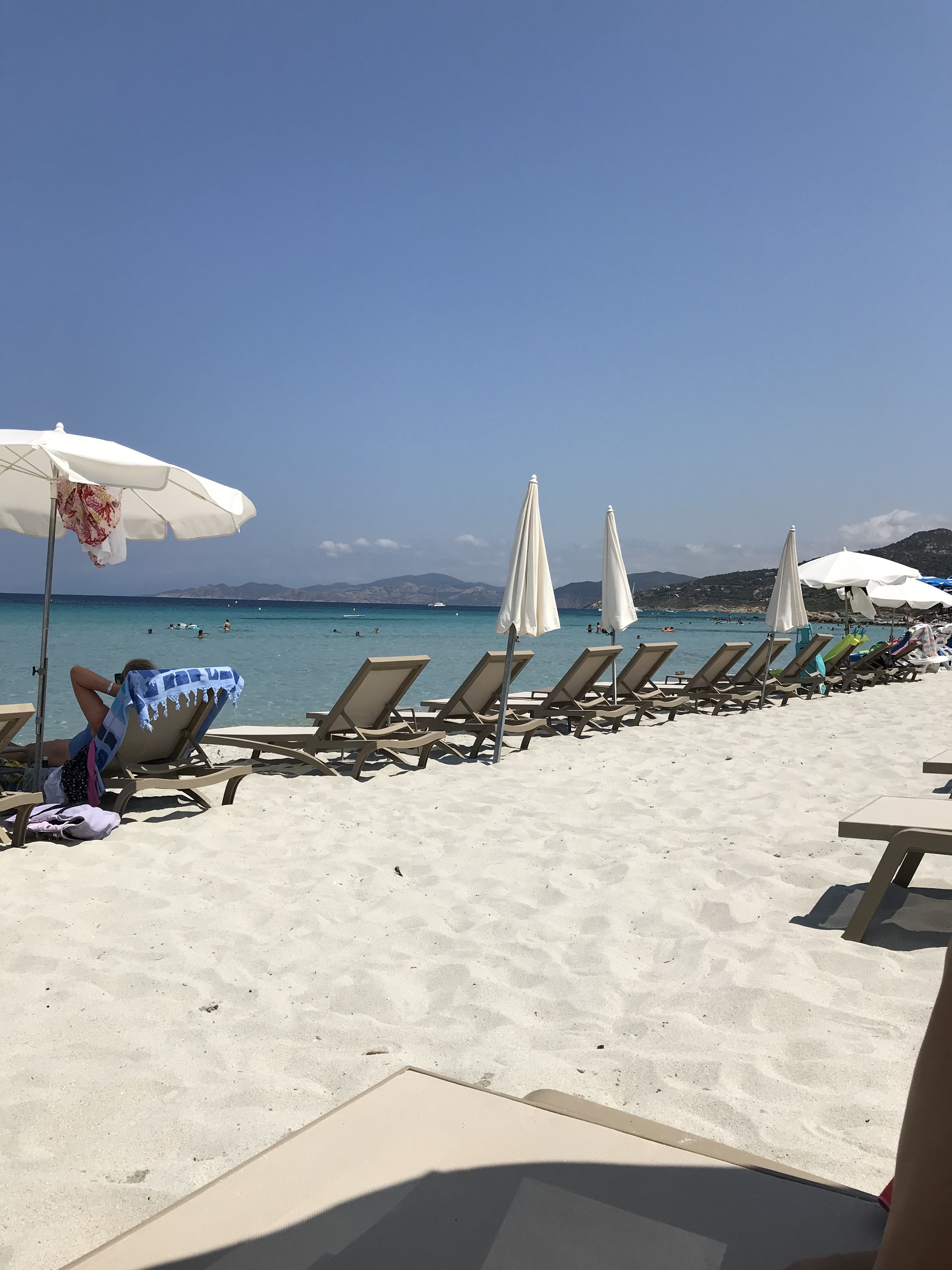 Nous prenons 9Chaises longue 225eu , on s installe au milieu de mégots de cigarettes capsule de bière bouchon de bouteille plage franchement dégeulasse le pompon à 16h30 on viens te dire qu il faut dégager pour 17h max , le personnel à apparement a oublié le sourire à la maison , boisson pris à la plage 57eu , le repas du midi rien à dire très bonne nourriture le service médiocre à part un serveur qui lui très sympathique et très professionnel coût 355eu. Total un peu plus de 625eu je déconseille fortement ce genre d établissement qui ne reflète pas la corse