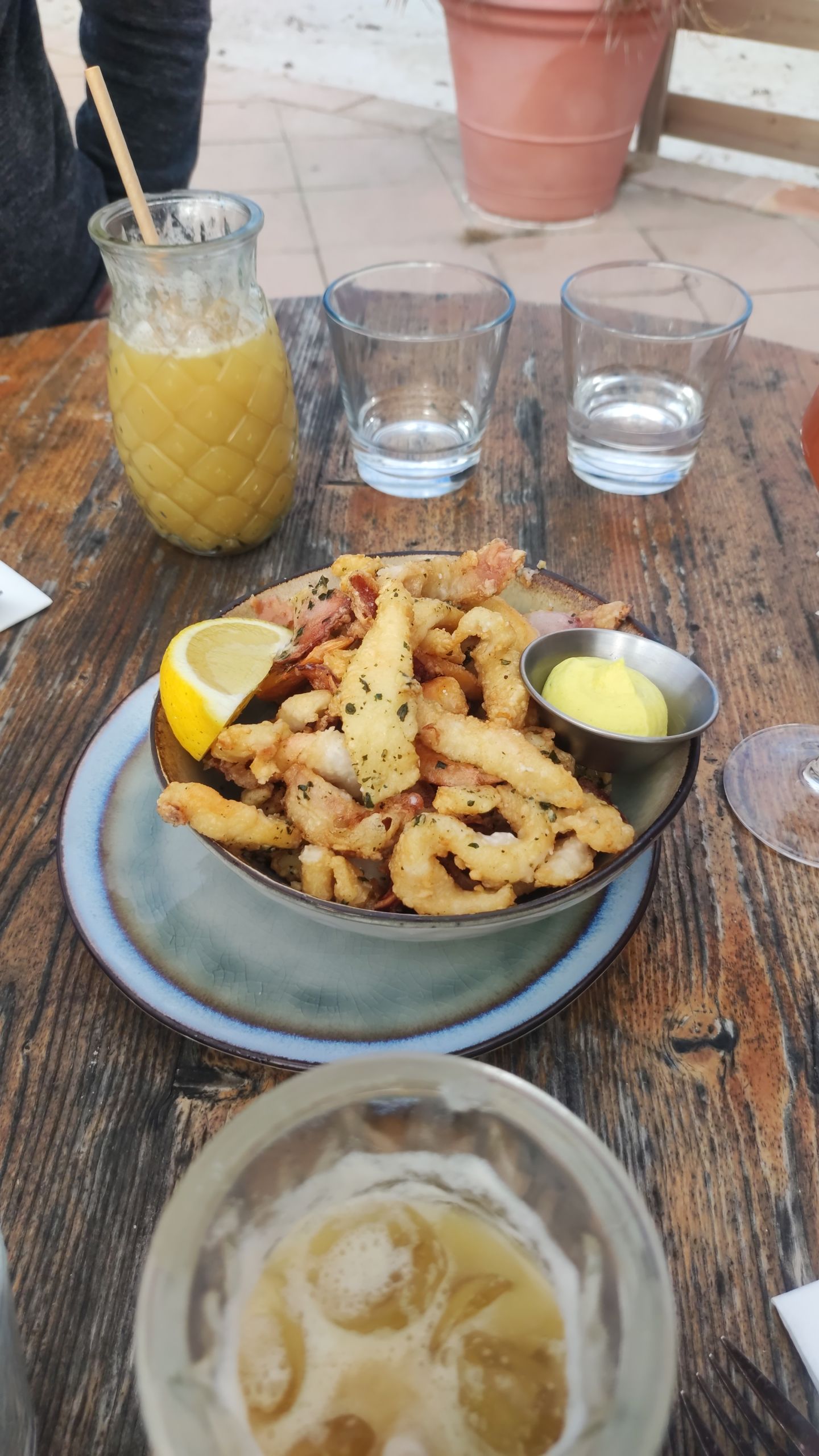 Le cadre est magnifique, l accueil est chaleureux et le serveur au petit soin. Toutefois un peu déçue par les salades, la césar est très minimaliste , concernant la salade de la mer nous cherchons encore le thon... En revanche les pâtes aux truffes étaient delicieuses et copieuses. Les menus enfants ont été très vite servis, ils se sont régalés avec un beau steack frites. Nous avons passé un très bon moment.