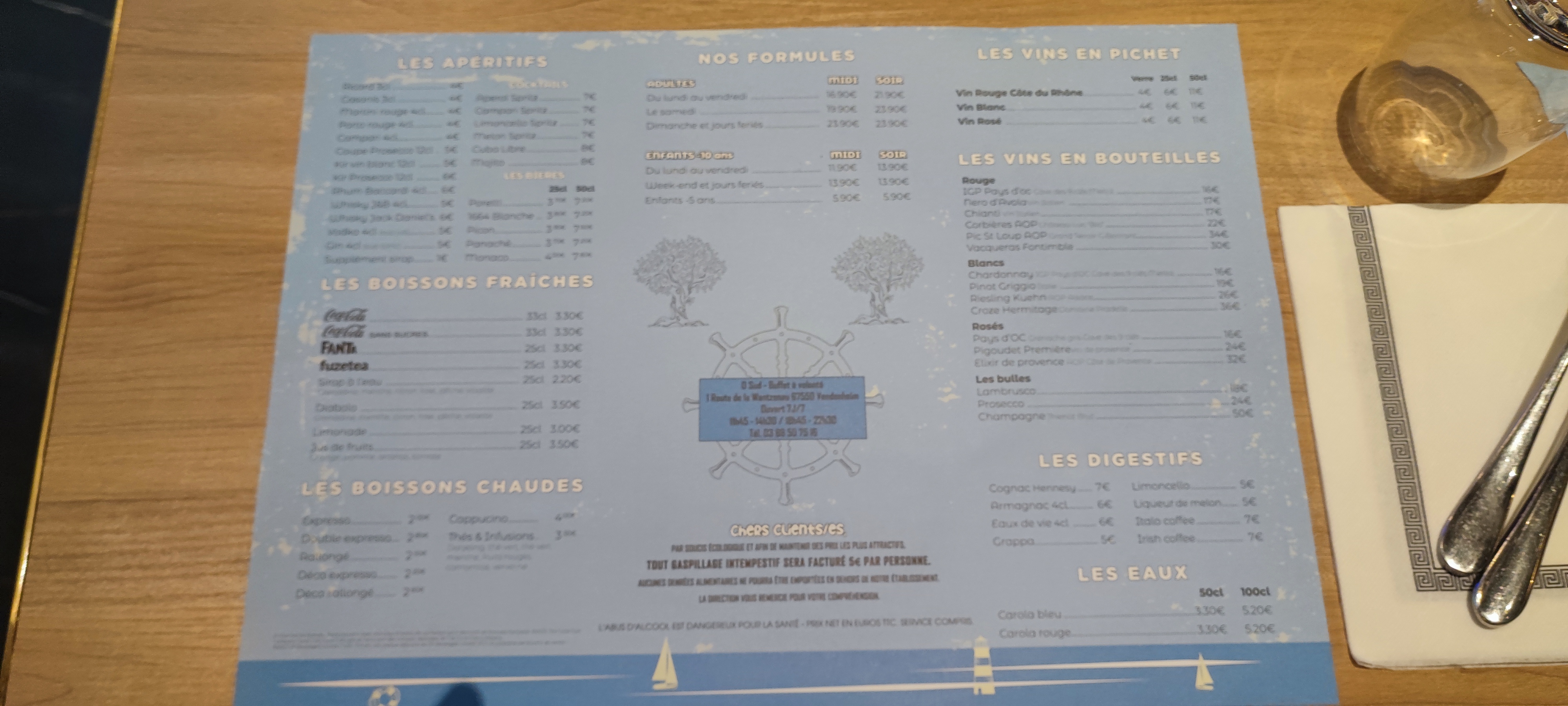 Le serveur de notre table un peu trop familier Je n’ai pas trop apprécié Les verres de l’apéro posé sur la table pas de façon correcte en les lançant 😡