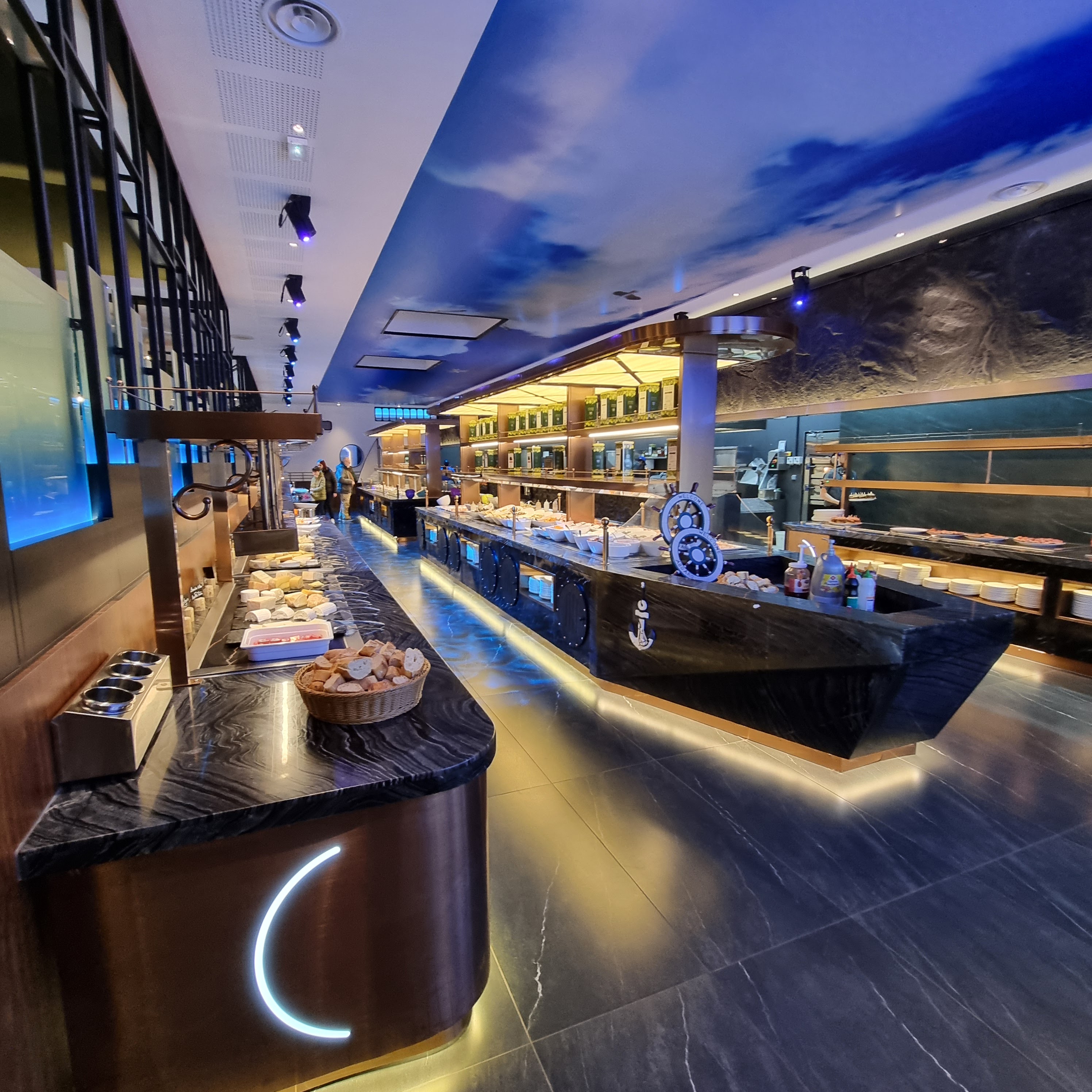 Grand et belle décoration ! Diversité de choix pour les plats et desserts. Pâtes, pizza, viandes, fromages, poêlés de légumes etc etc Je trouve personnellement que les pâtes ne se prêtent pas au format à volonté (trop cuites car préparées à l'avance et encore cuitent sur le moment) mais le reste est très bon !