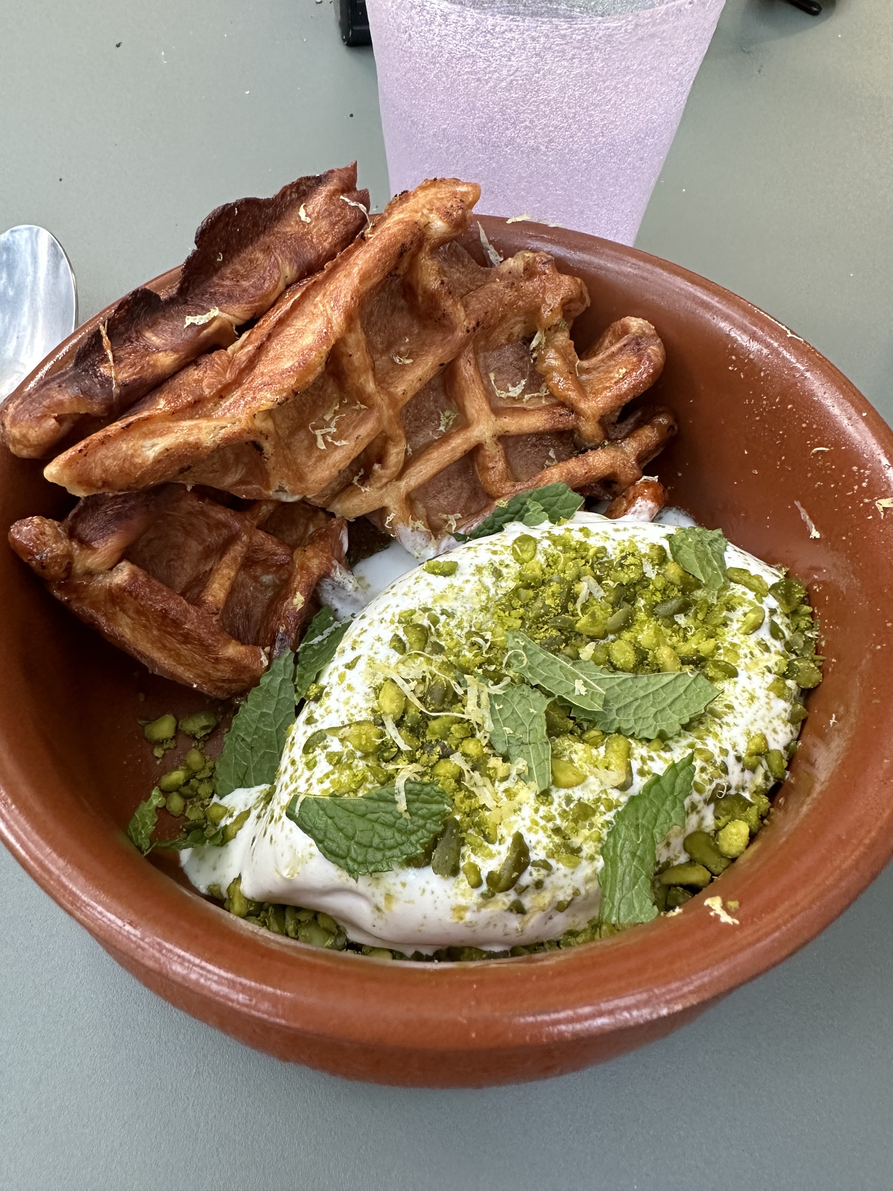 Absolument délicieux! Les plats sont copieux, originaux. Testé le : Baba ganoush : les aubergines sont très bonnes bien assaisonnées . Les pains sont étaitét chauds et pas trop huilés. Chakchouka: les légumes sont savoureux. On sent qu’ils sont de qualité! Très fondants. Très beau mariage avec l’oeuf et la fêta... L’agneau : grillé et très tendre! Tarte framboise chocolat et la glace au yaourt. La glace est dinguissime. La petit compoté de fruits rouge avec 🥰. Je recommande vraiment la tarte. Prix correct au vu de la qualité de la nourriture et du service. Cadre magnifique, on l’impression de déjeuner dans son jardin. Serveuse adorable et très efficace.