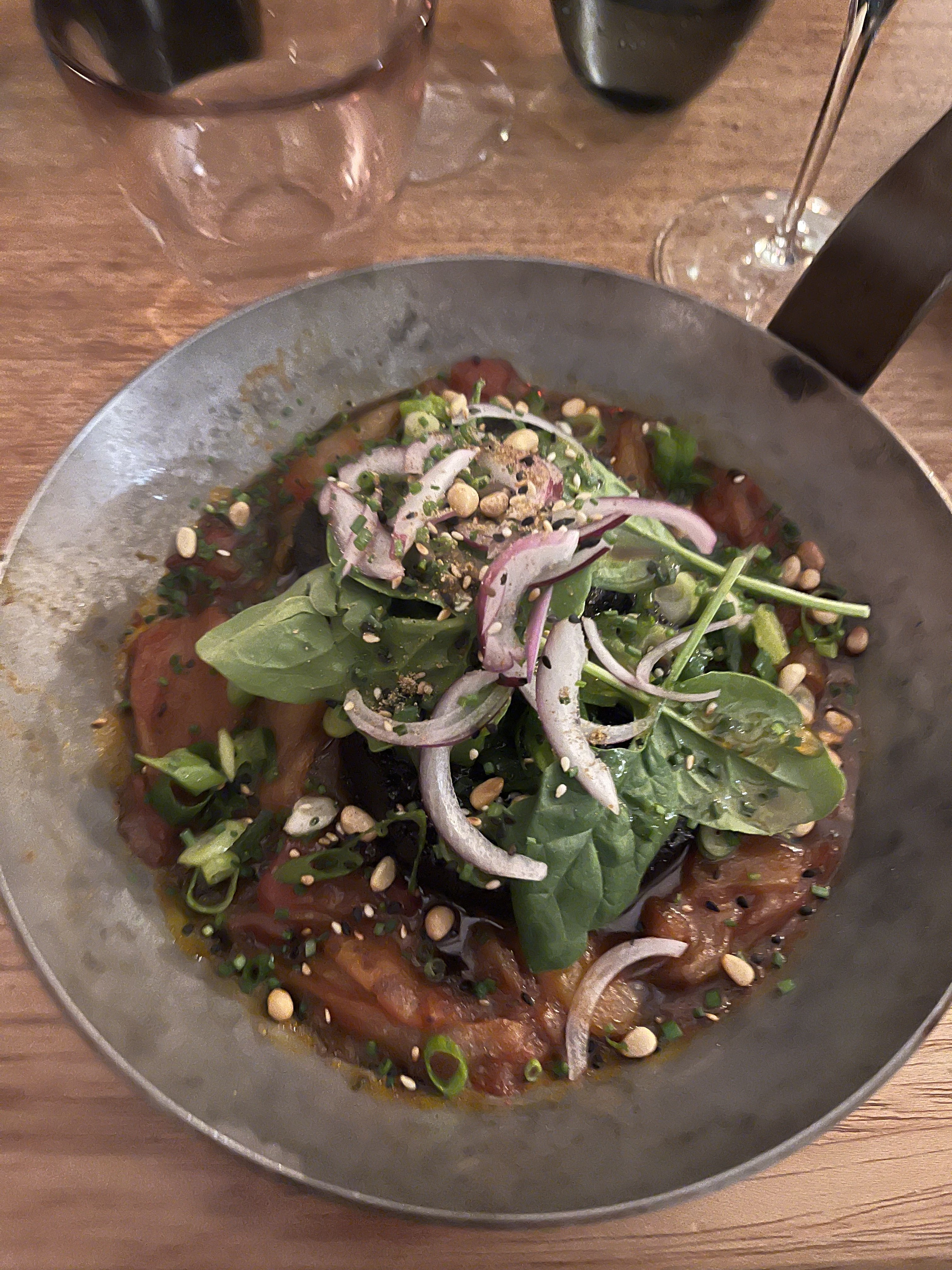 Quelle déception !!! ☹️ Allechée par les commentaires unanimement positif, j’ai déjeuné dans ce restaurant . Le steack tartare servi en entrée est totalement brouillon ( trop de tout: de sauce, d épices, d herbes, et trop de mélange ) et la viande de qualité médiocre et filandreuse. Le plat de légumes et lui aussi trop gras, les légumes sont trop cuit et baignent dans l huile. L emballage marketing ( site internet, commentaires extatiques sur les réseaux sociaux, etc … ) au top et a l inverse de ce que j ai goûté dans l assiette : un flop :(.
